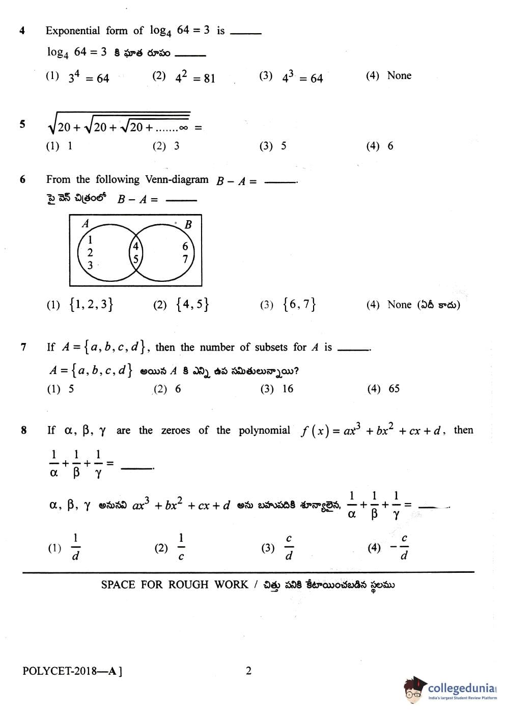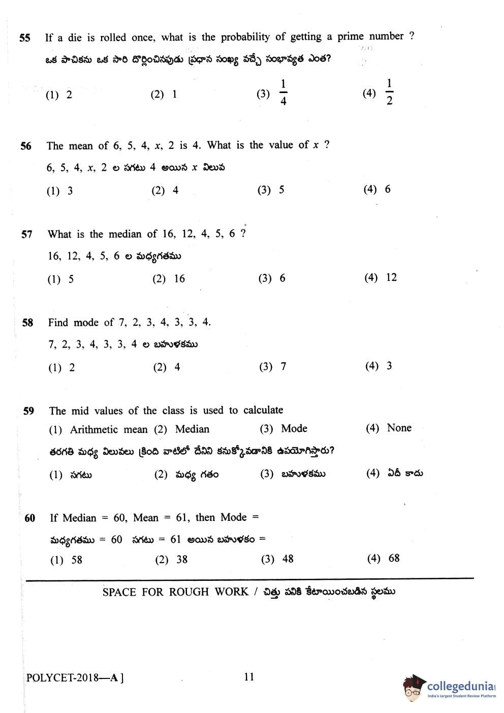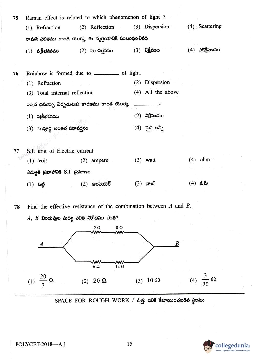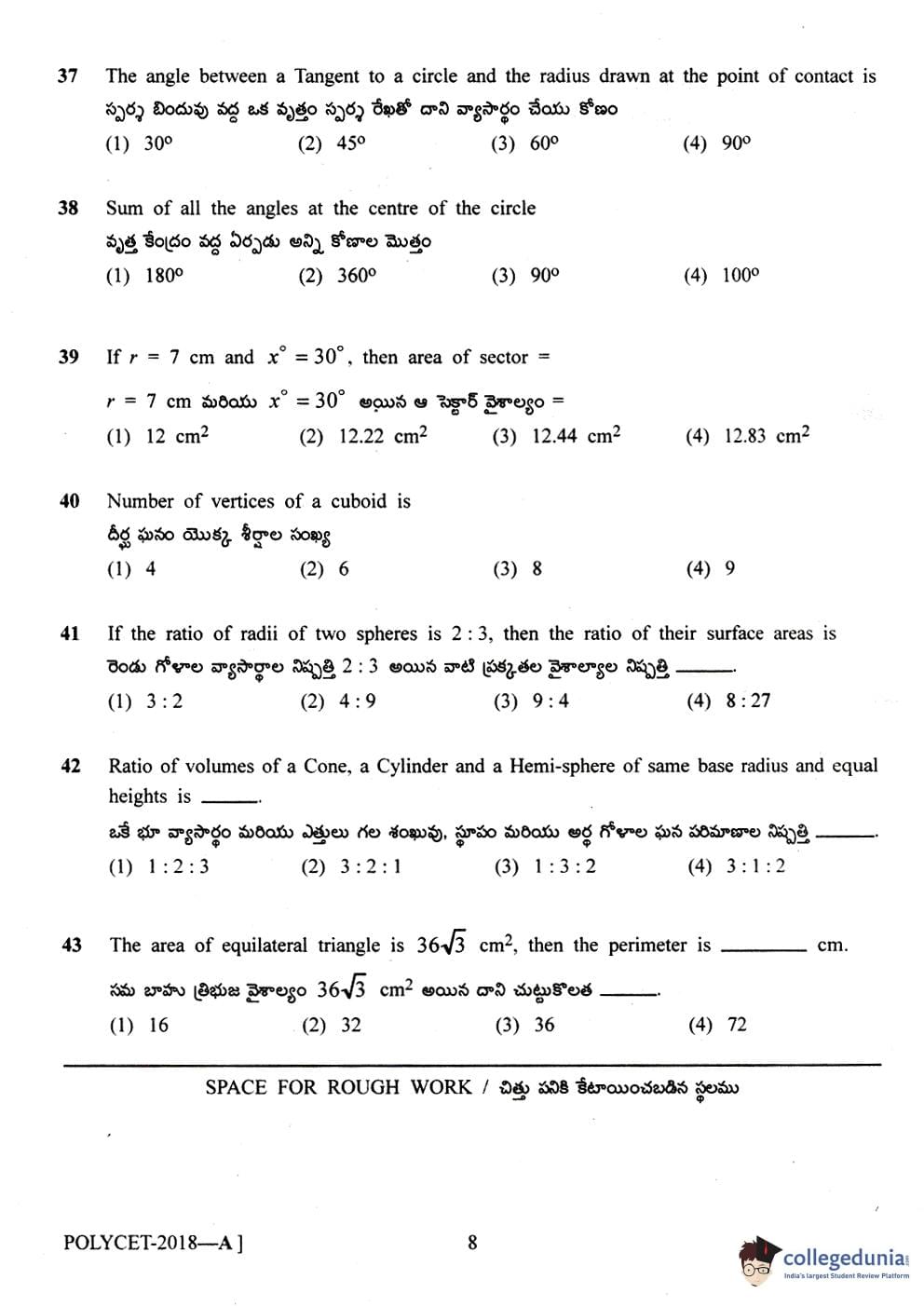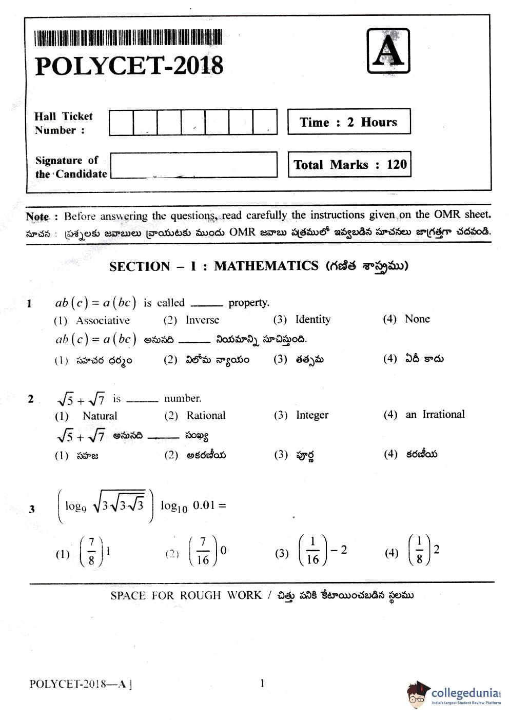 TS POLYCET 2018 SET A Question Paper with Answer Key PDFs Forenoon Session