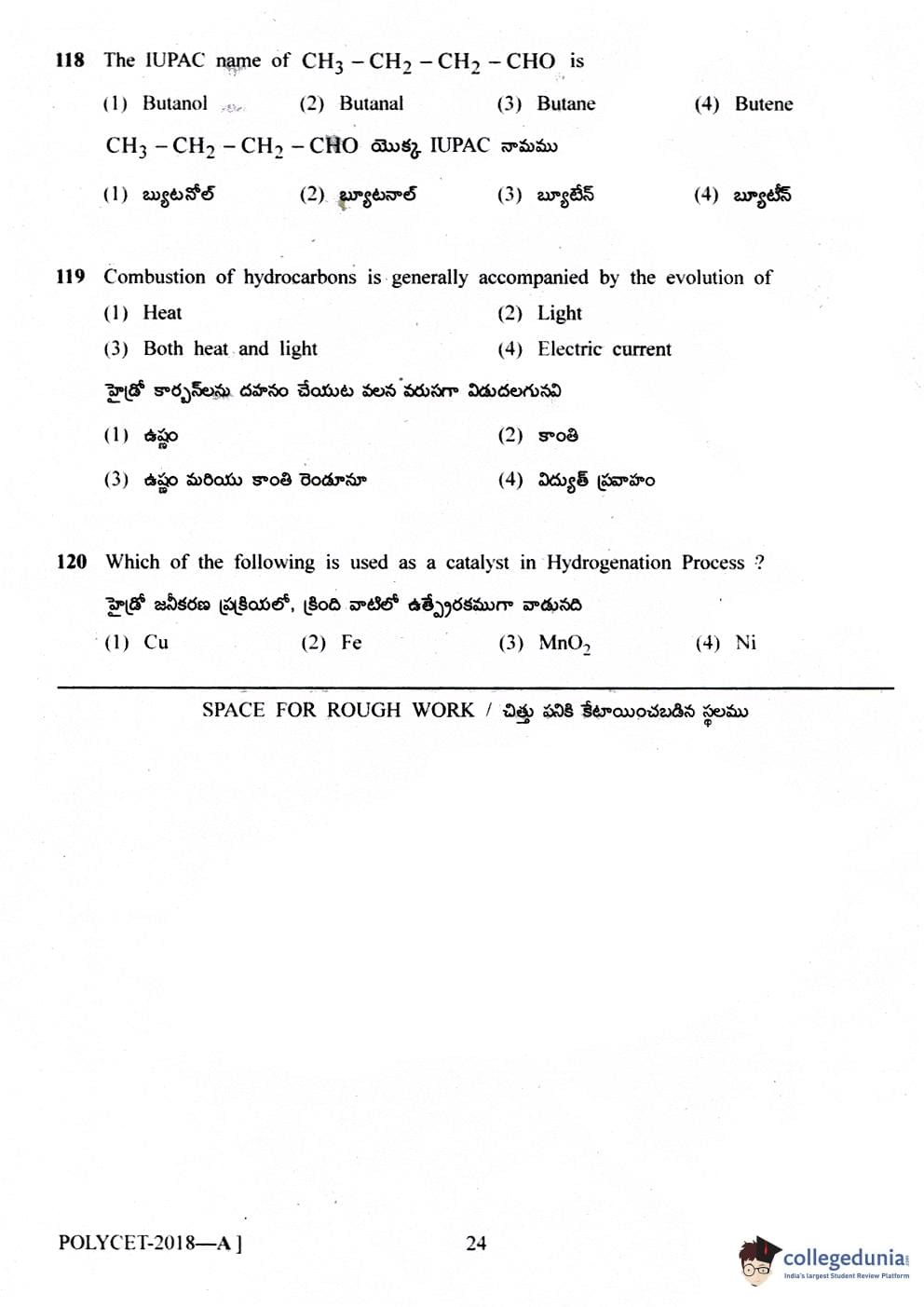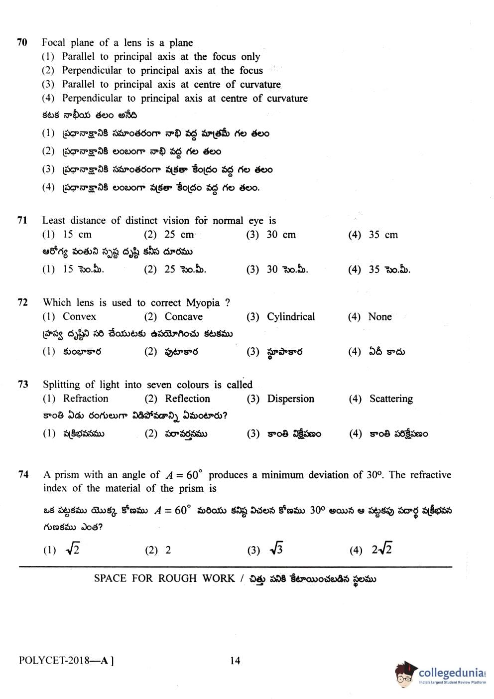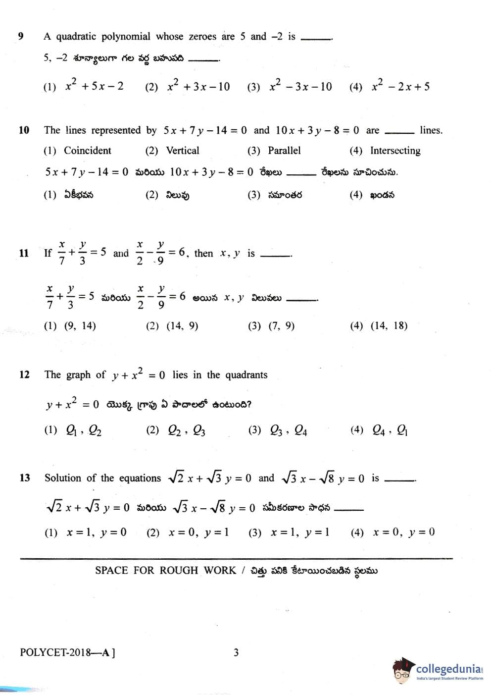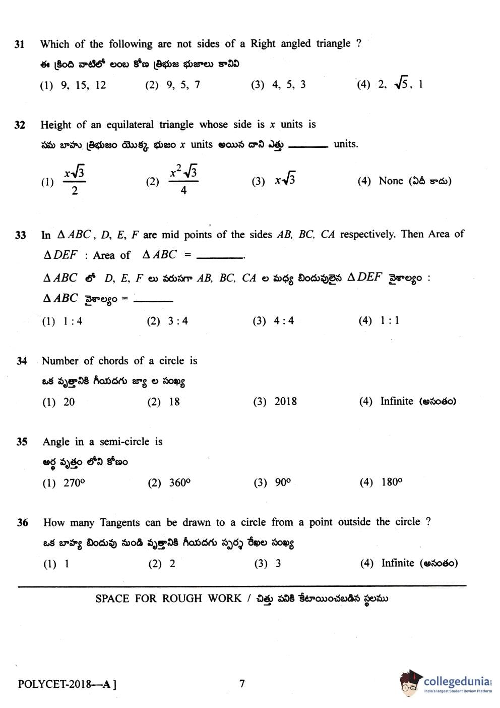 TS POLYCET 2018 SET A Question Paper with Answer Key PDFs Forenoon Session