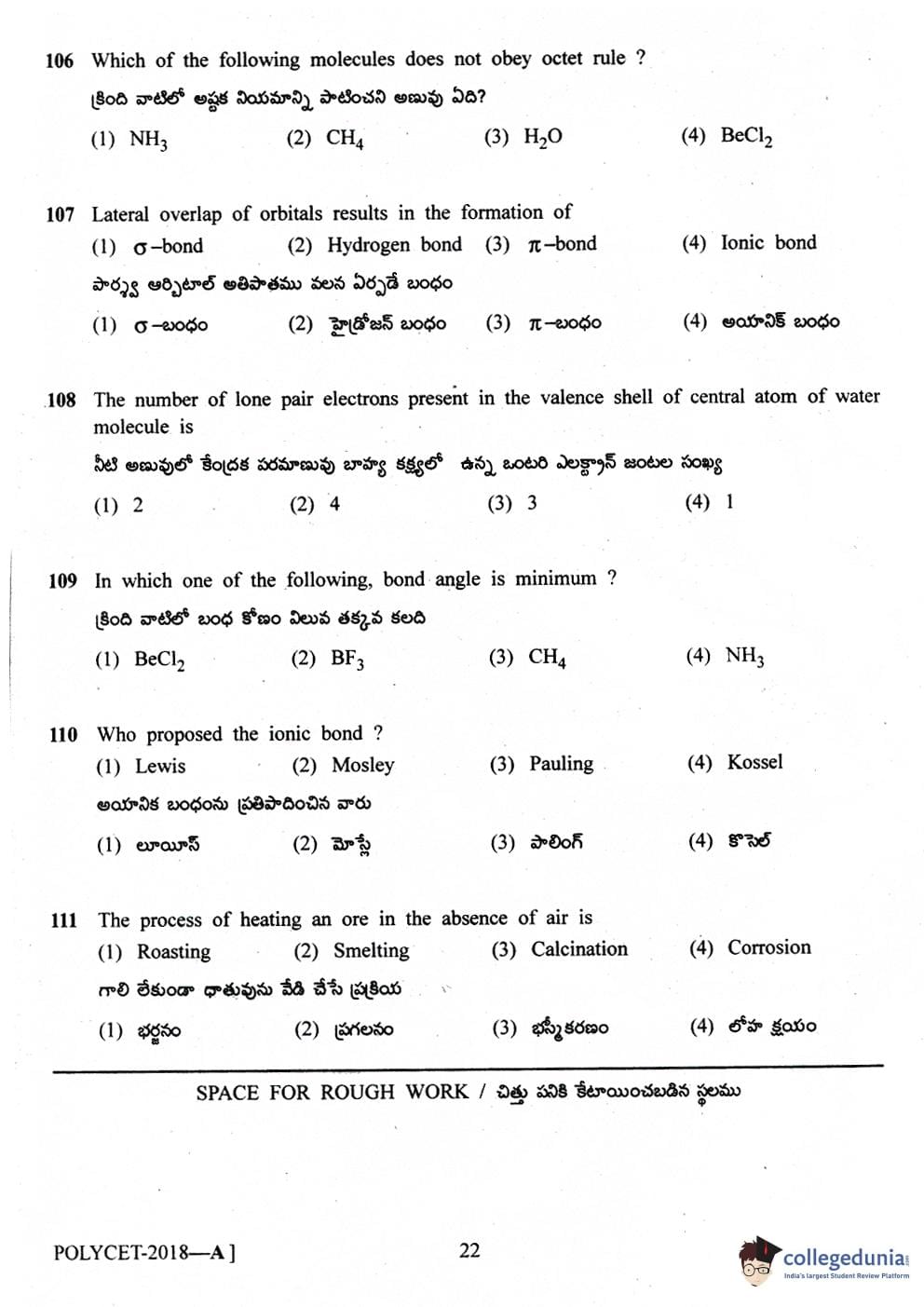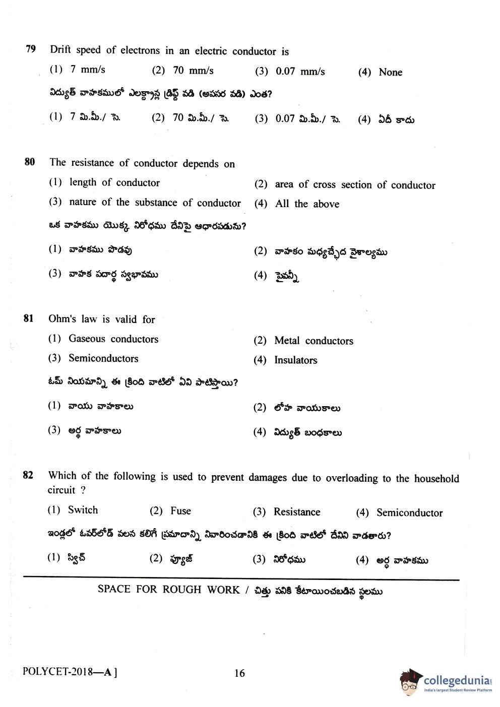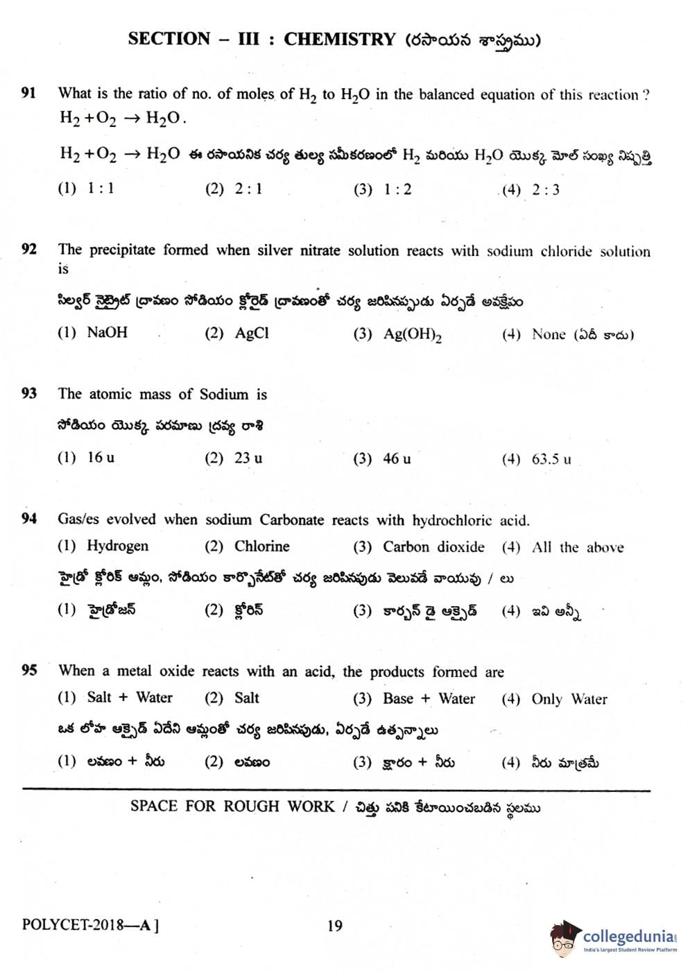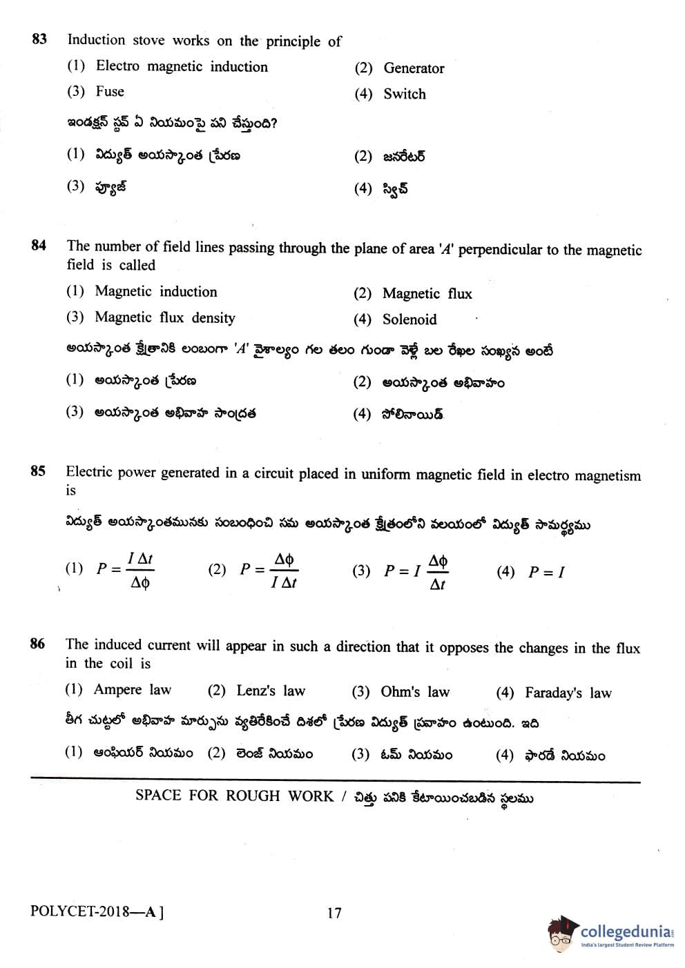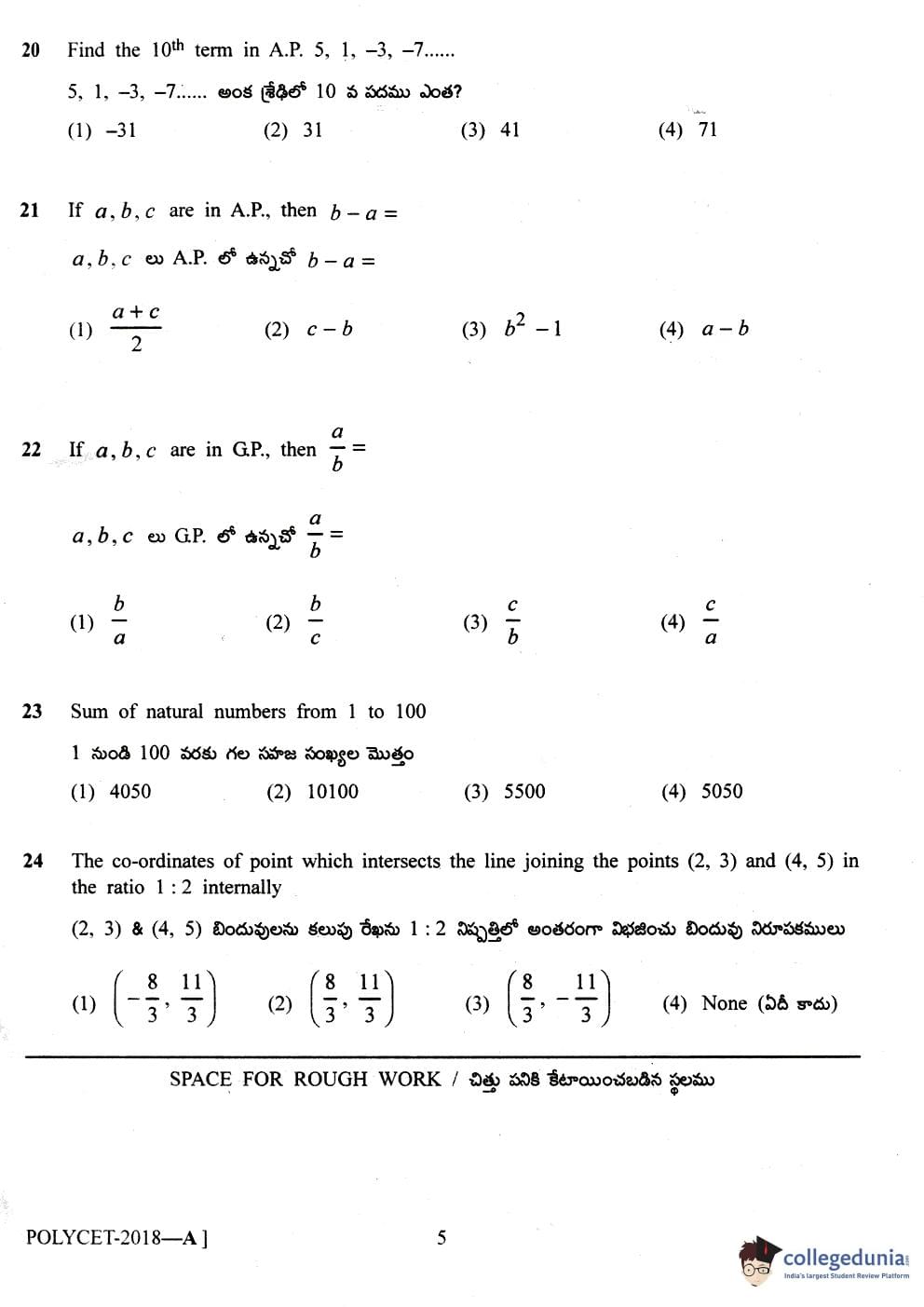 TS POLYCET 2018 SET A Question Paper with Answer Key PDFs Forenoon Session