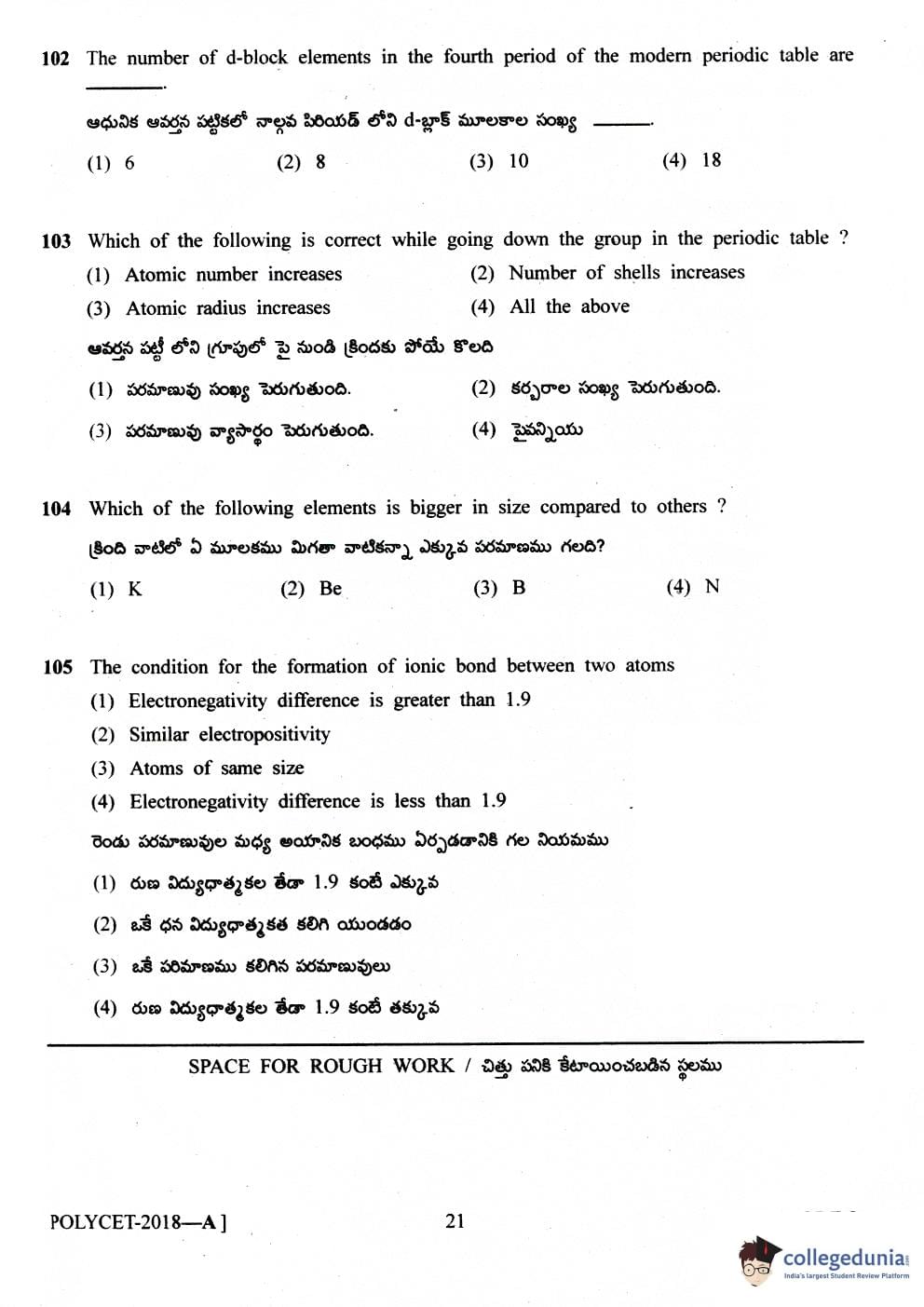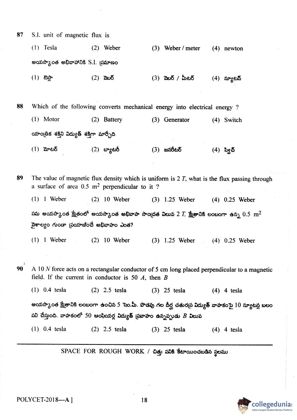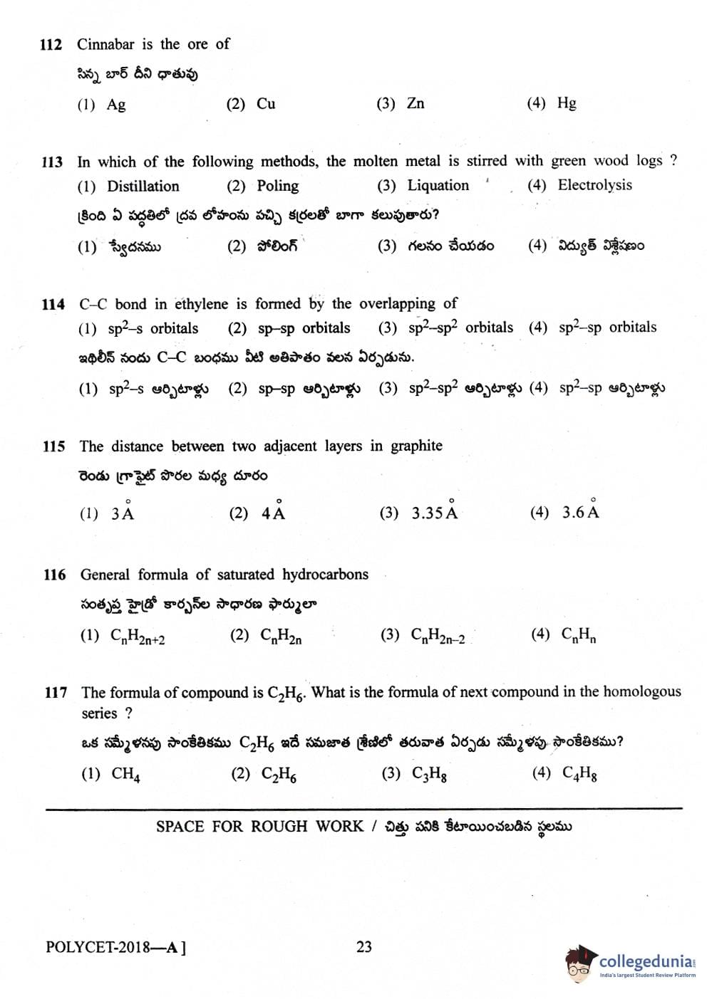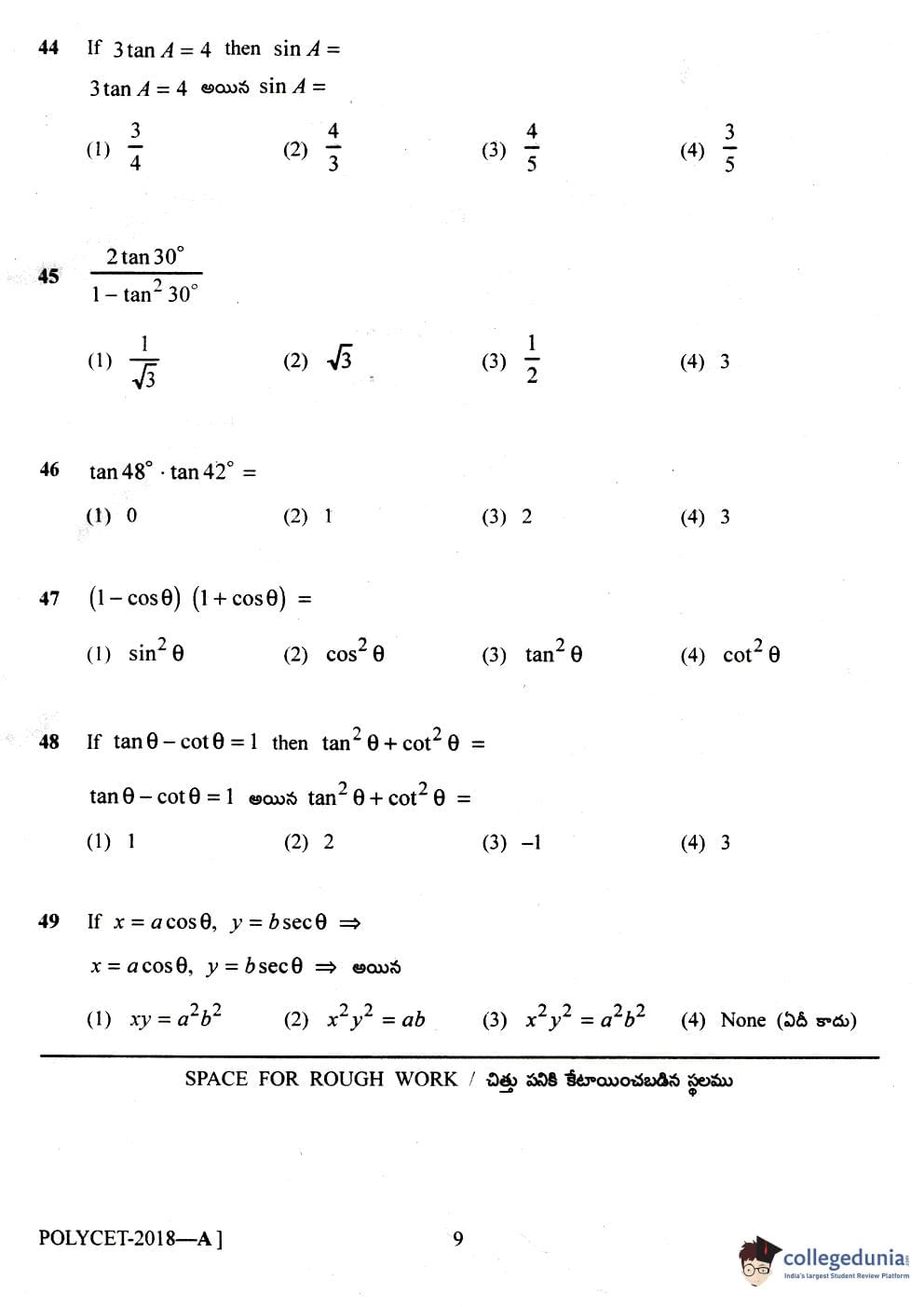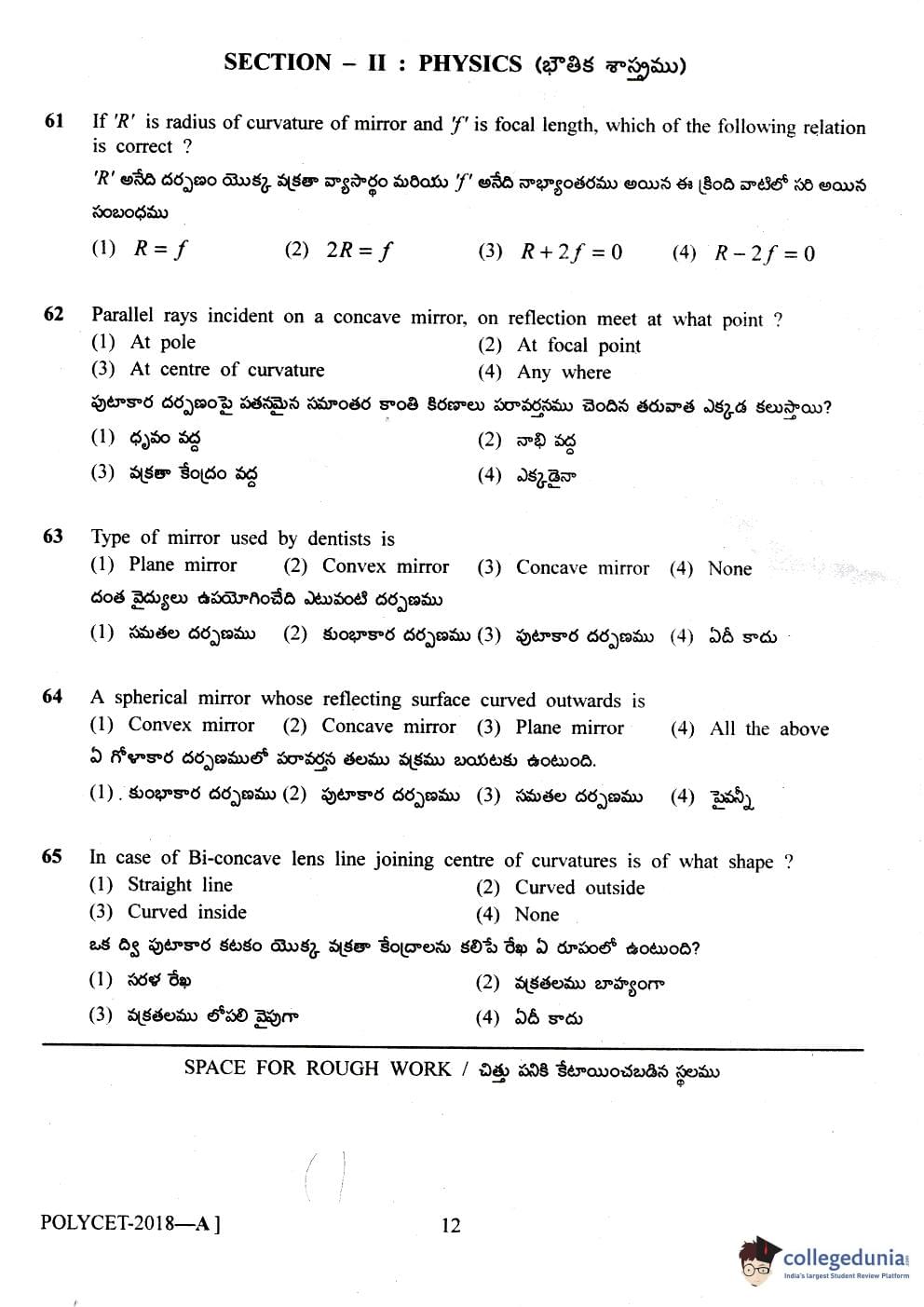 TS POLYCET 2018 SET A Question Paper with Answer Key PDFs Forenoon Session
