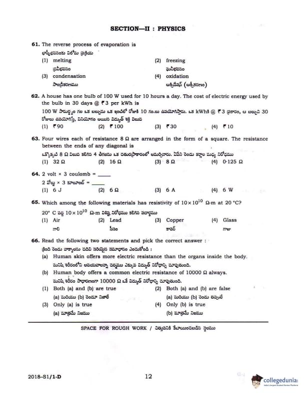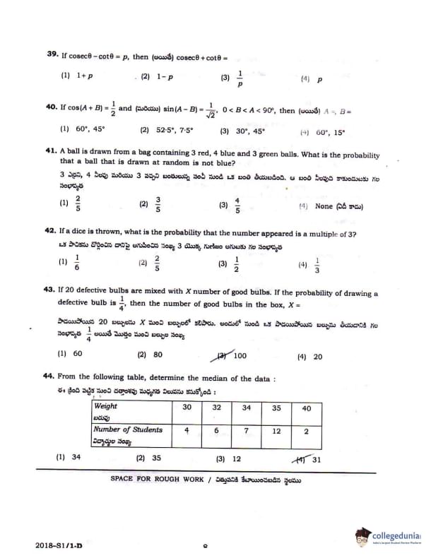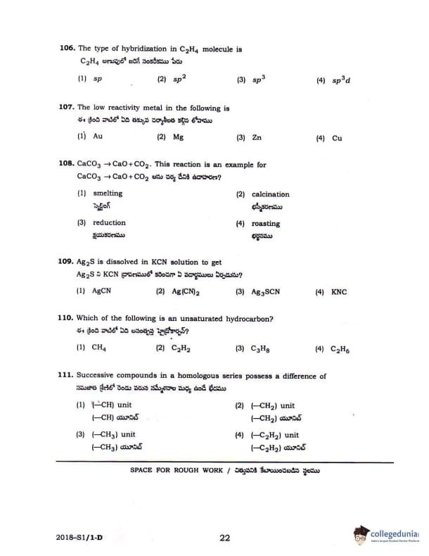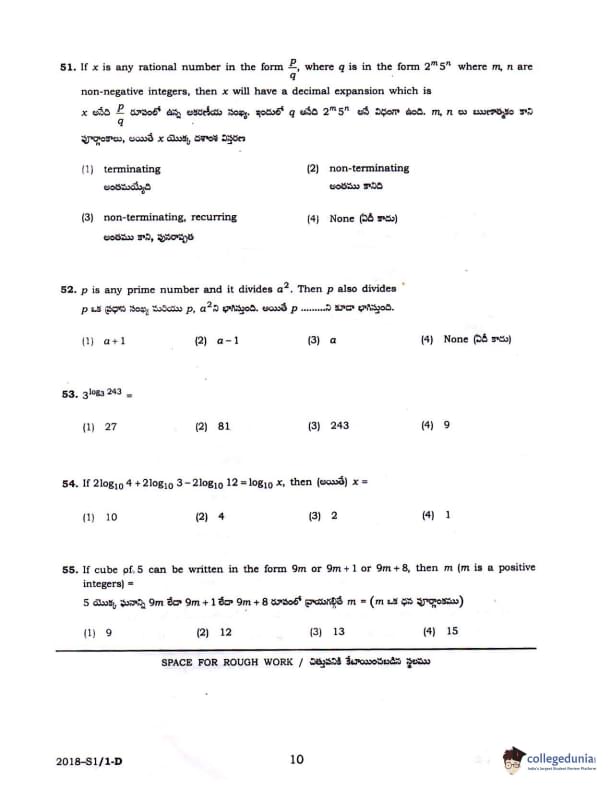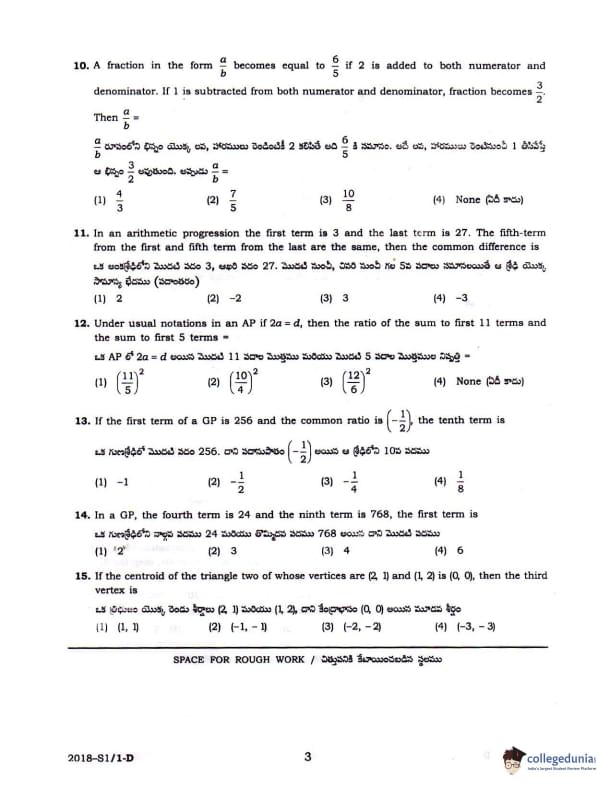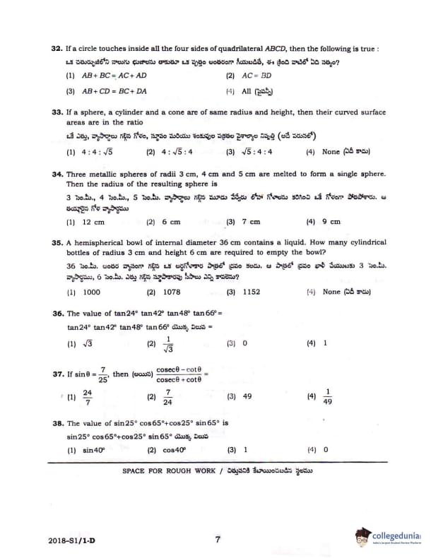 TS POLYCET 2018 SET D Question Paper with Answer Key PDFs Forenoon Session