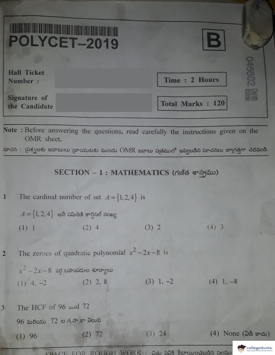 TS POLYCET 2019 SET B Question Paper with Answer Key PDFs Forenoon Session