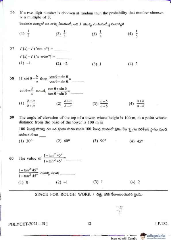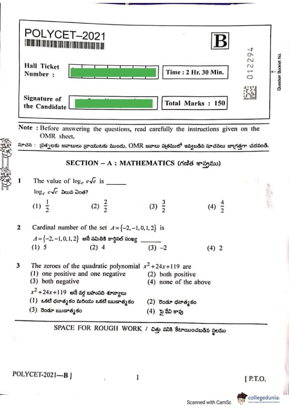 TS POLYCET 2021 SET B Question paper with answer key pdf conducted on July 17, 2021 in Forenoon Session 11 AM to 1 PM is available for download. The exam was successfully organized by State Board of Technical Education and Training. The question paper comprised a total of 120 questions.