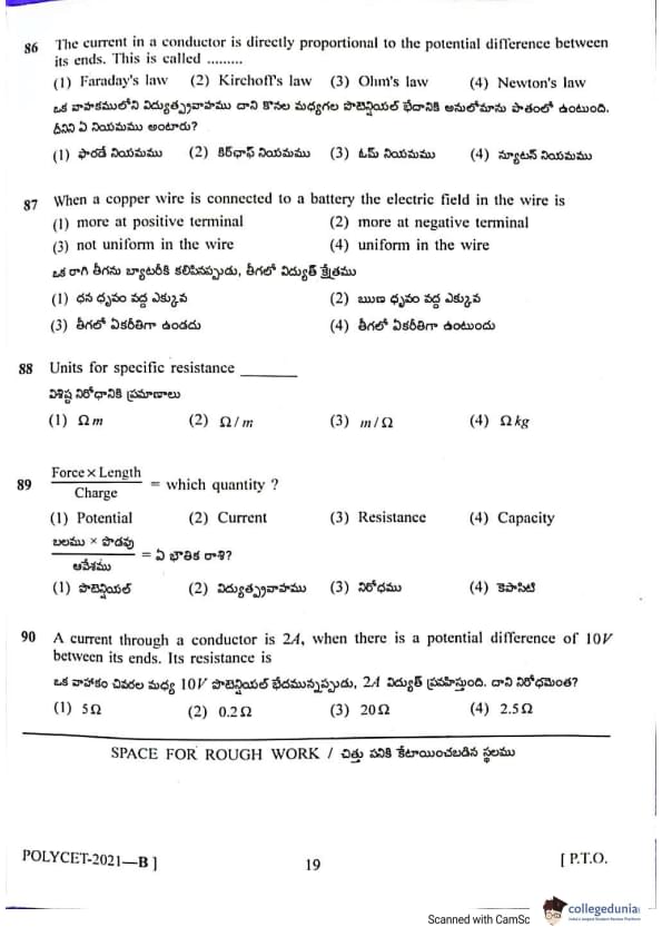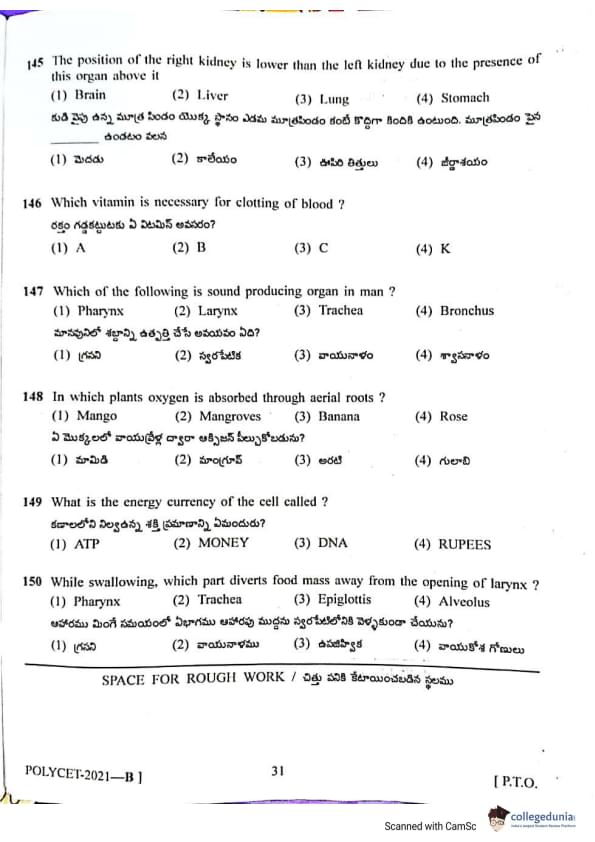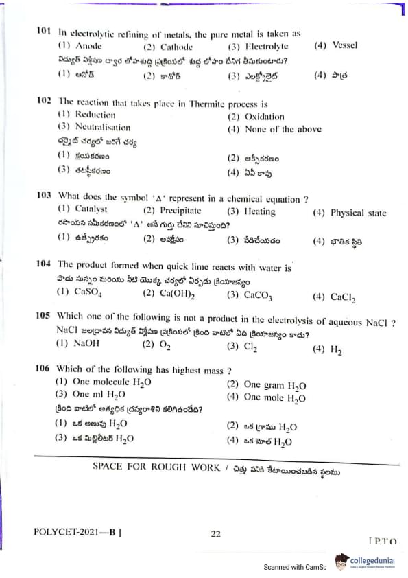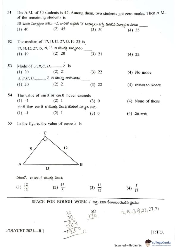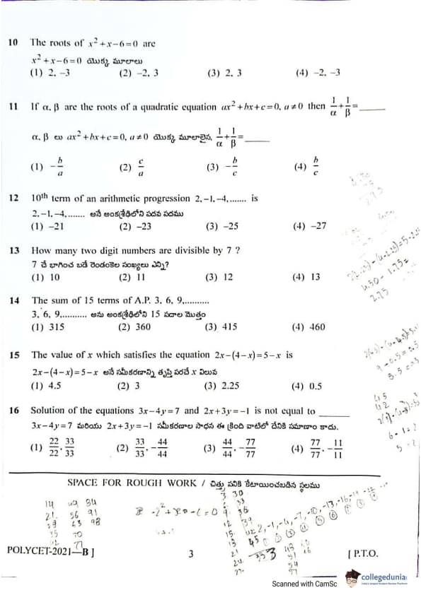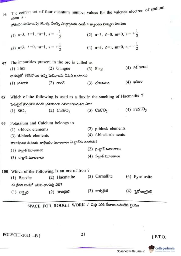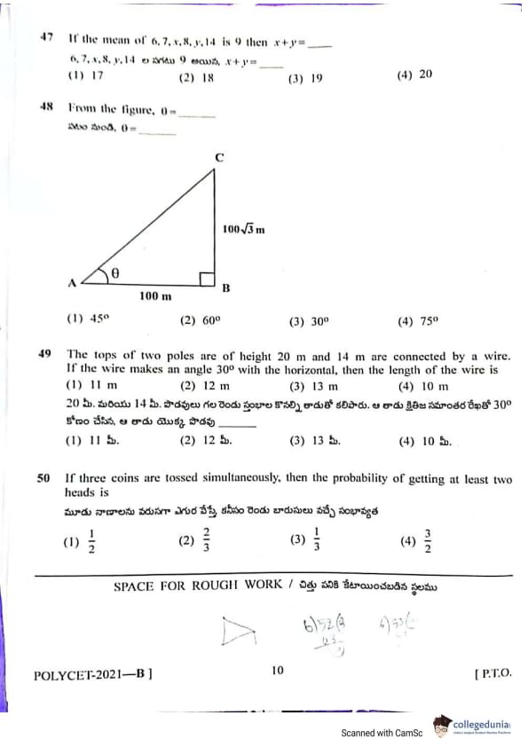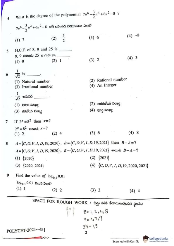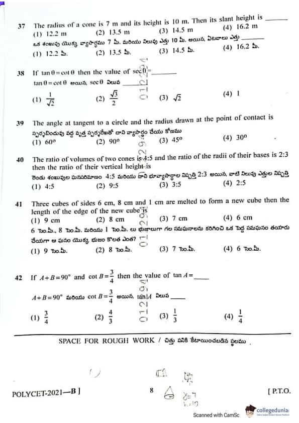 TS POLYCET 2021 SET B Question Paper with Answer Key PDFs Forenoon Session