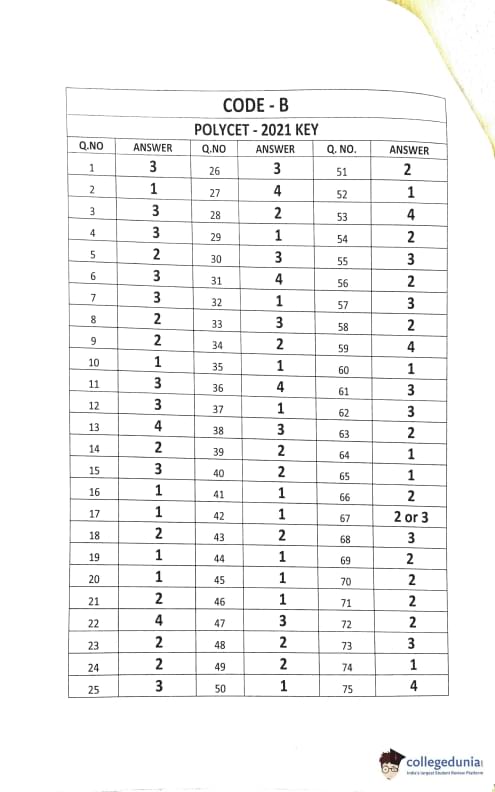 | TS POLYCET 2021 SET B Question Paper PDF | TS POLYCET 2021 SET B Answer Key PDF |