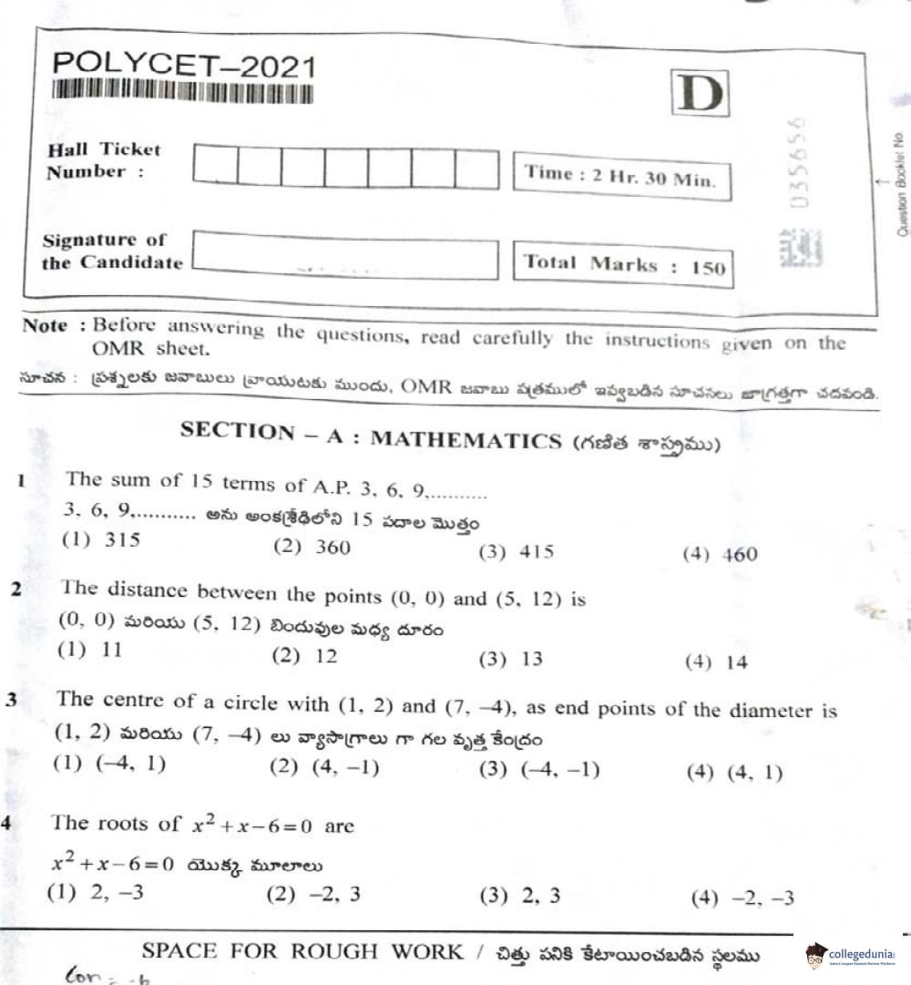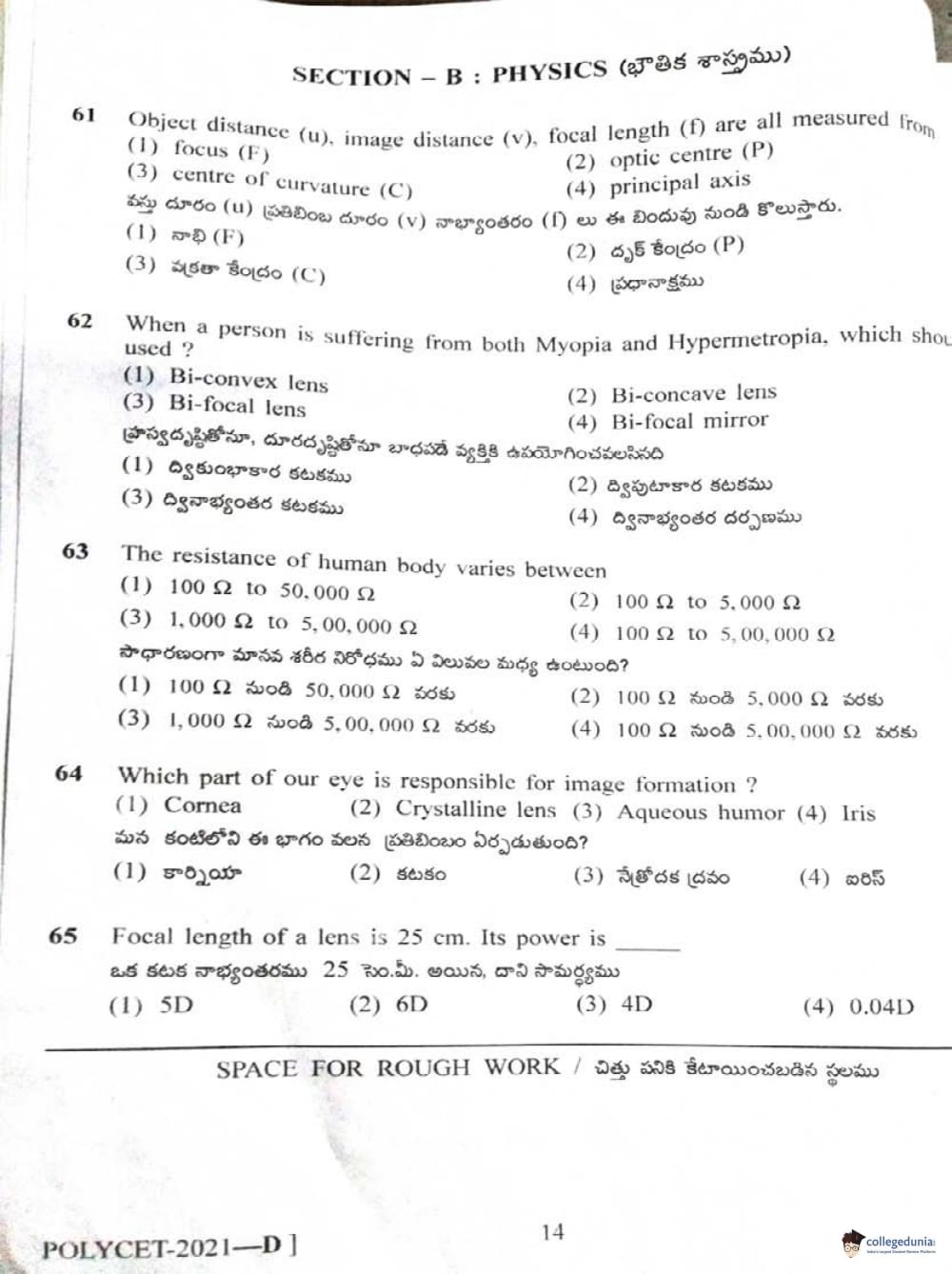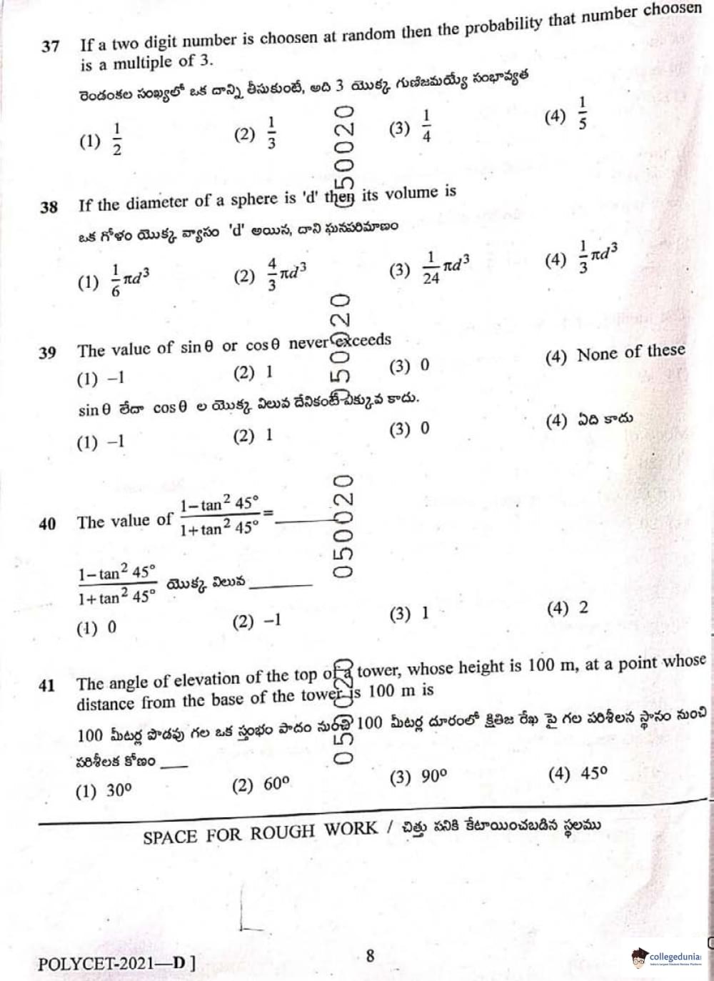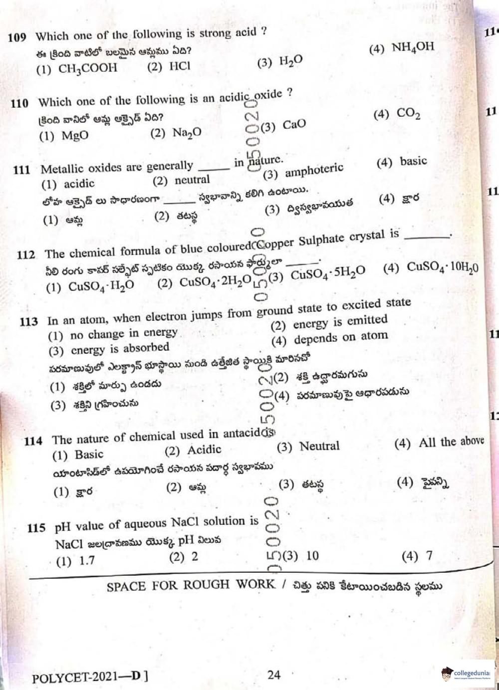 TS POLYCET 2021 SET D Question Paper with Answer Key PDFs Forenoon Session