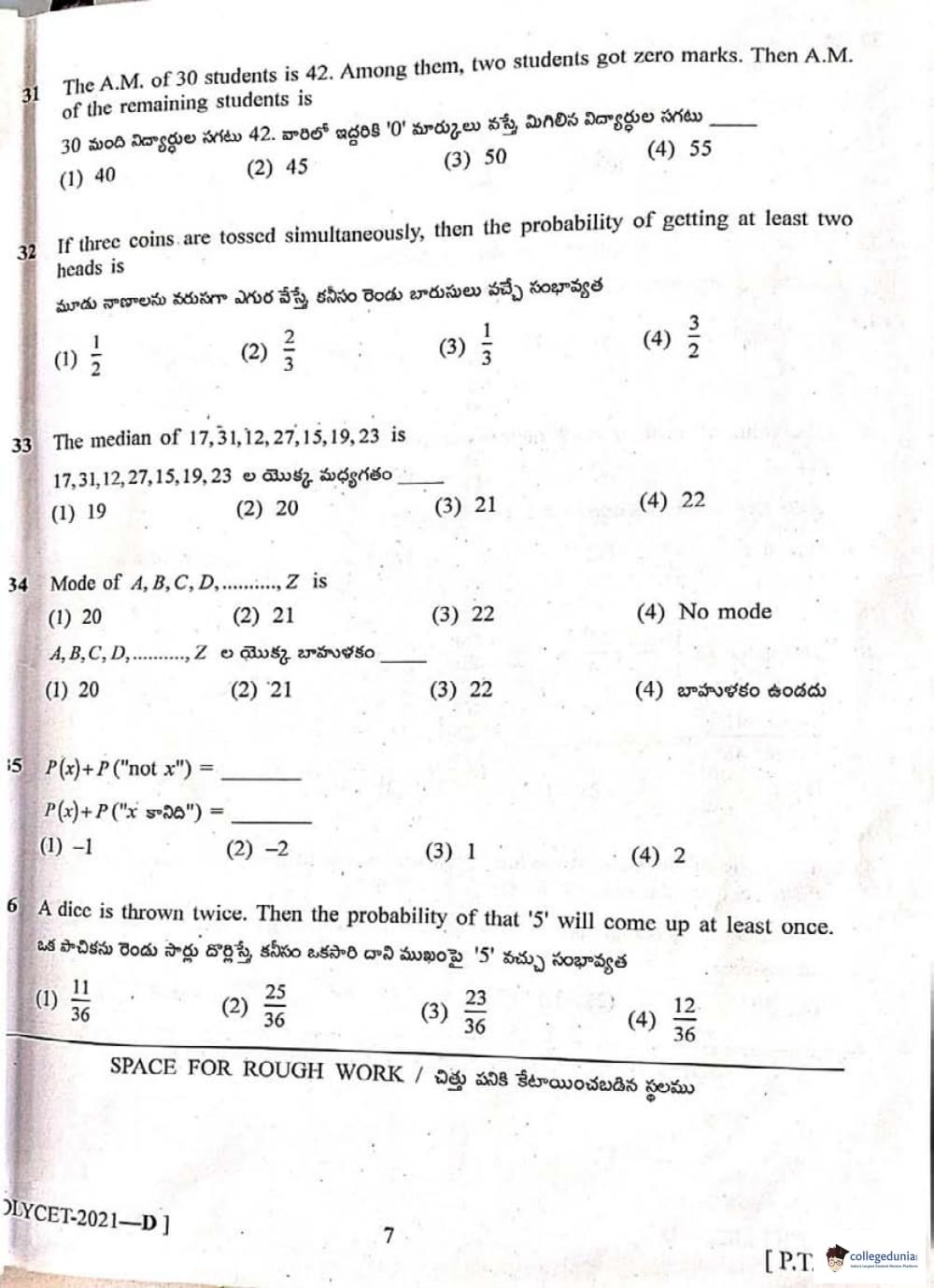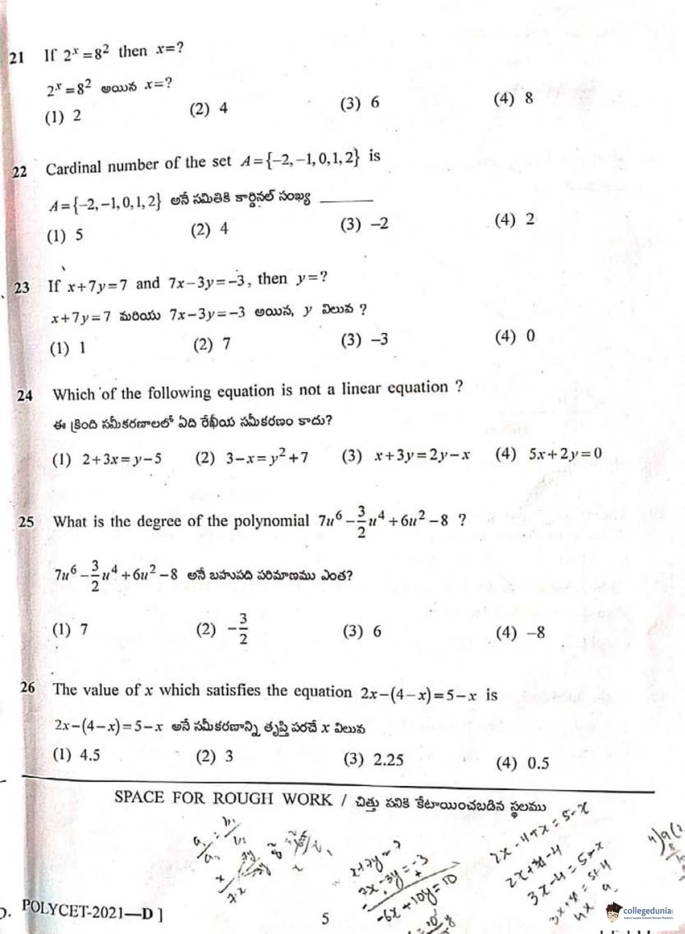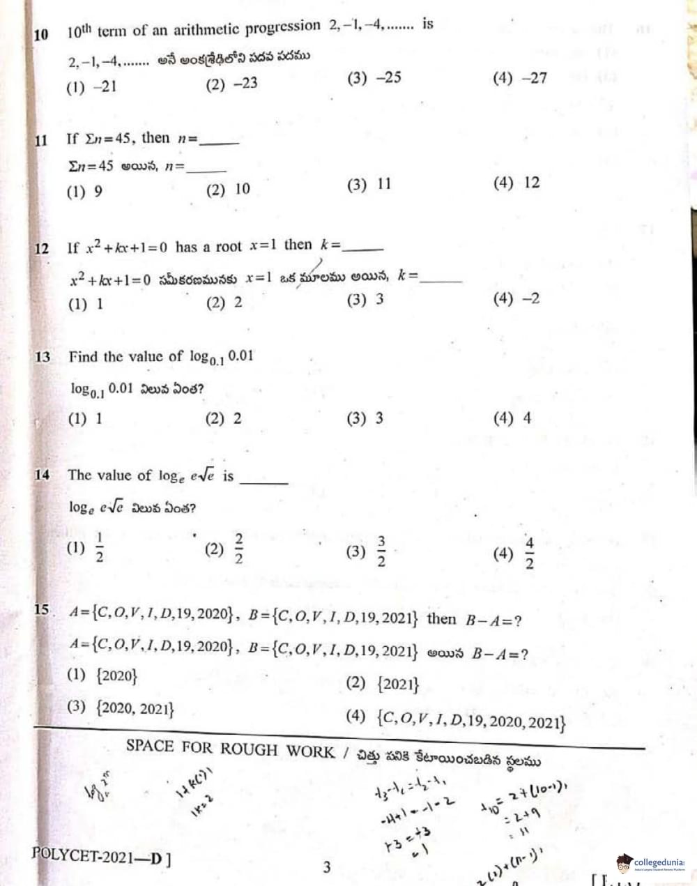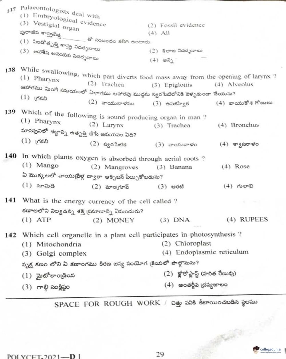 TS POLYCET 2021 SET D Question Paper with Answer Key PDFs Forenoon Session