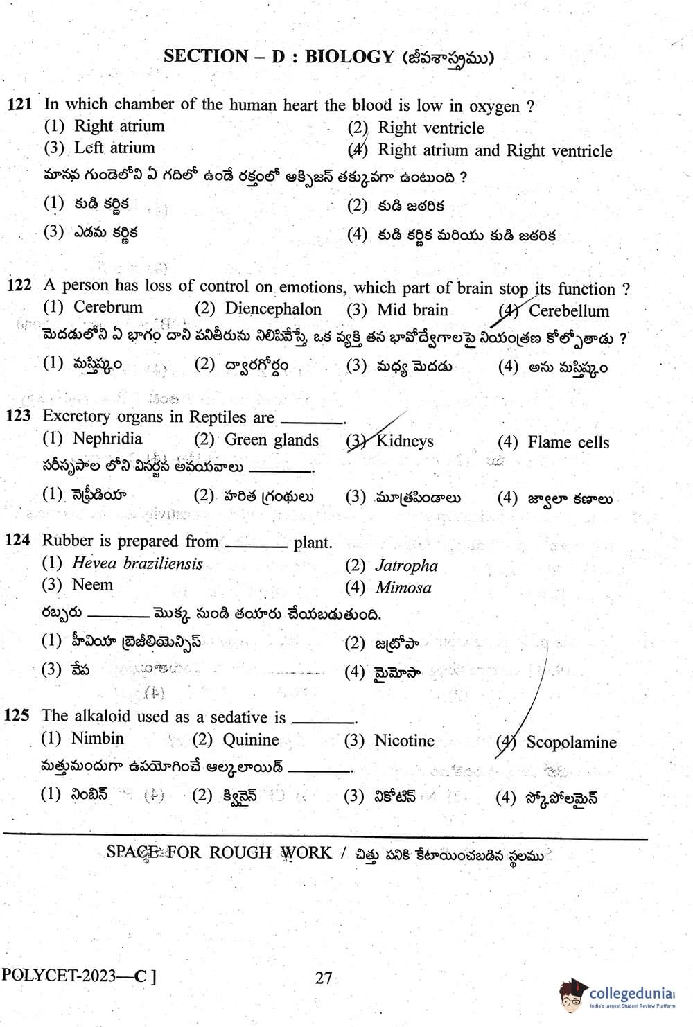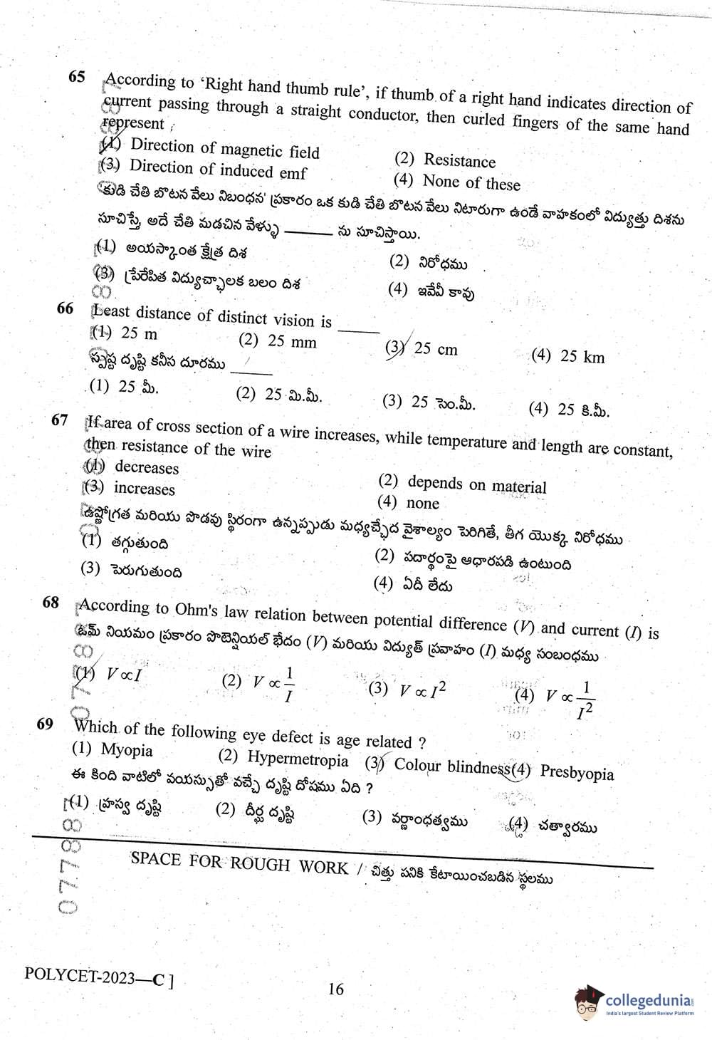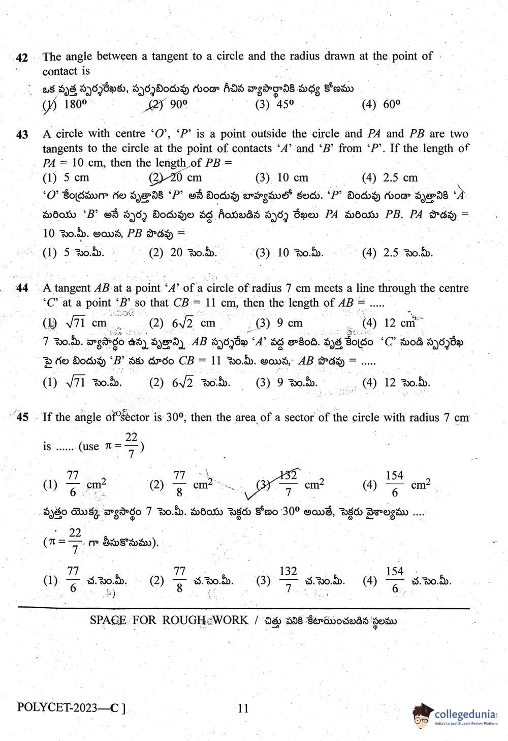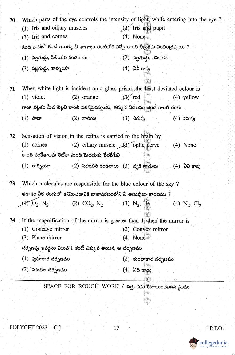 TS POLYCET 2023 Question Paper with Answer Key PDF Set C