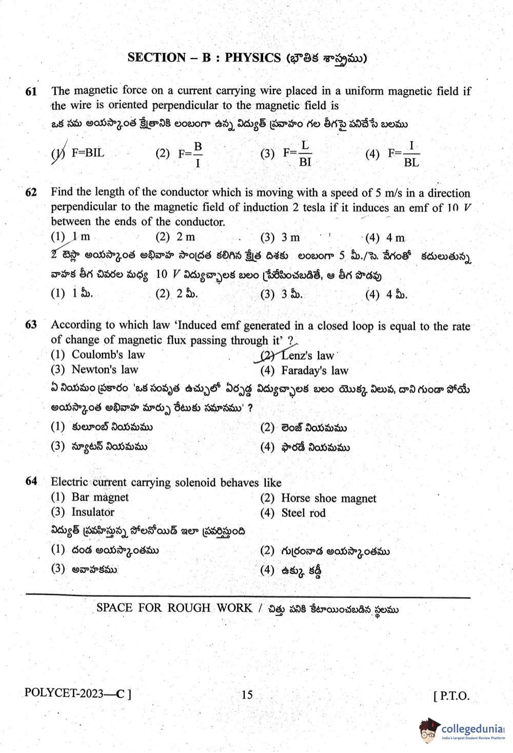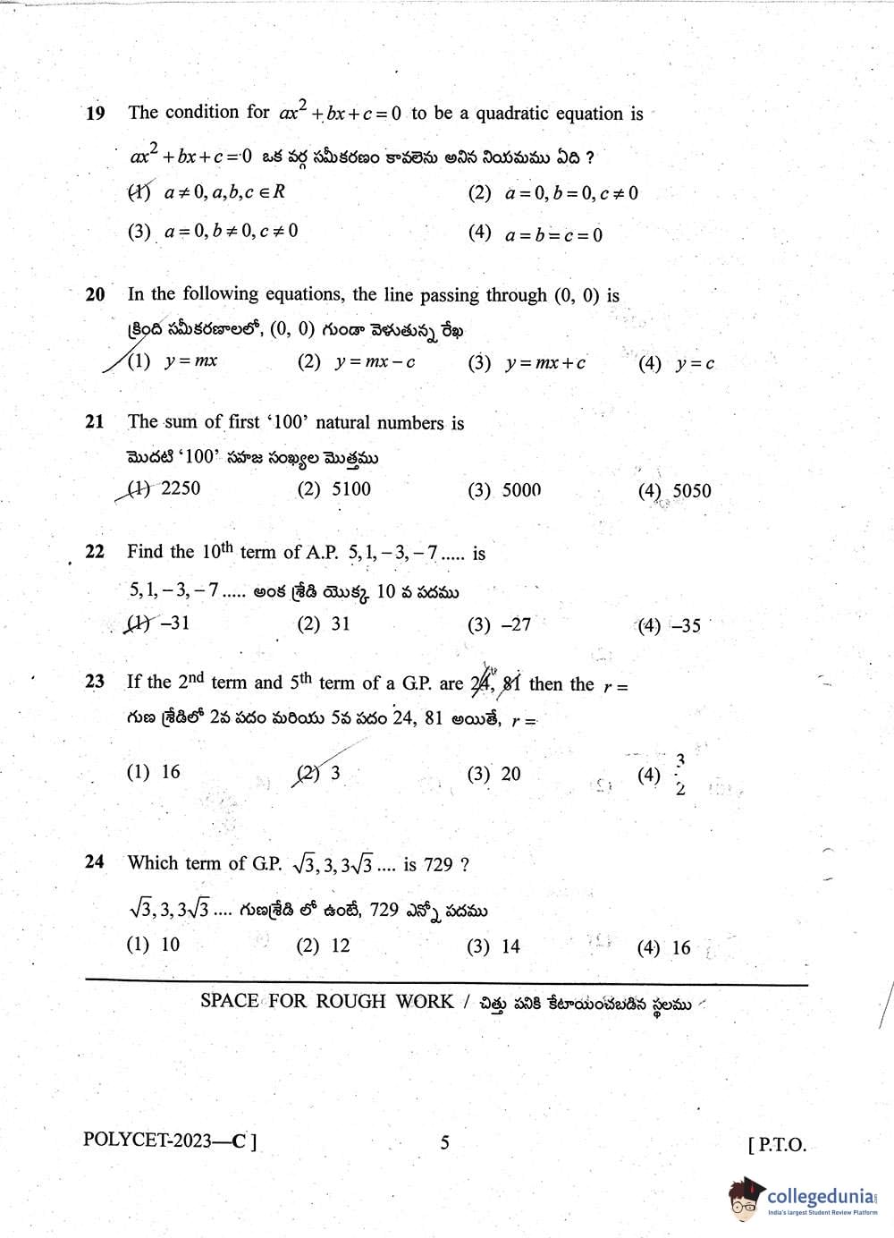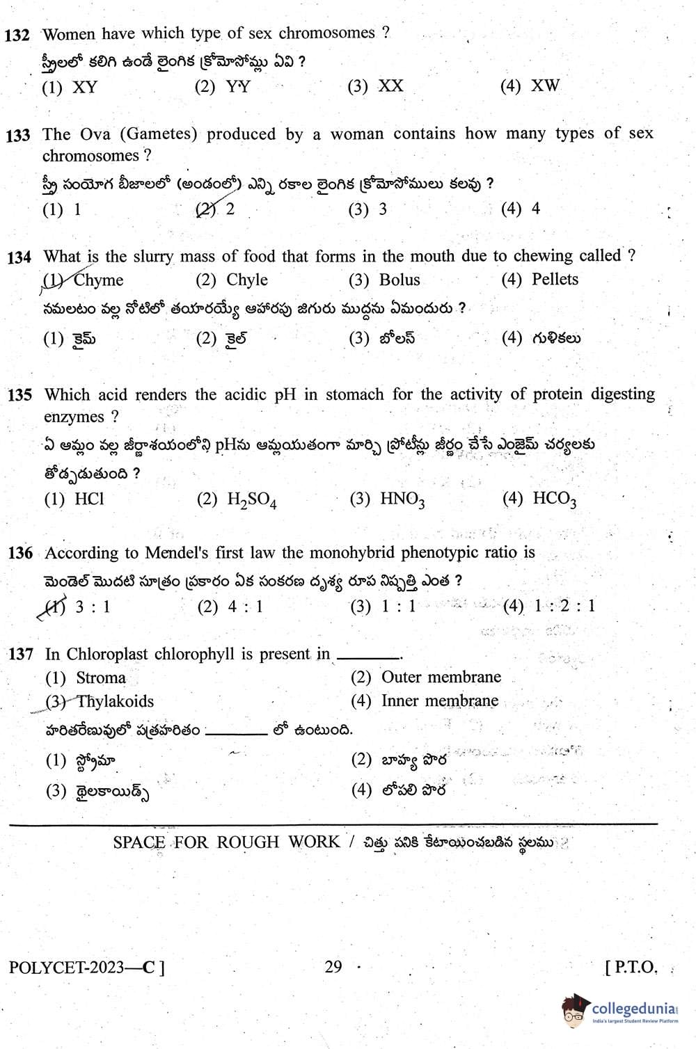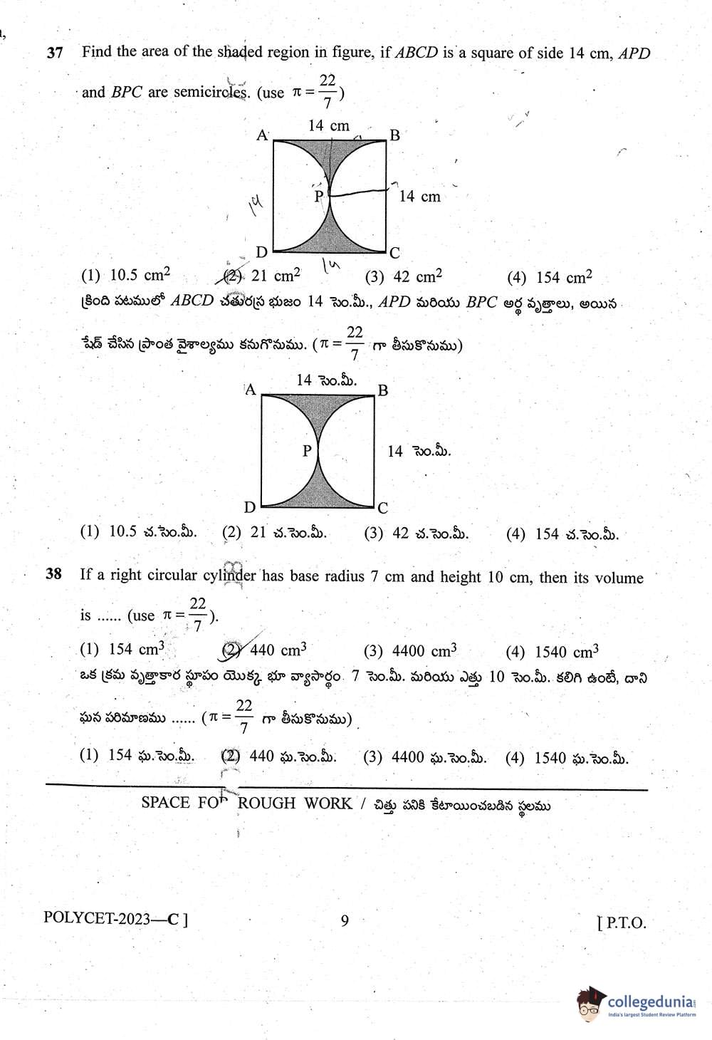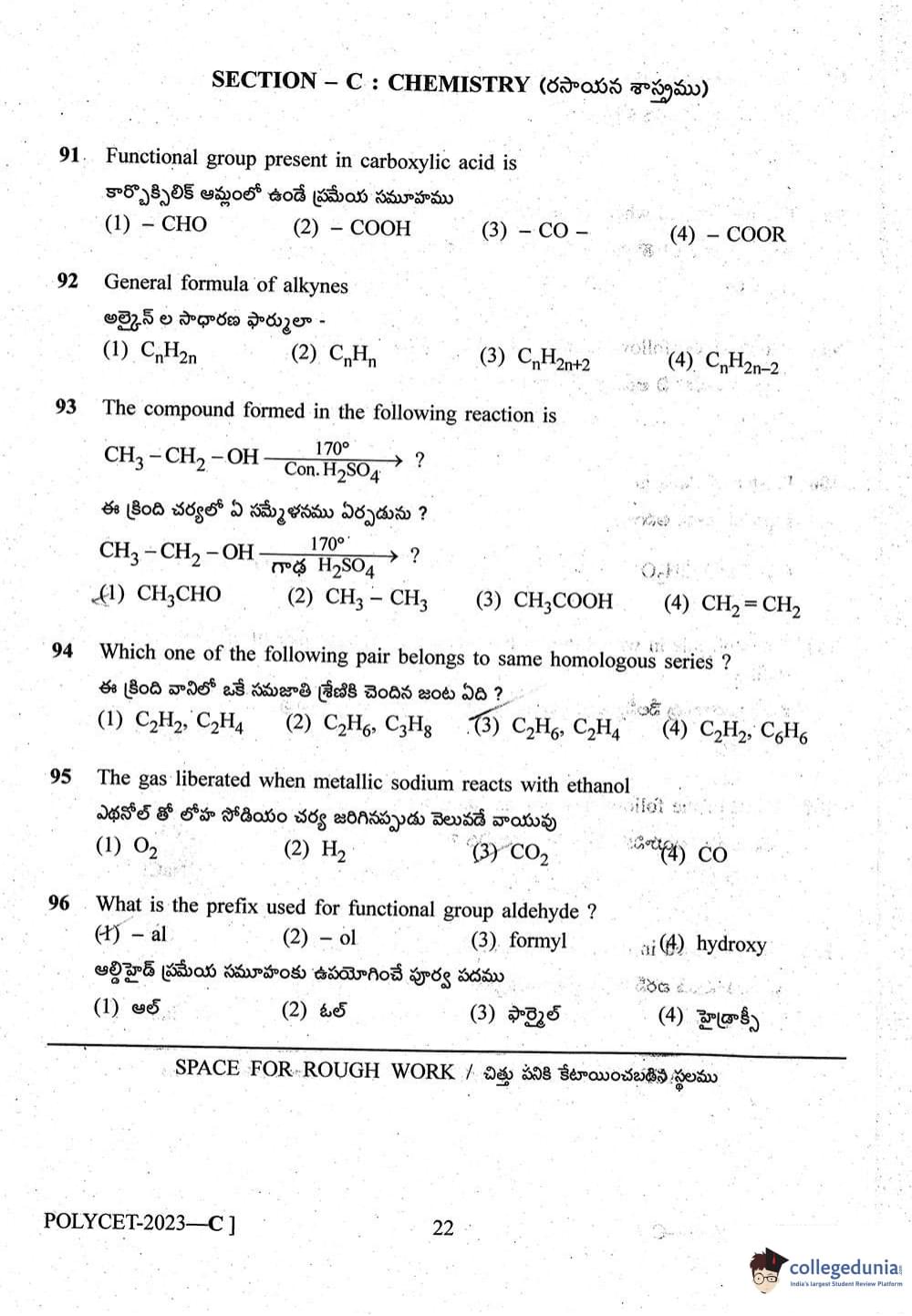 TS POLYCET 2023 Question Paper with Answer Key PDF Set C