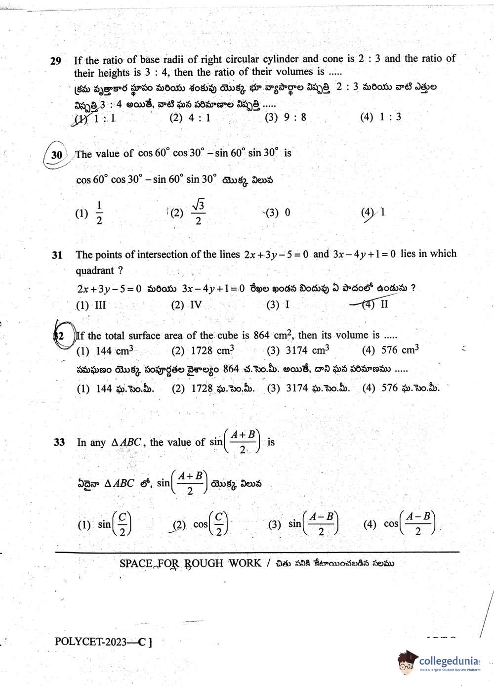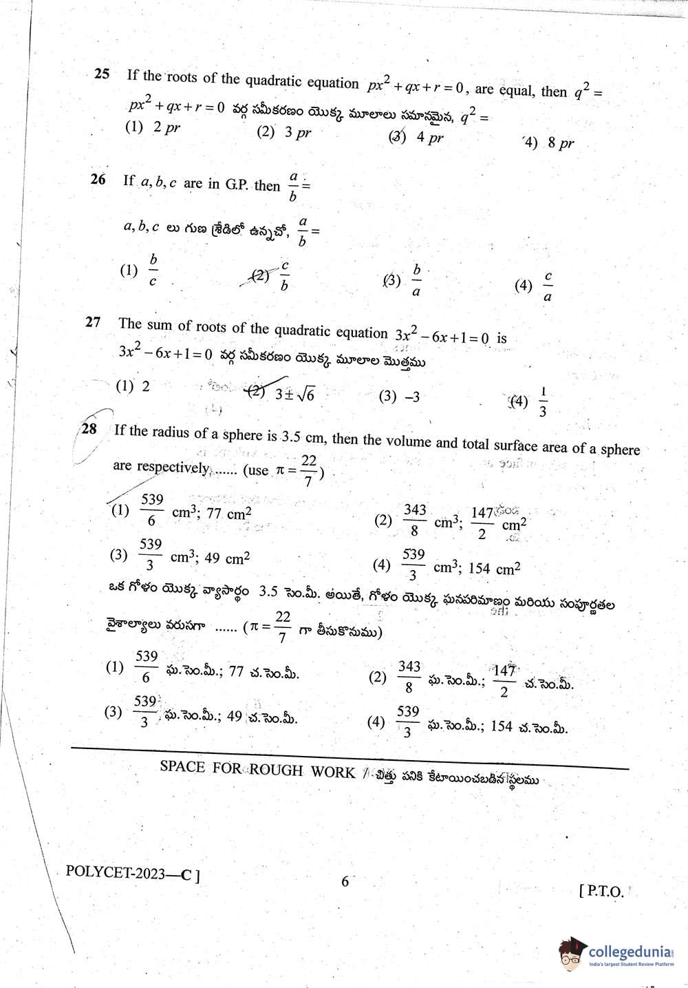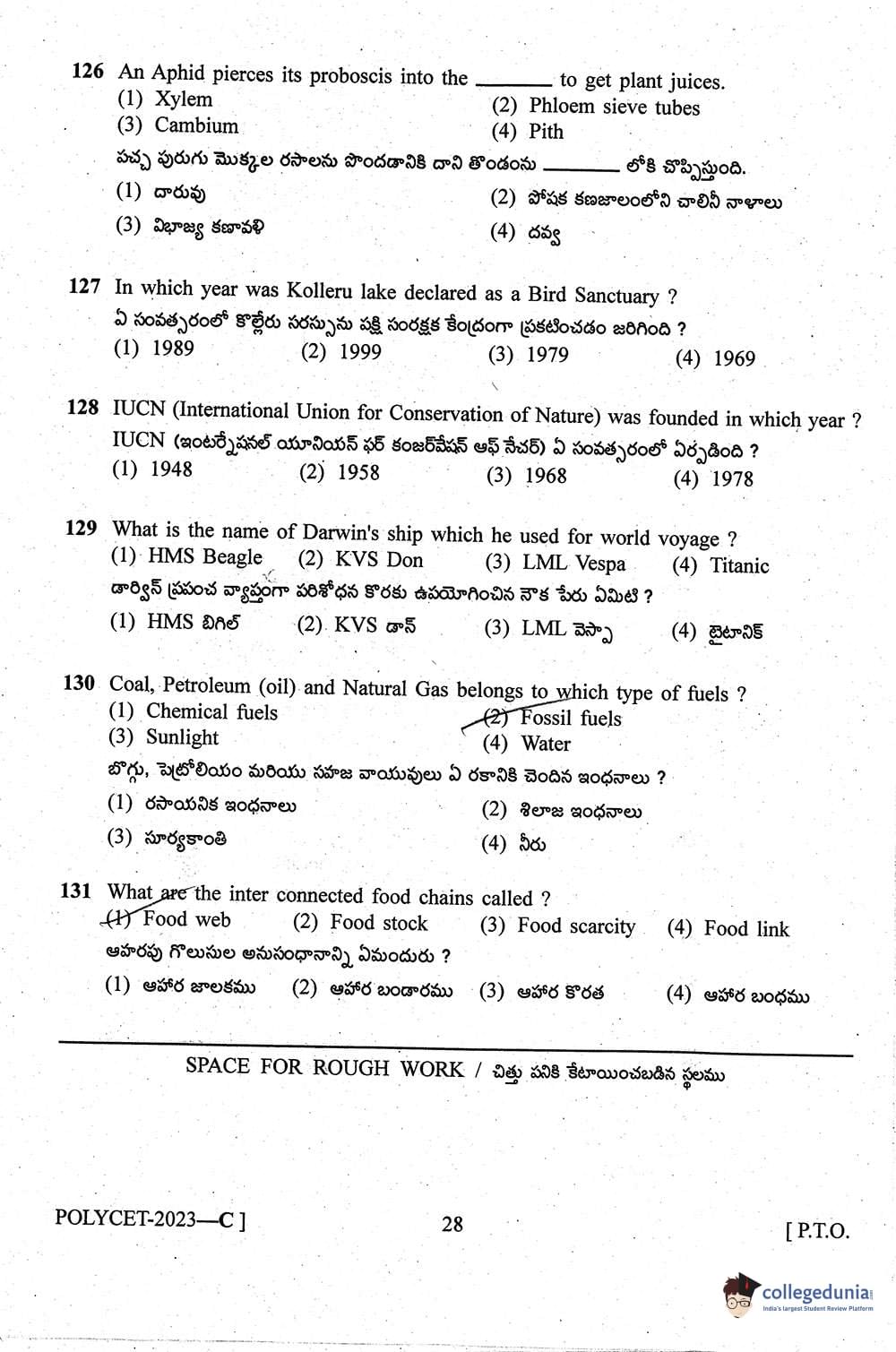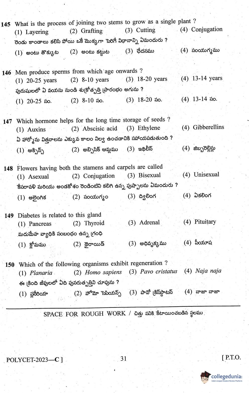 TS POLYCET 2023 Question Paper with Answer Key PDF Set C