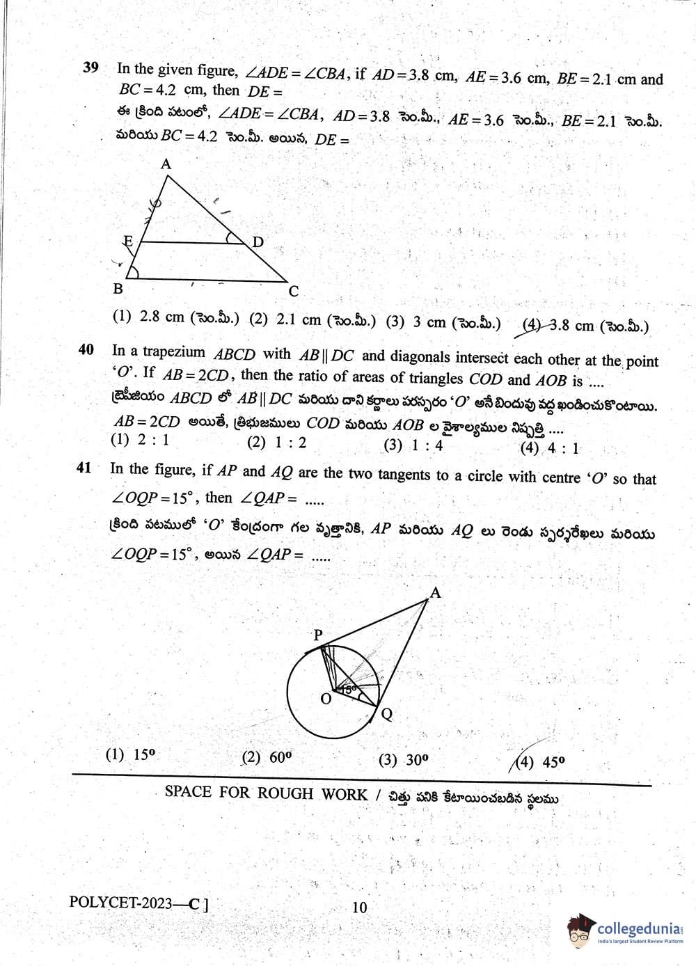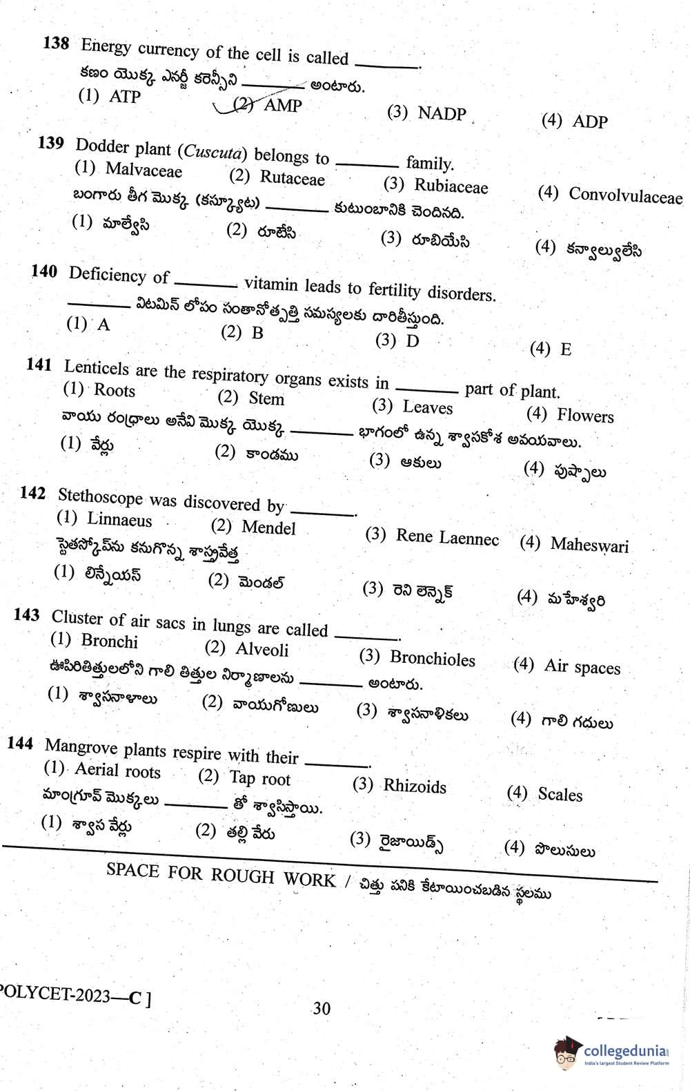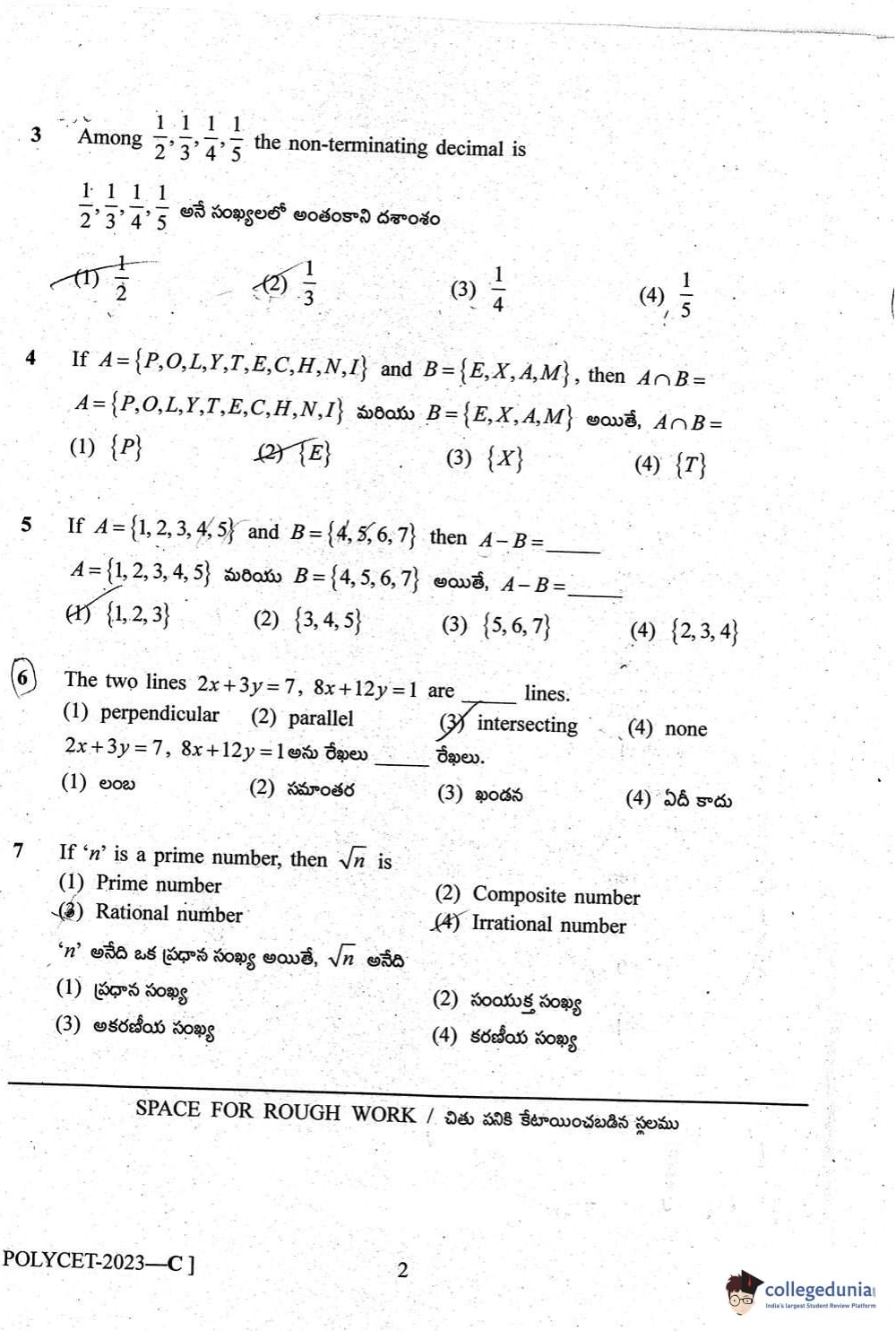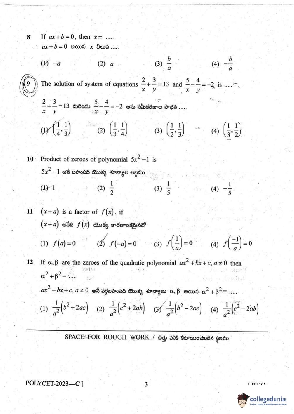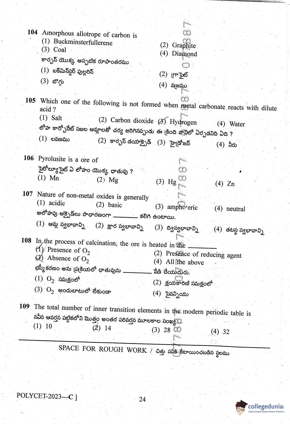 TS POLYCET 2023 Question Paper with Answer Key PDF Set C