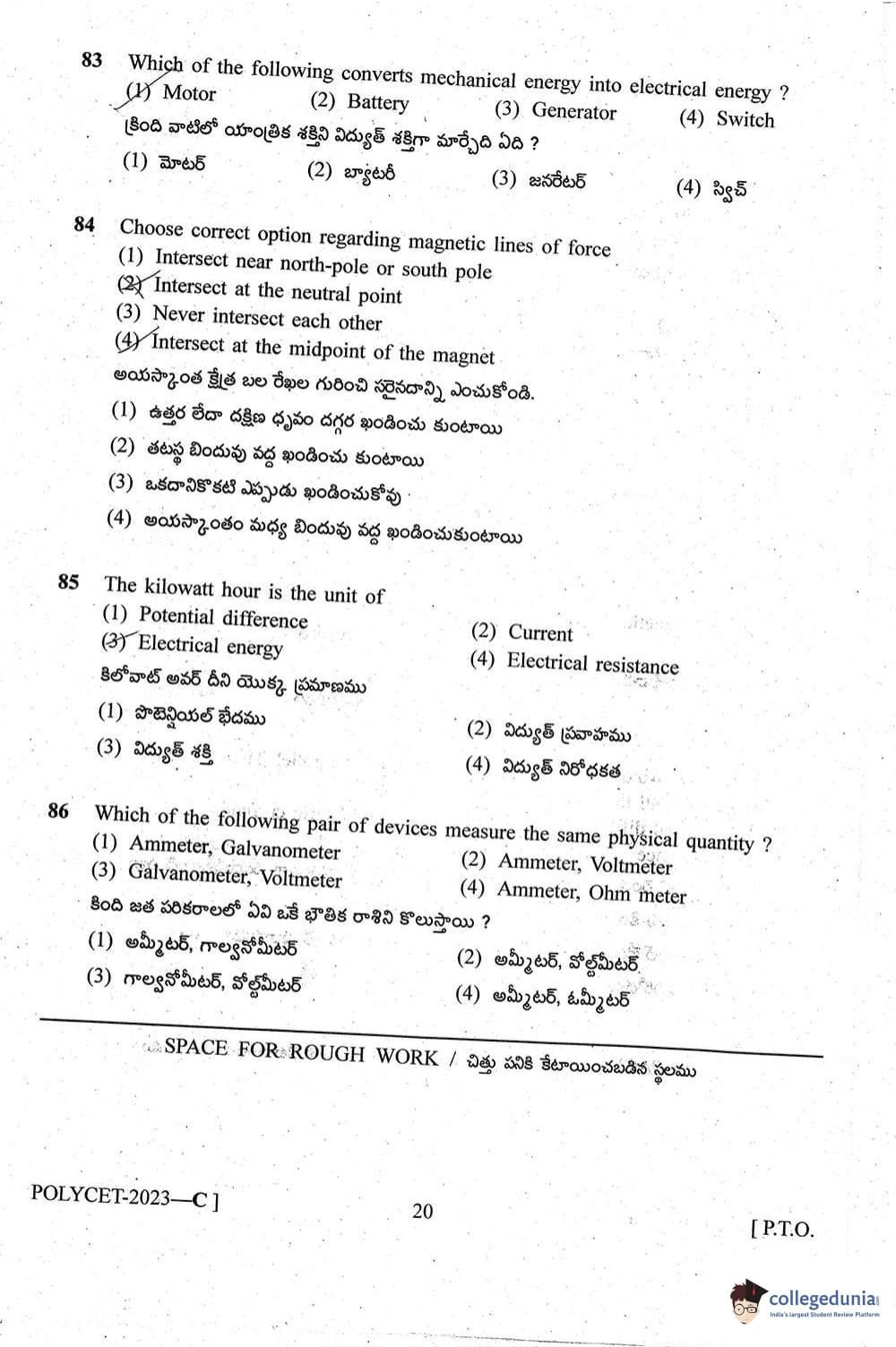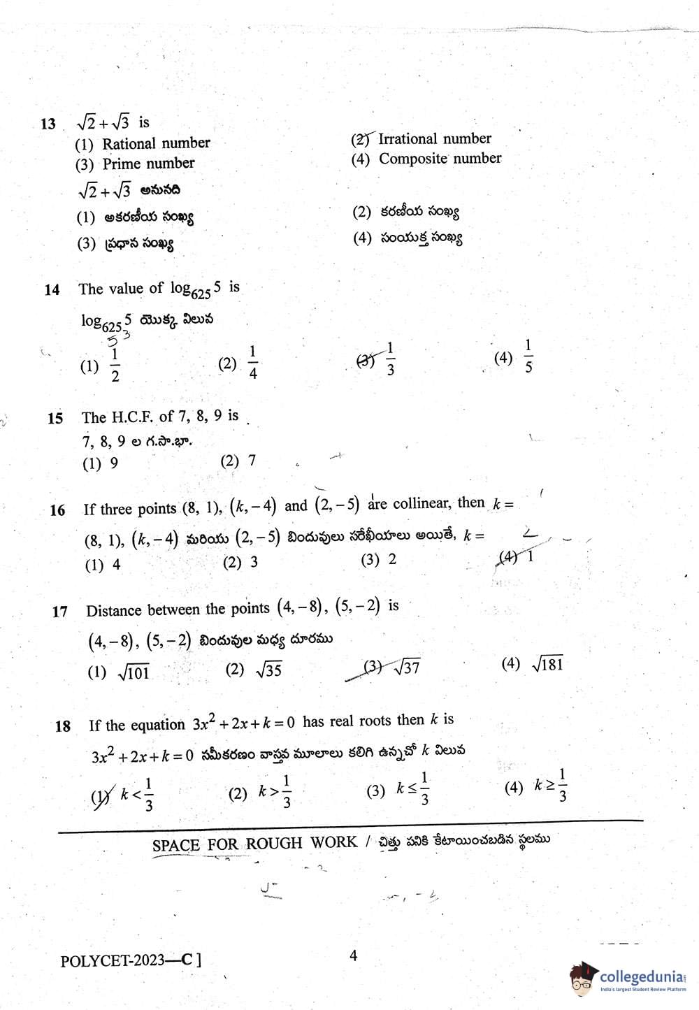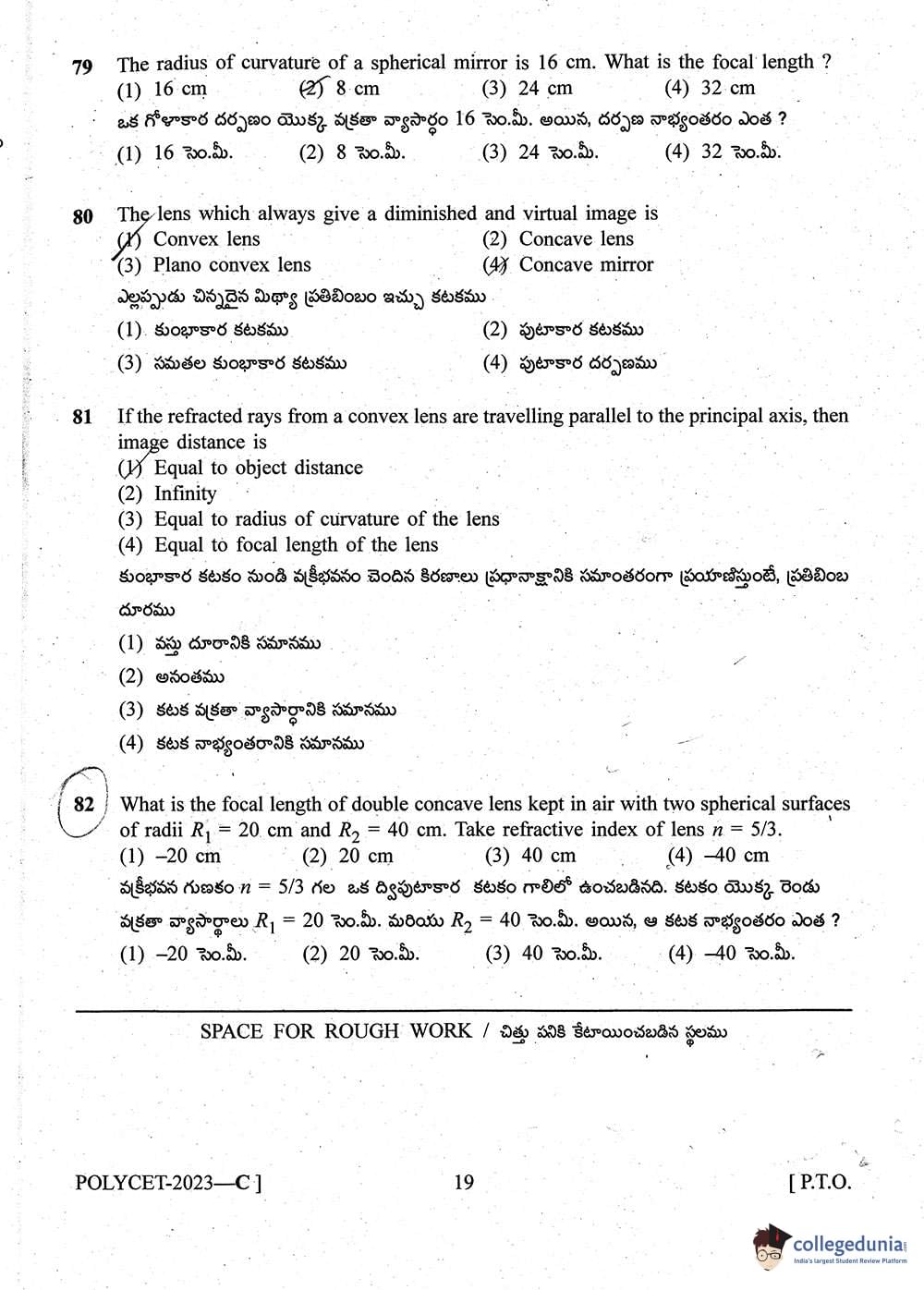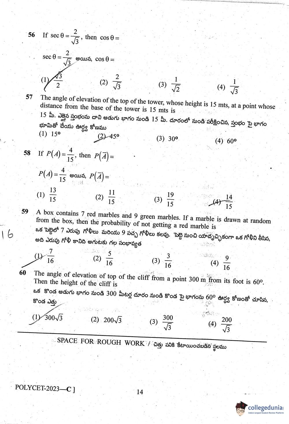 TS POLYCET 2023 Question Paper with Answer Key PDF Set C