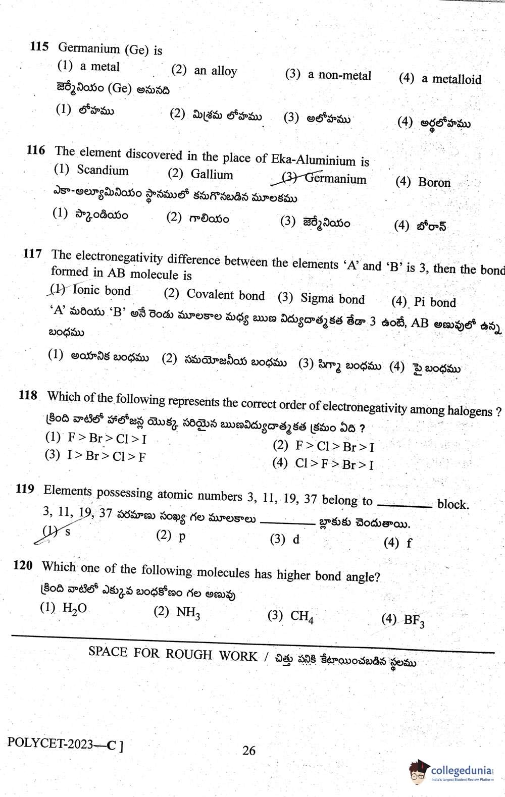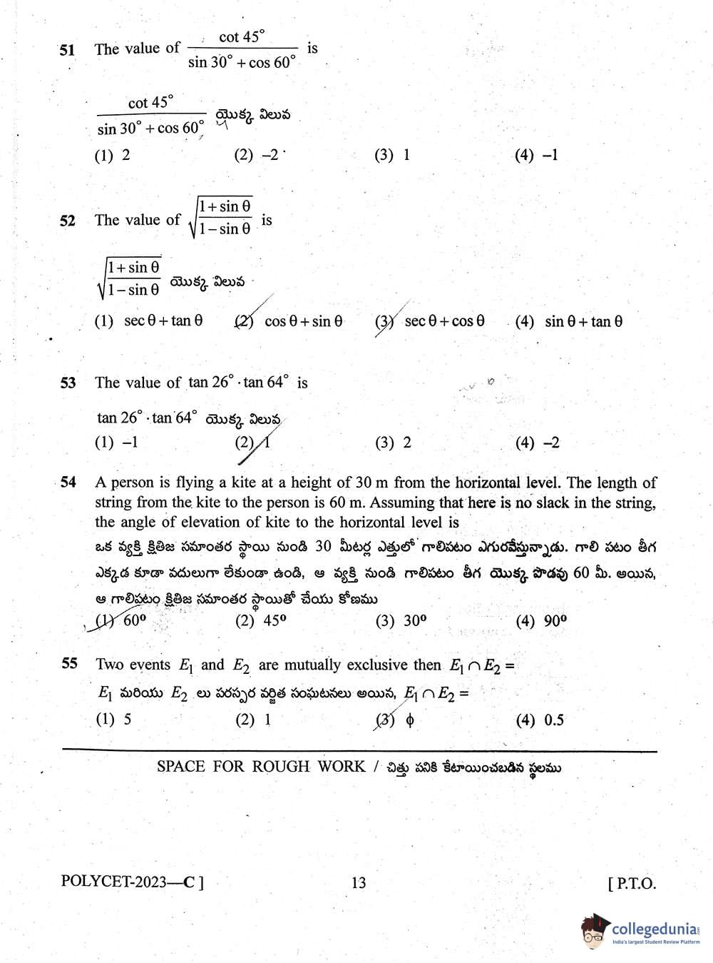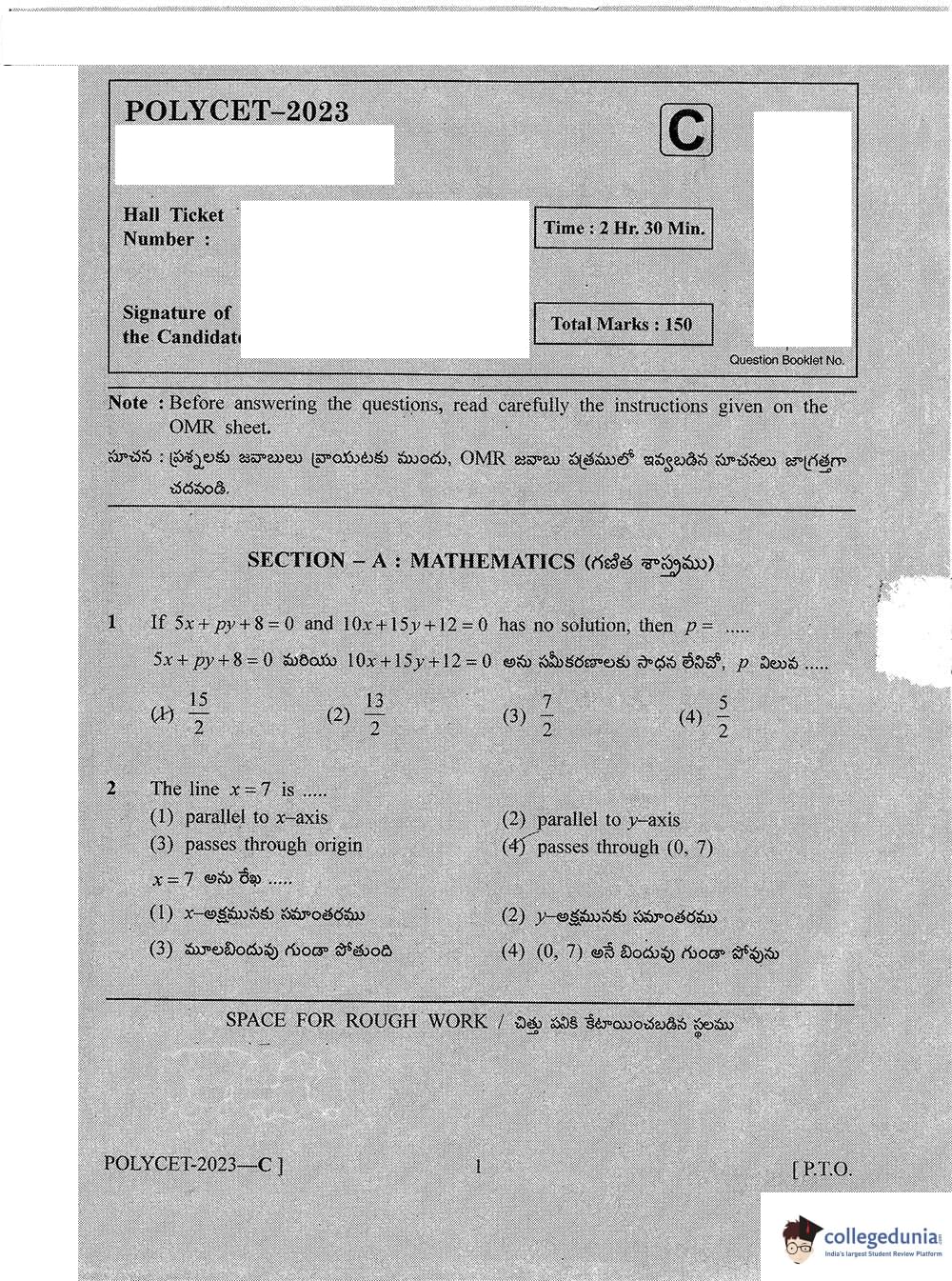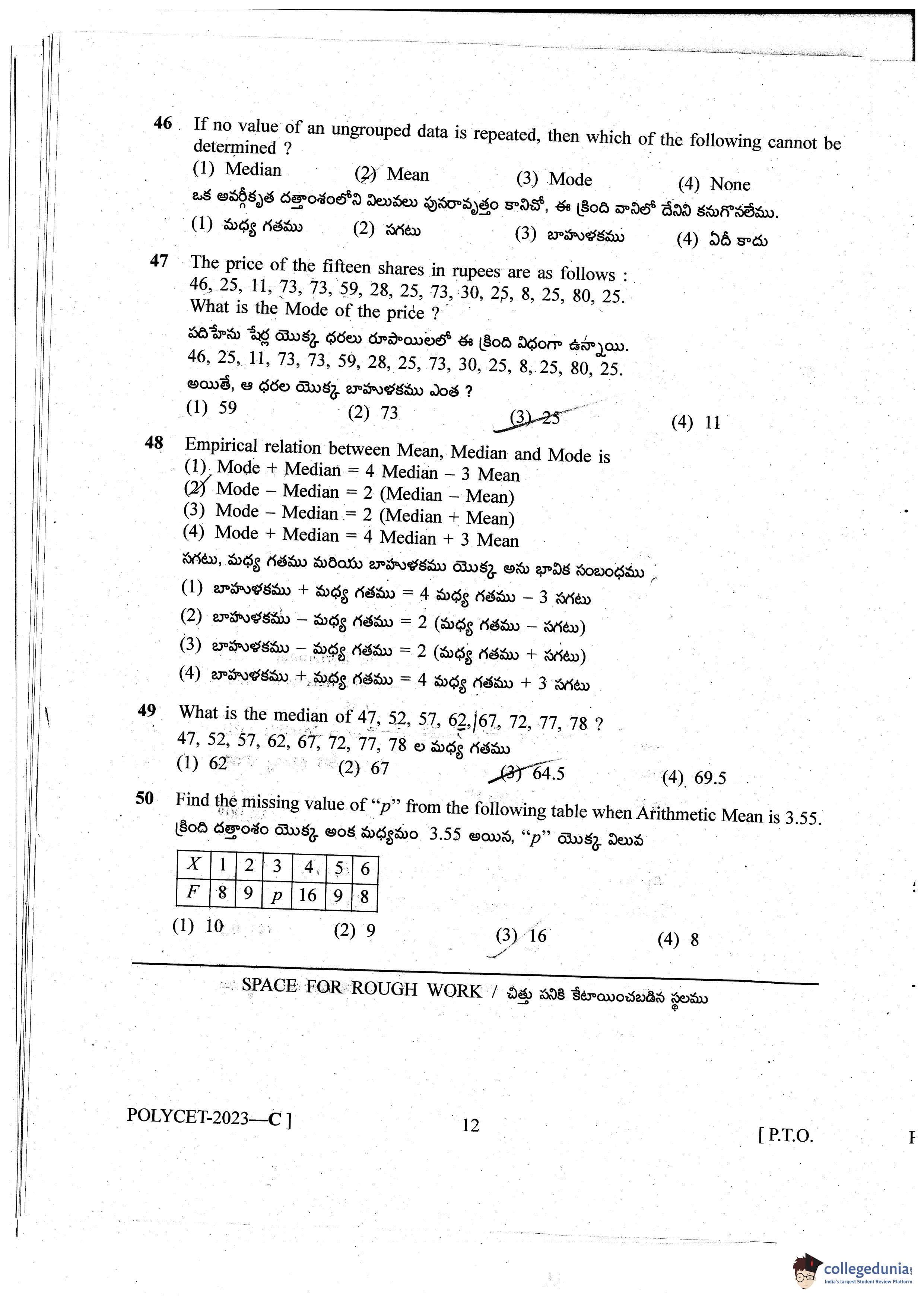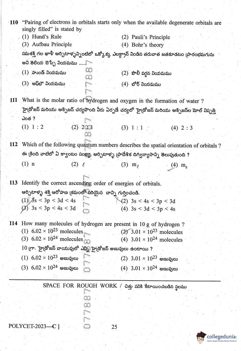 TS POLYCET 2023 Question Paper with Answer Key PDF Set C