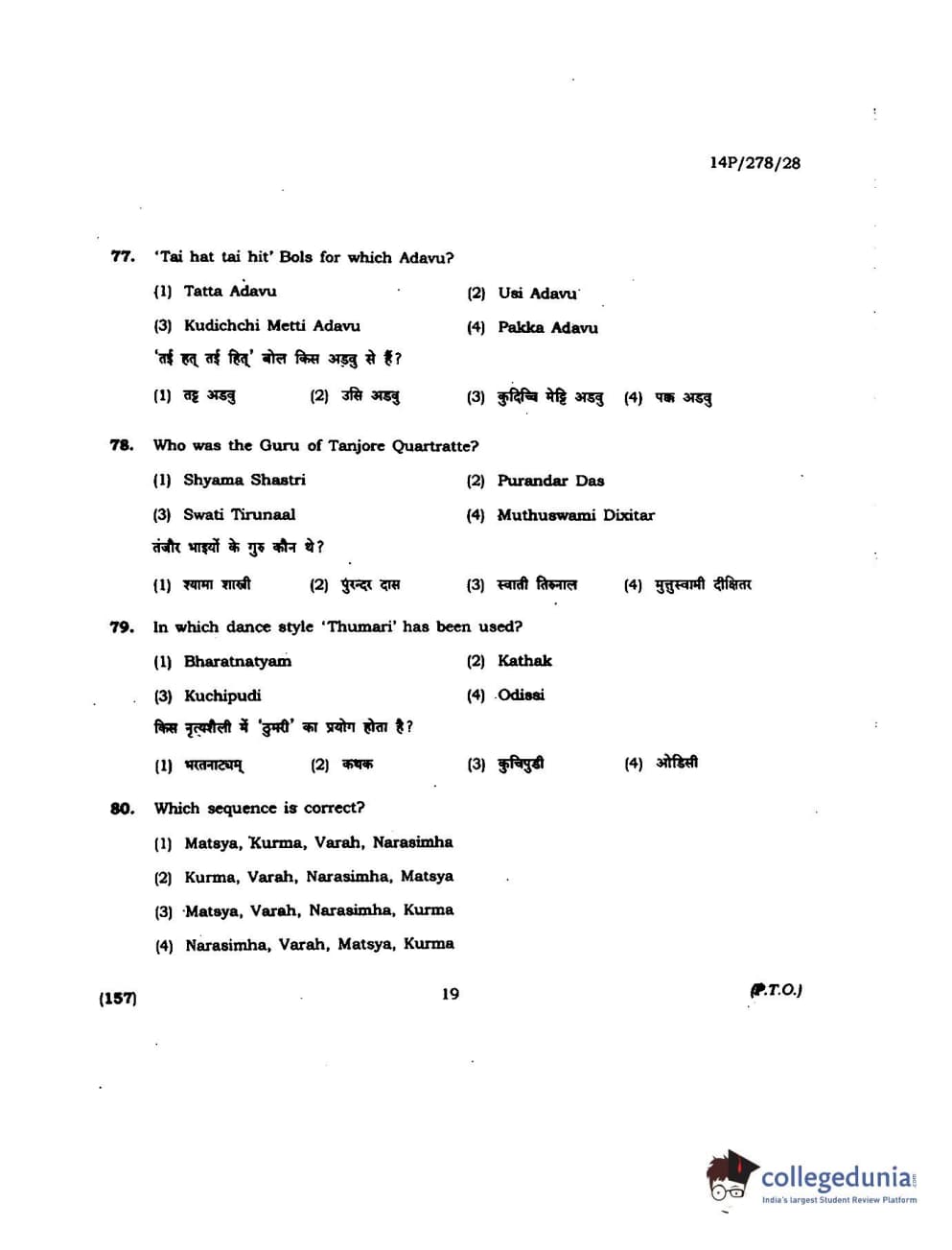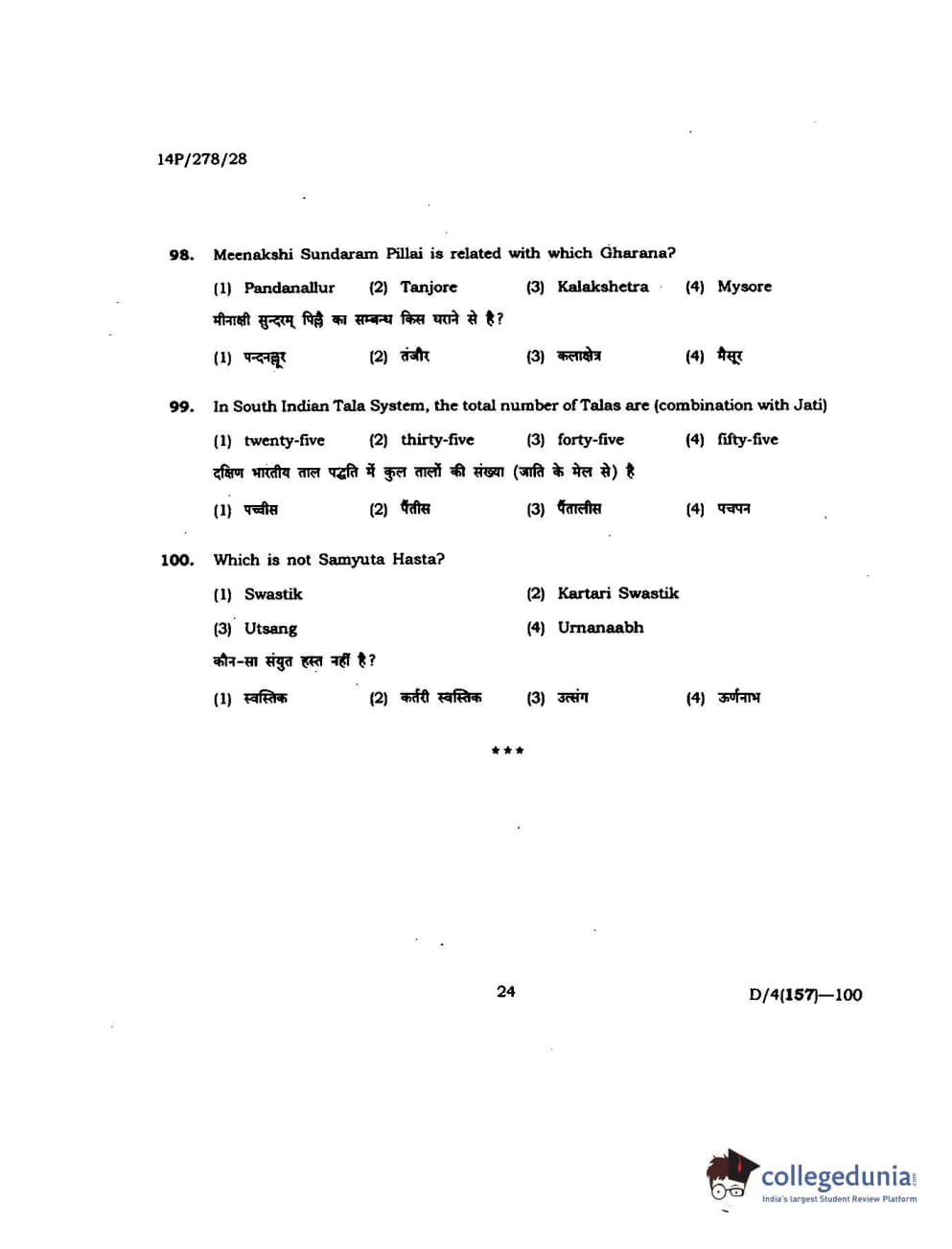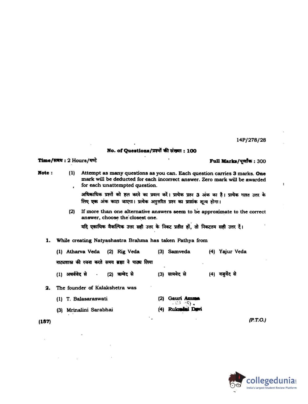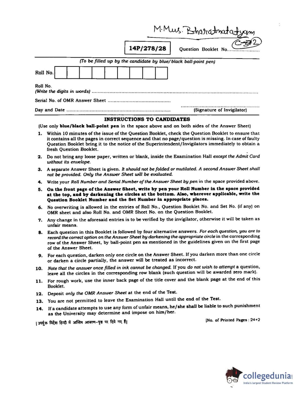 BHU PET 2014 M.Mus. Bharatnatyam Question paper with answer key pdf is available for download. The exam was successfully organized by Banaras Hindu University (BHU). The question paper comprised a total of 100 questions.