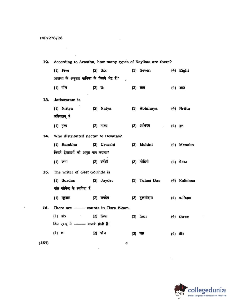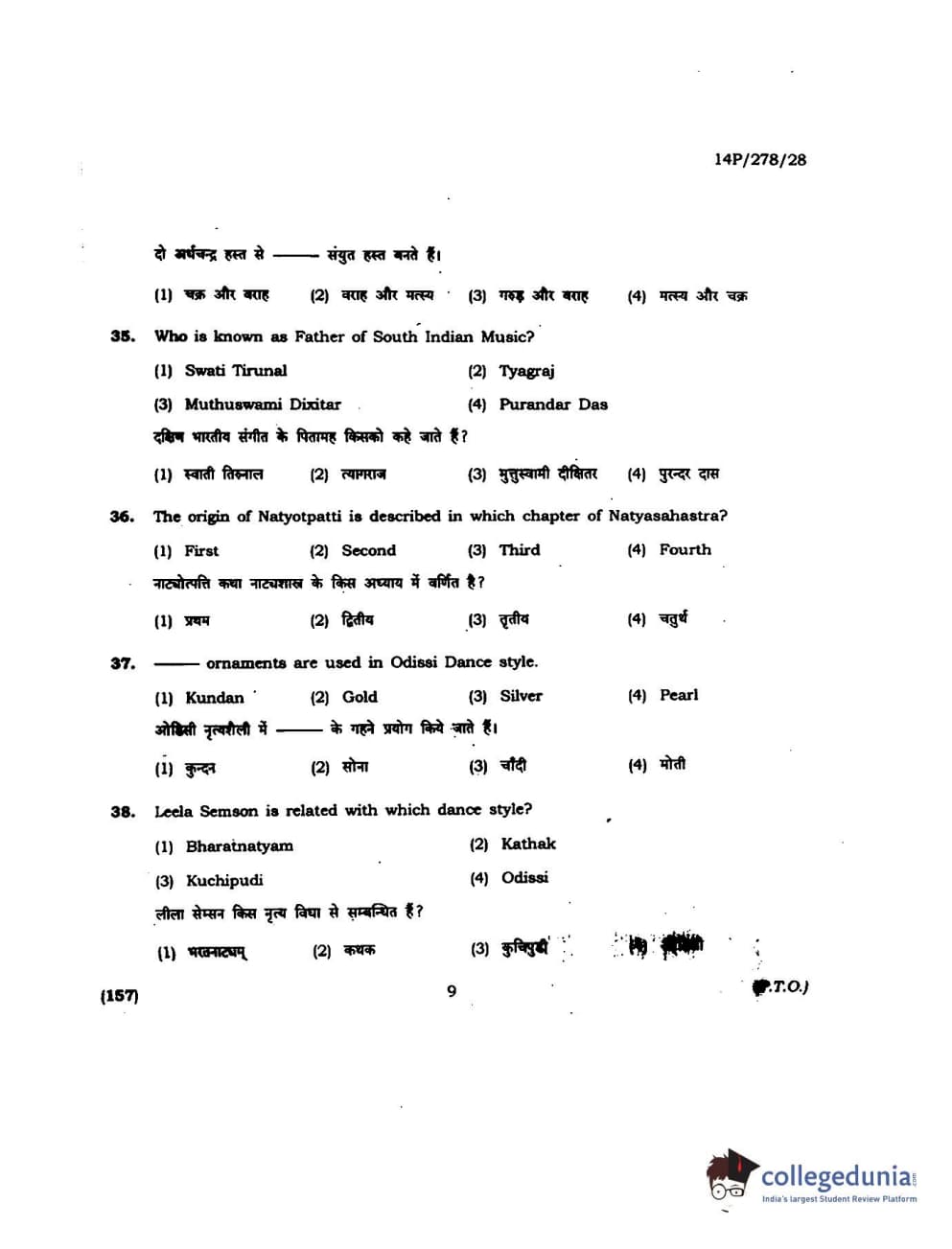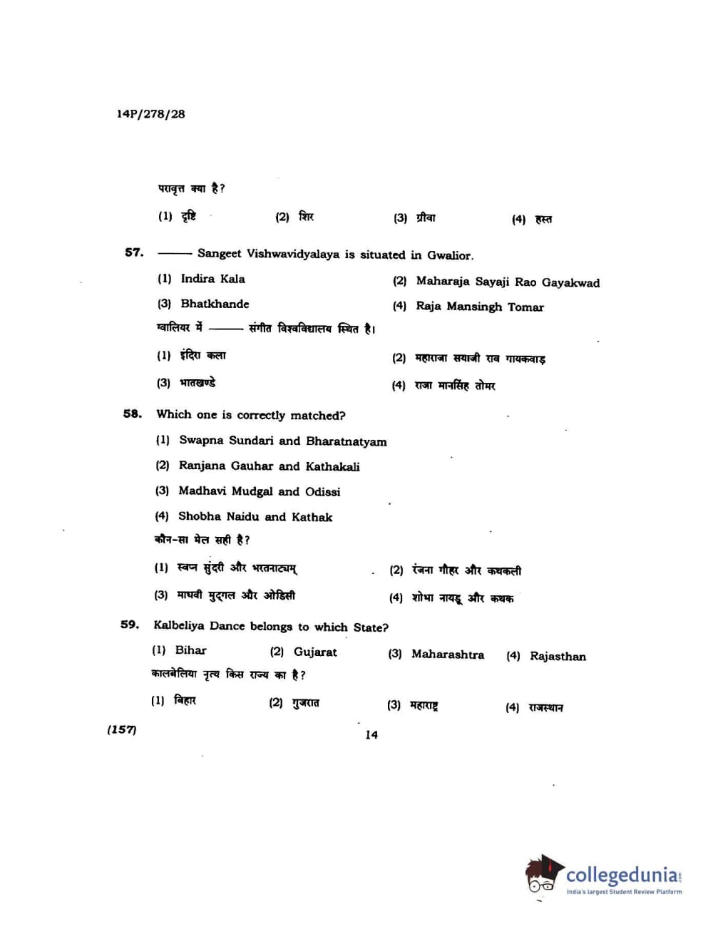 BHU PET 2014 M.Mus. Bharatnatyam Question Paper with Answer Key PDFs