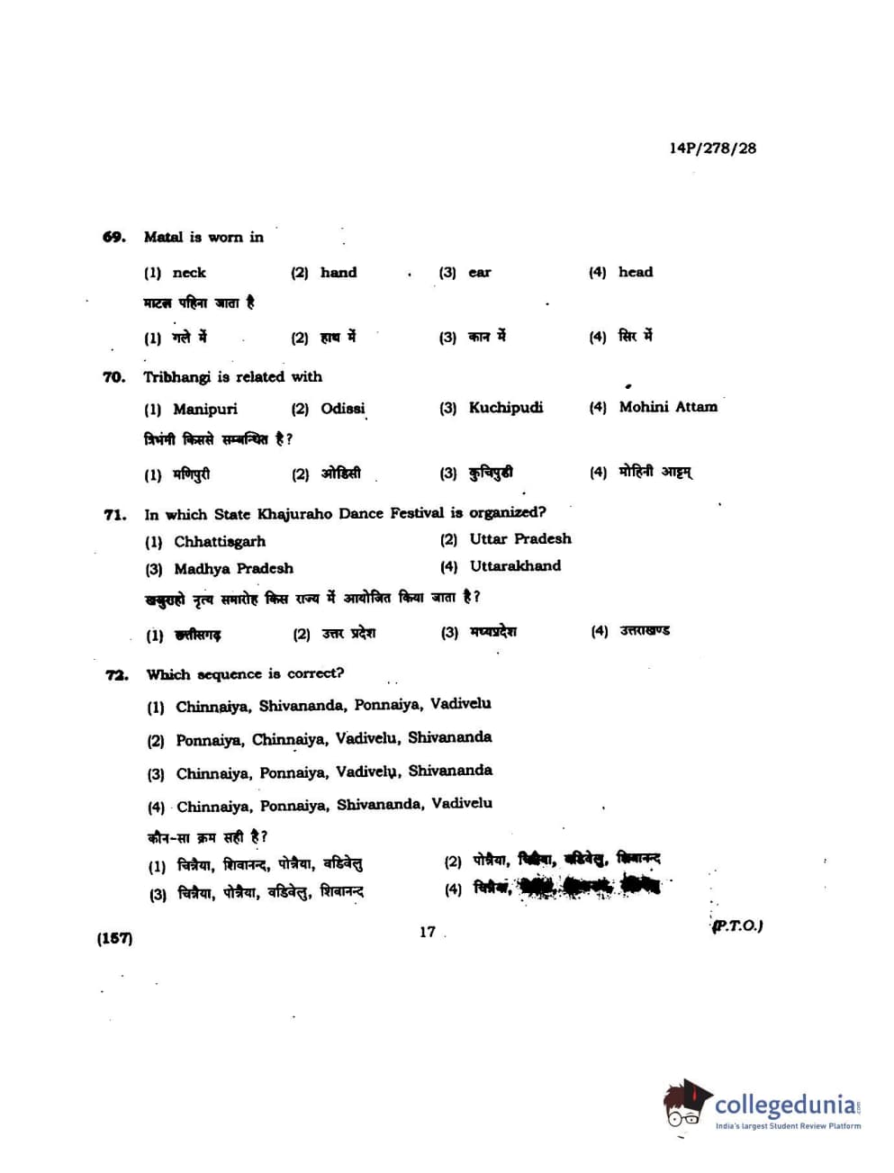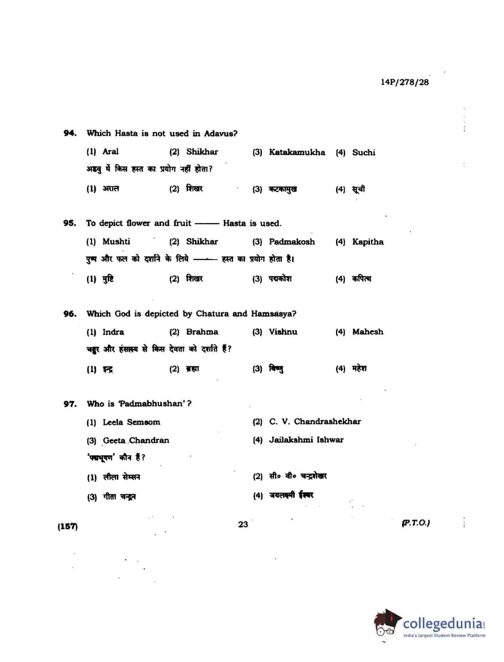 | BHU PET 2014 M.Mus. Bharatnatyam Question Paper PDF | BHU PET 2014 M.Mus. Bharatnatyam Answer Key PDF |
