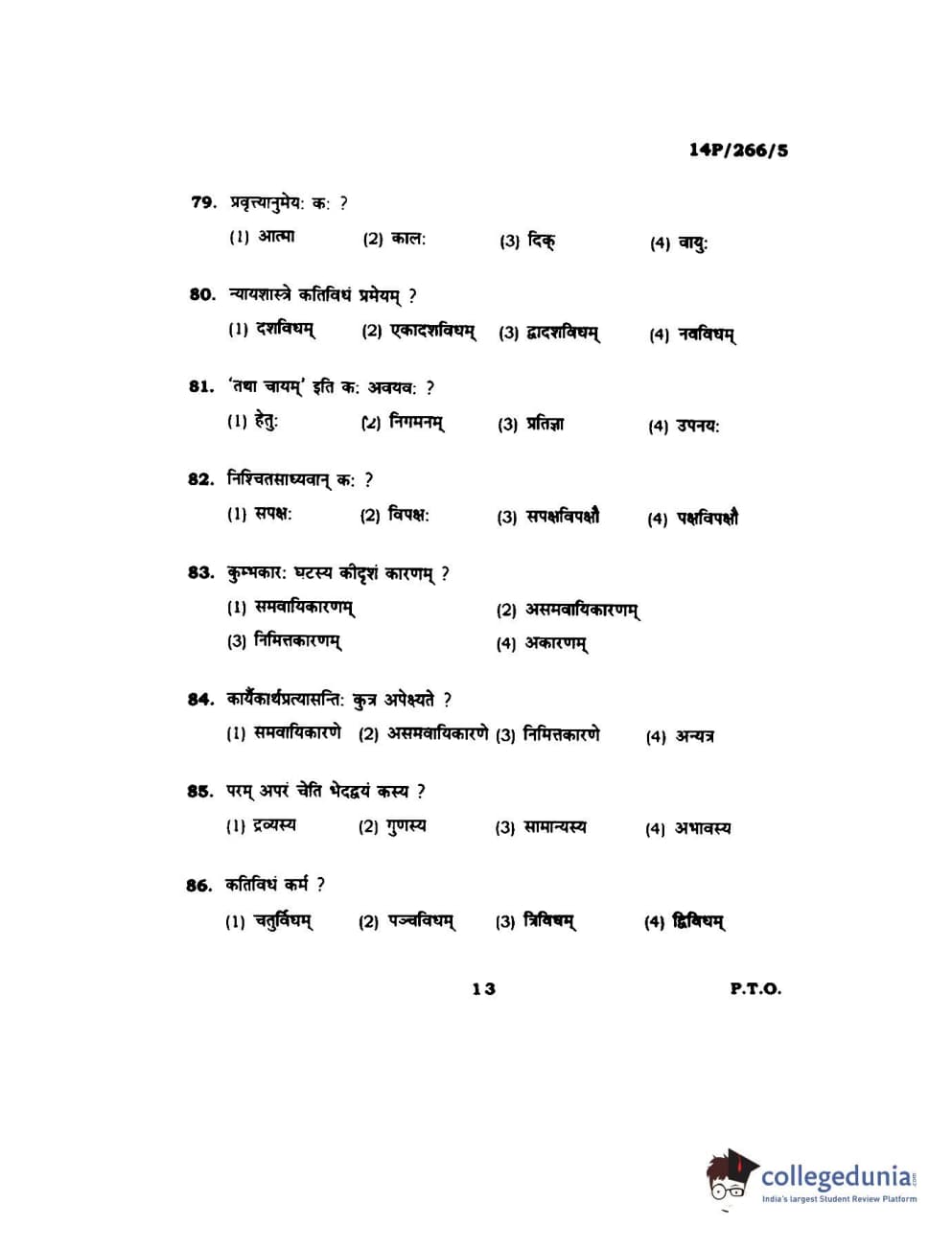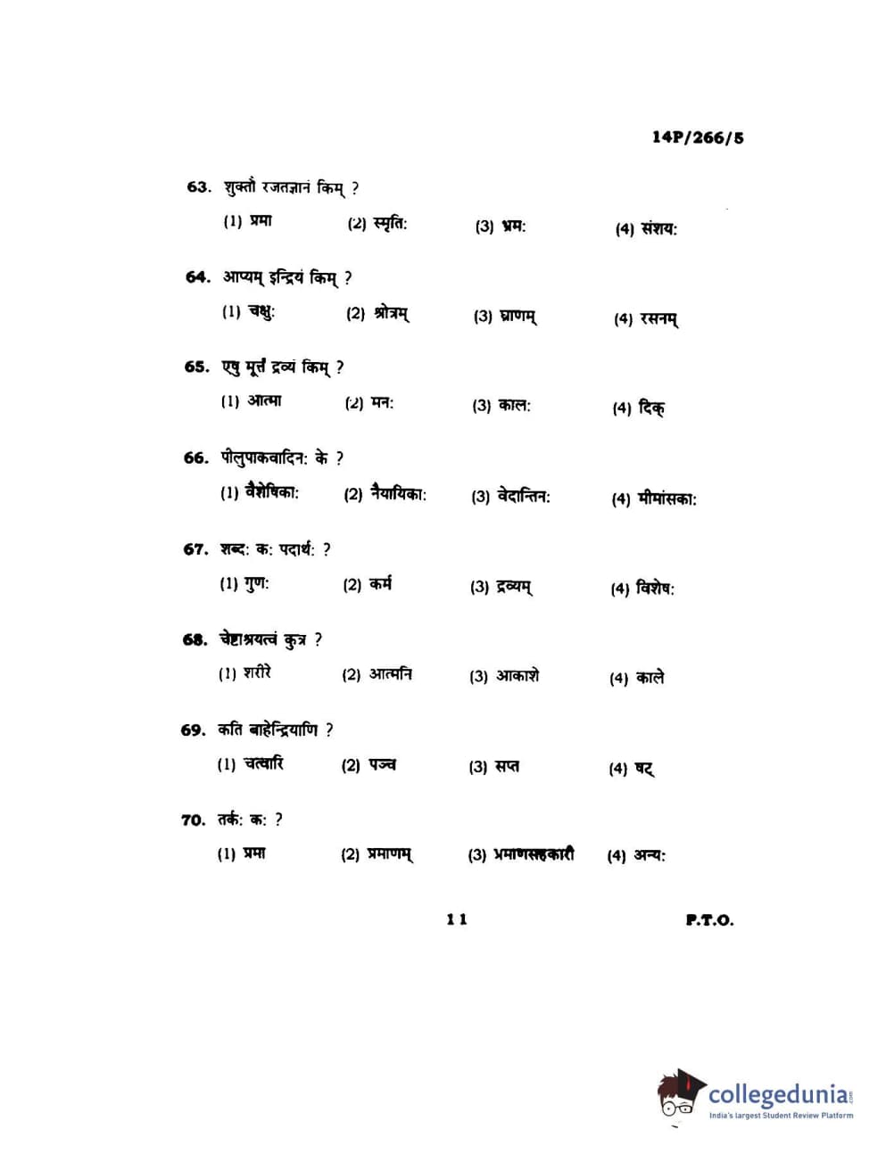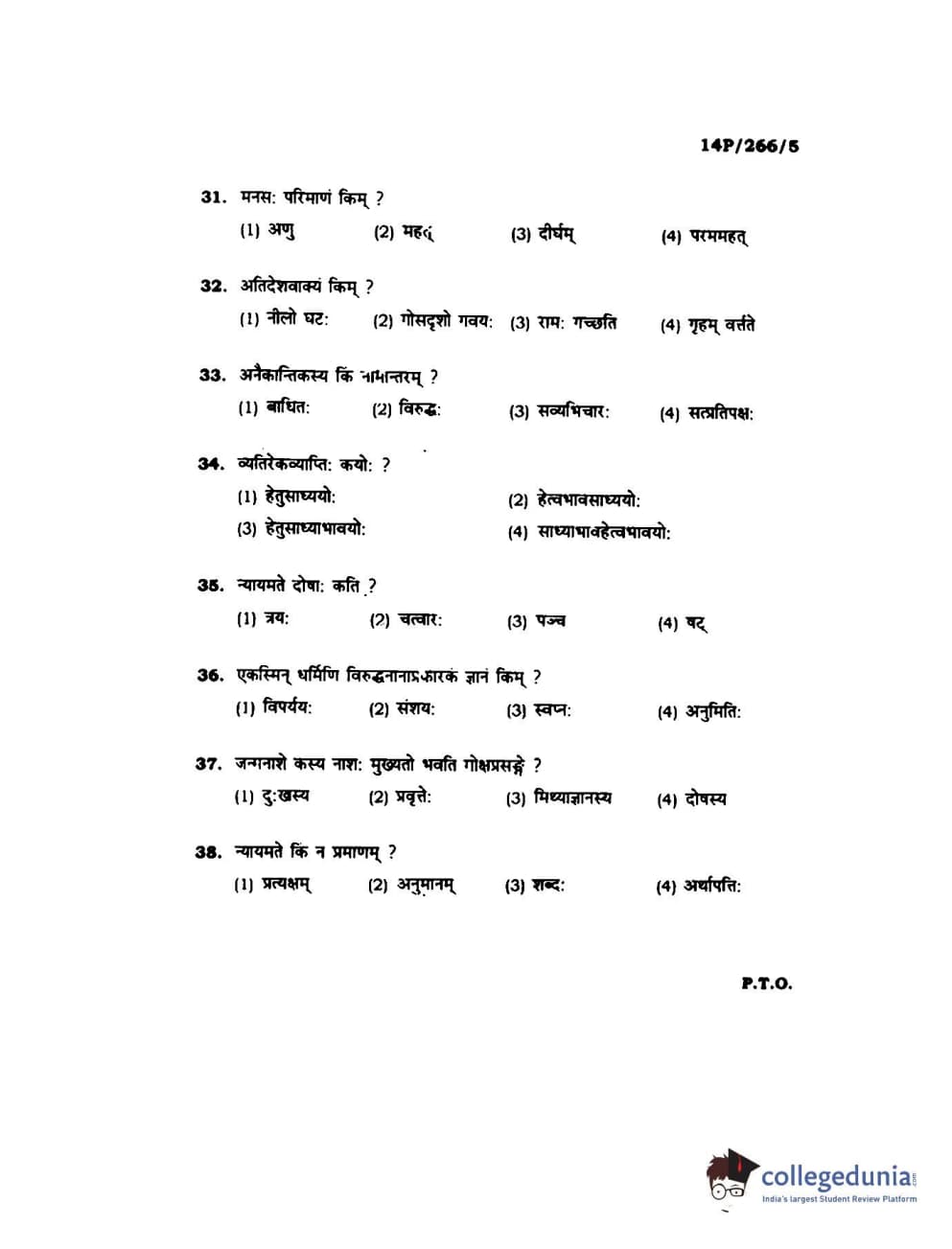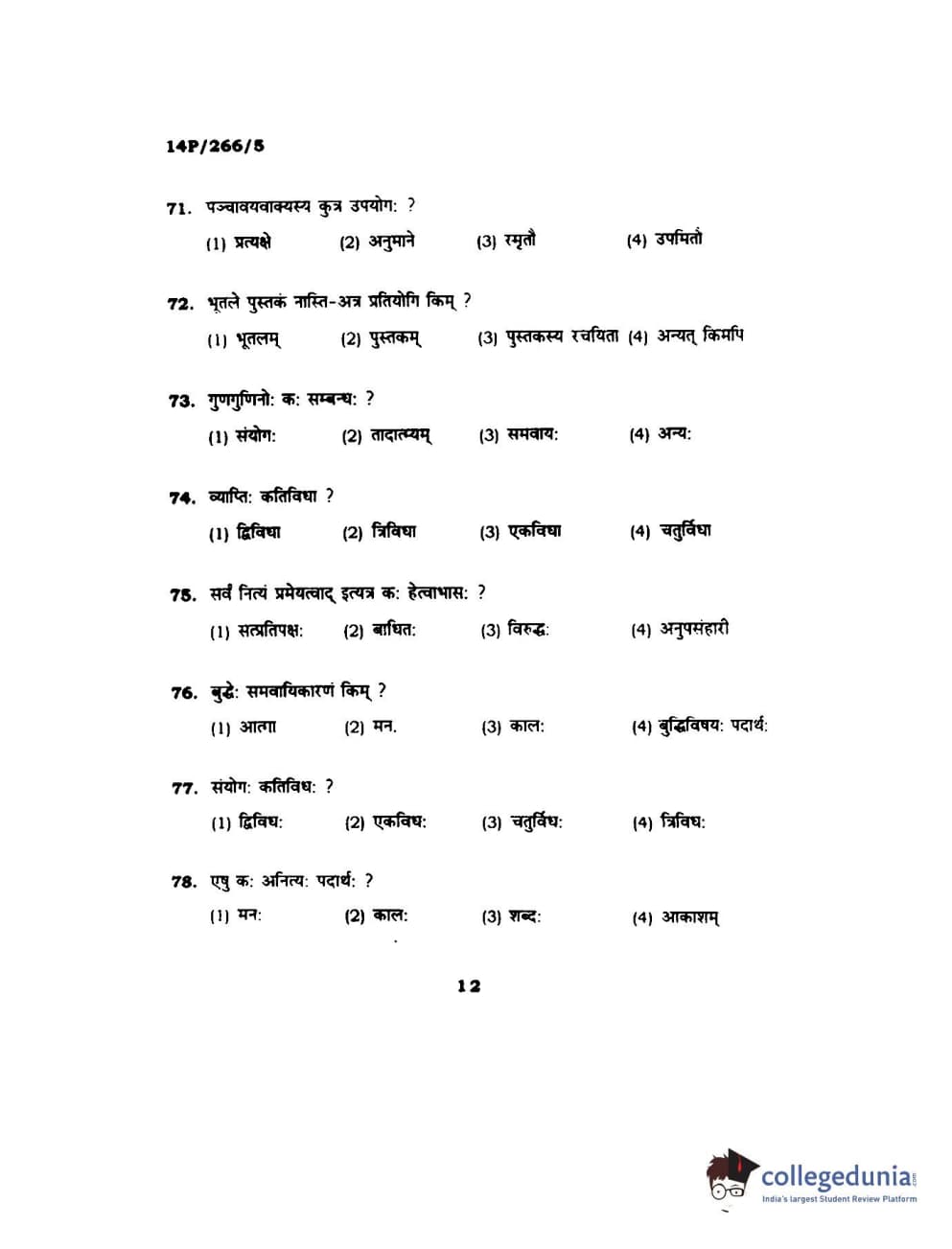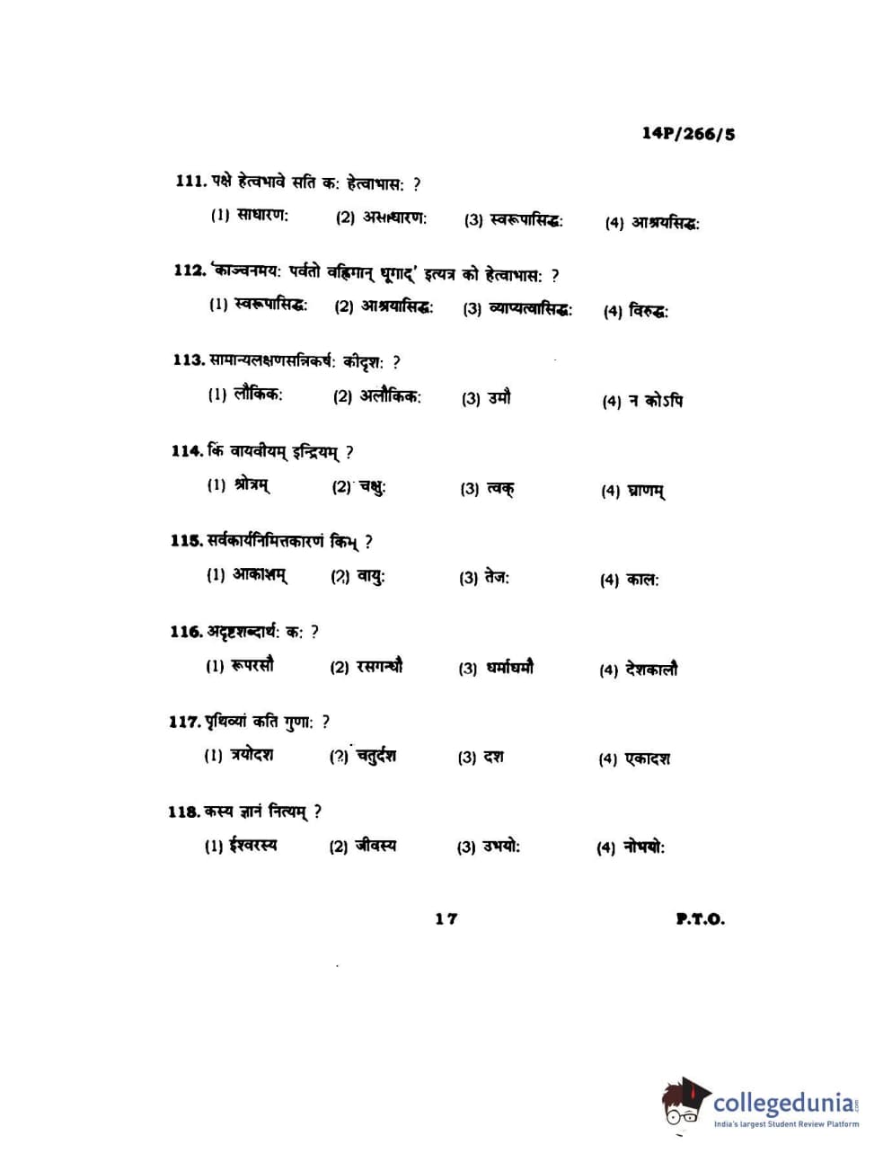 BHU PET 2014 Nyay Vaisheshik Question Paper with Answer Key PDFs