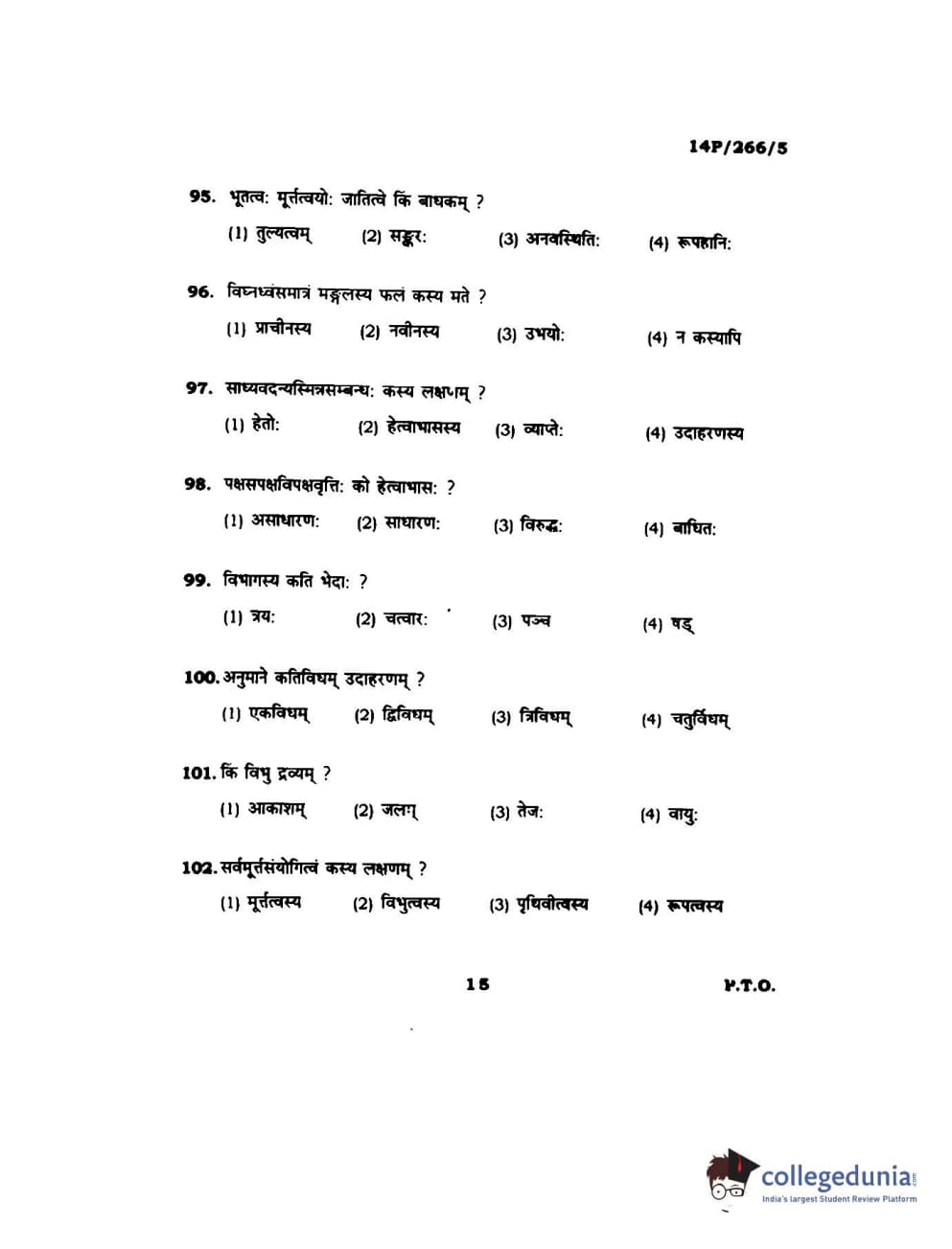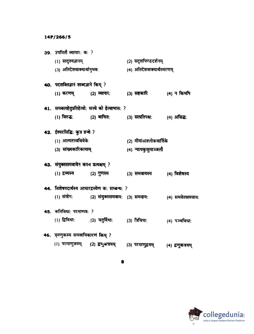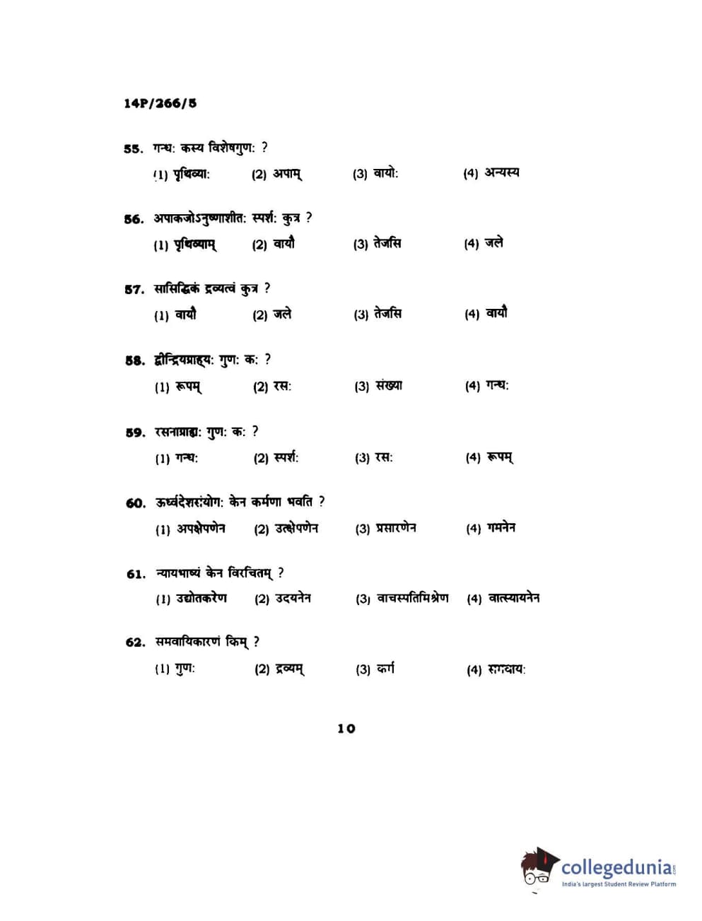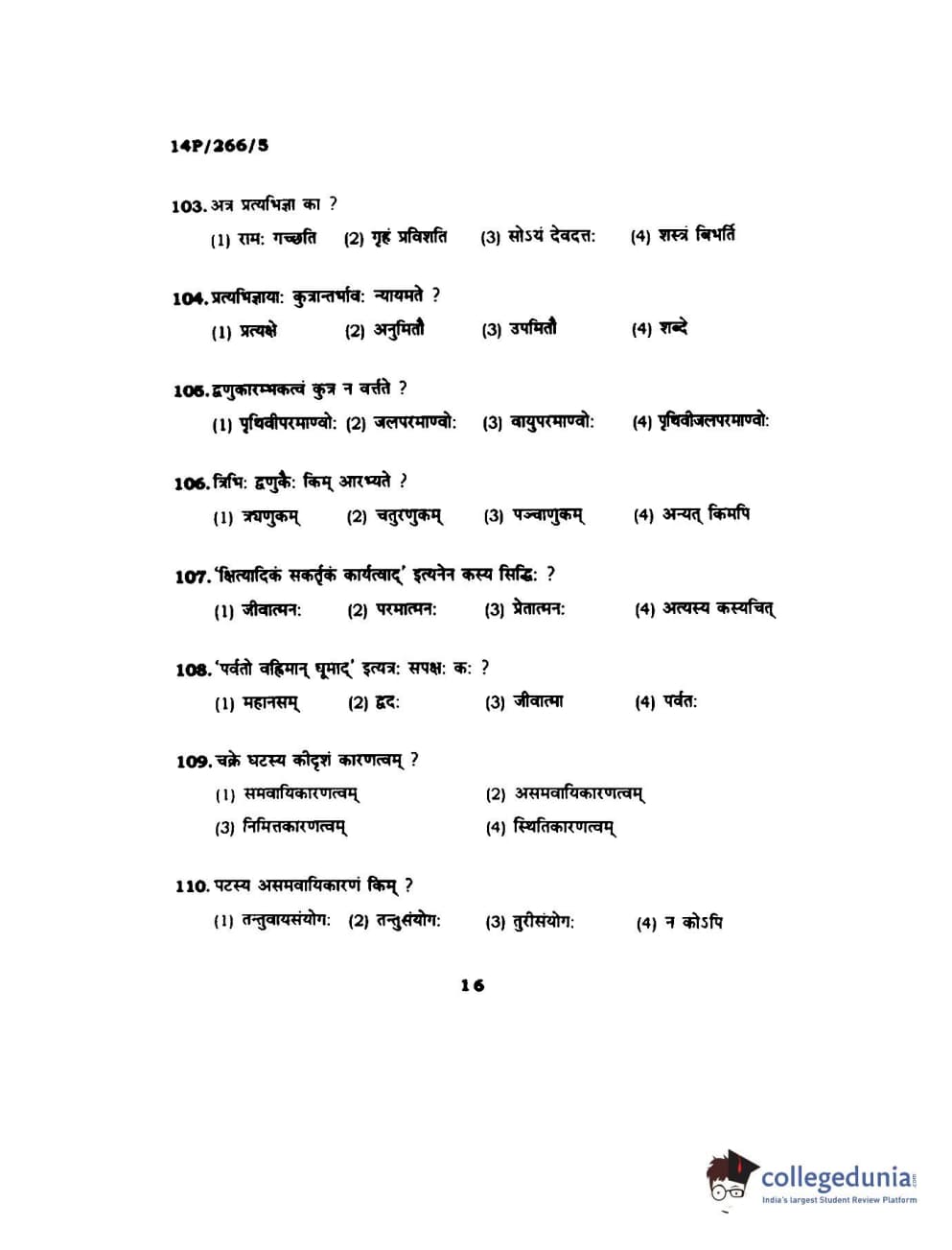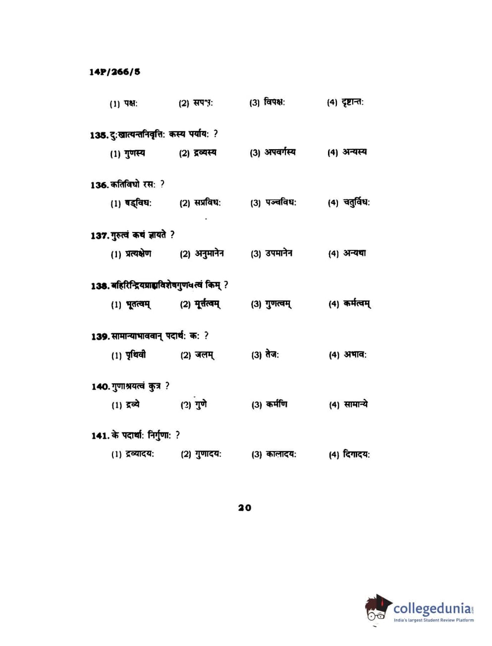 BHU PET 2014 Nyay Vaisheshik Question Paper with Answer Key PDFs