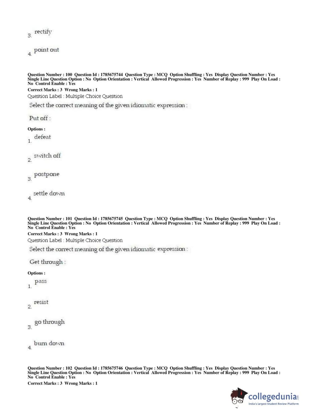 | BHU PET 2019 COMMON ENTRANCE TEST 5 Question Paper PDF | BHU PET 2019 COMMON ENTRANCE TEST 5 Answer Key PDF |