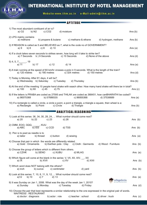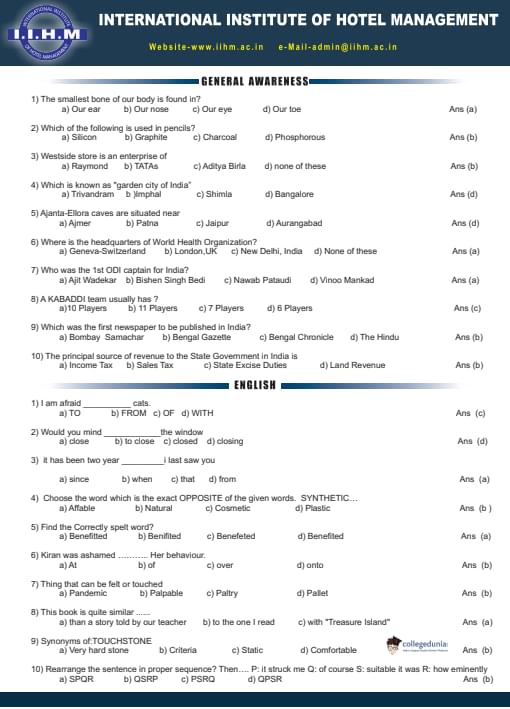 IIHM ECHAT 2018 Question paper with answer key pdf conducted on May 15, 2018 is available for download. The exam was successfully organized by International Institute of Hotel Management.