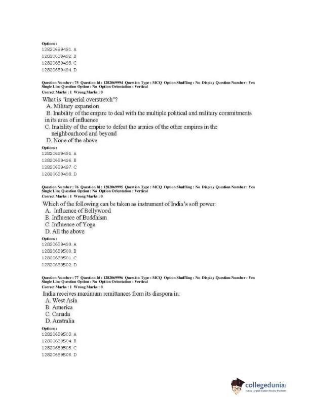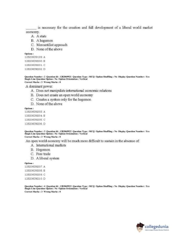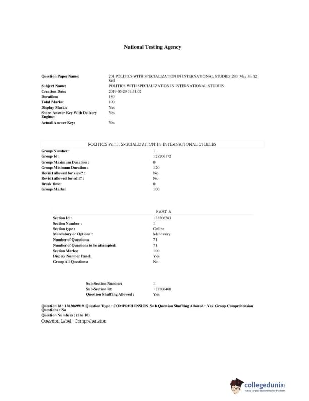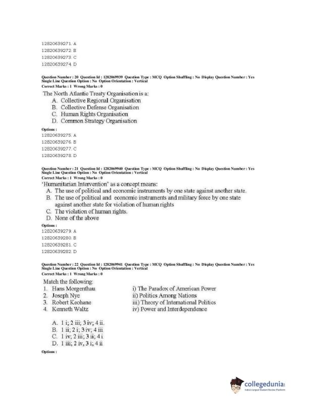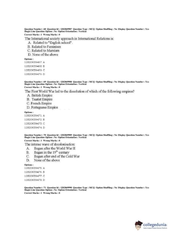 JNUEE 2019 M.A. Politics With Specialization In International Studies Question paper with answer key pdf conducted on May 29, 2019 is available for download. The exam was successfully organized by National Testing Agency (NTA). The question paper comprised a total of 80 questions.