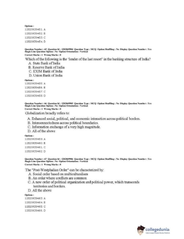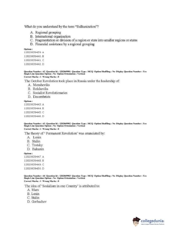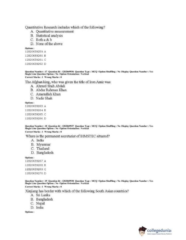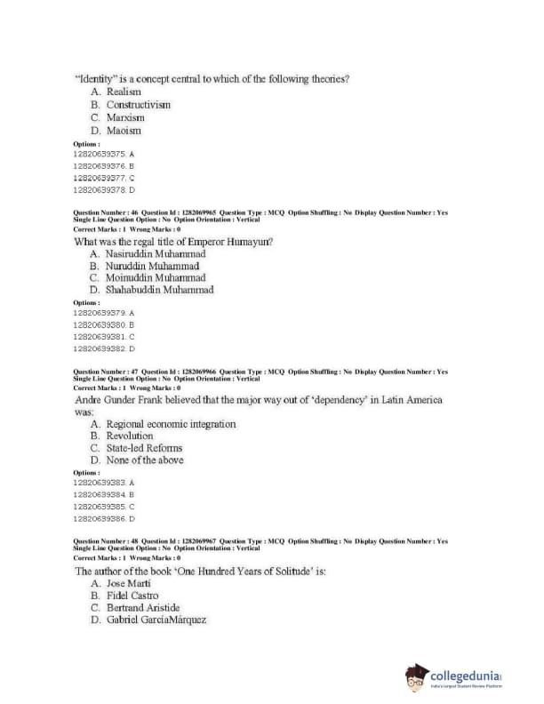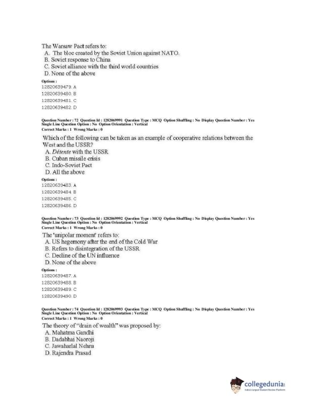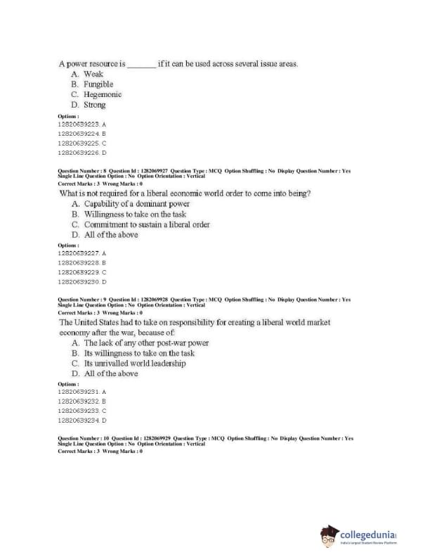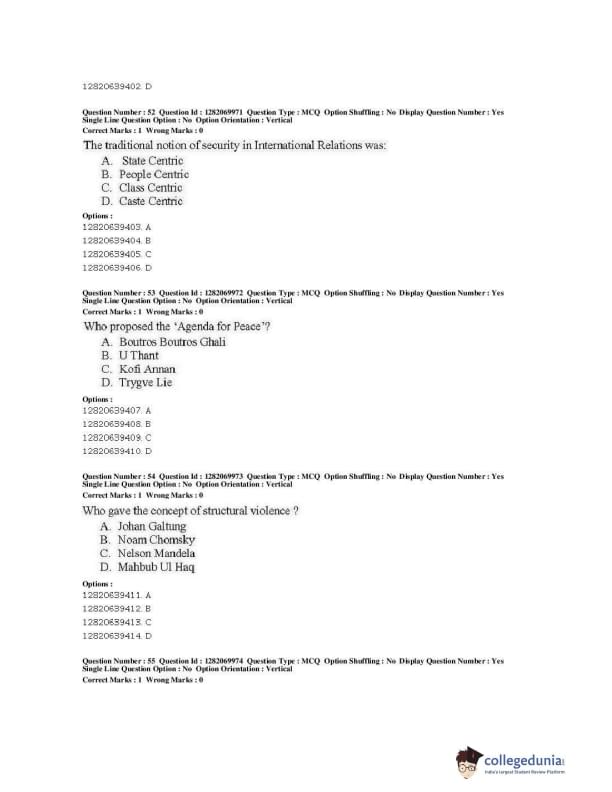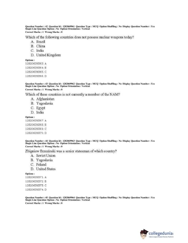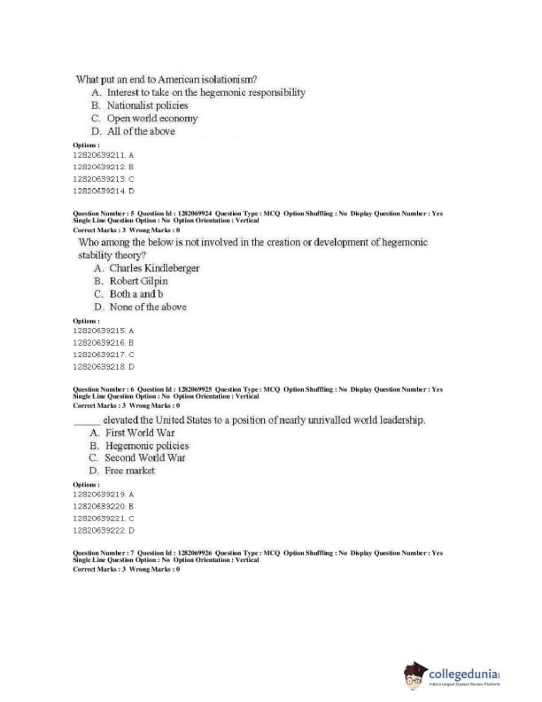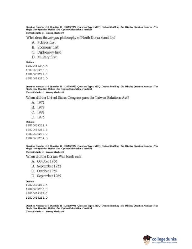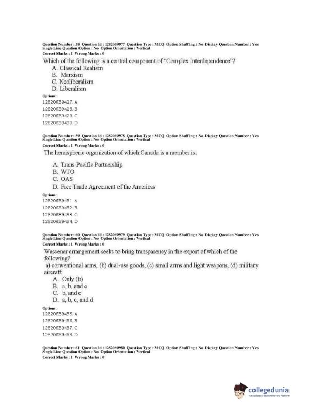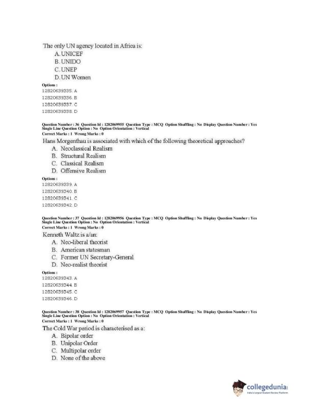 | JNUEE 2019 M.A. Politics With Specialization In International Studies Question Paper PDF | JNUEE 2019 M.A. Politics With Specialization In International Studies Answer Key PDF |
