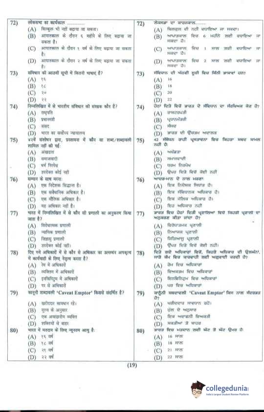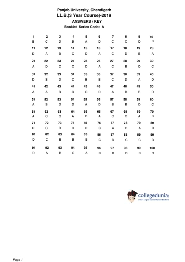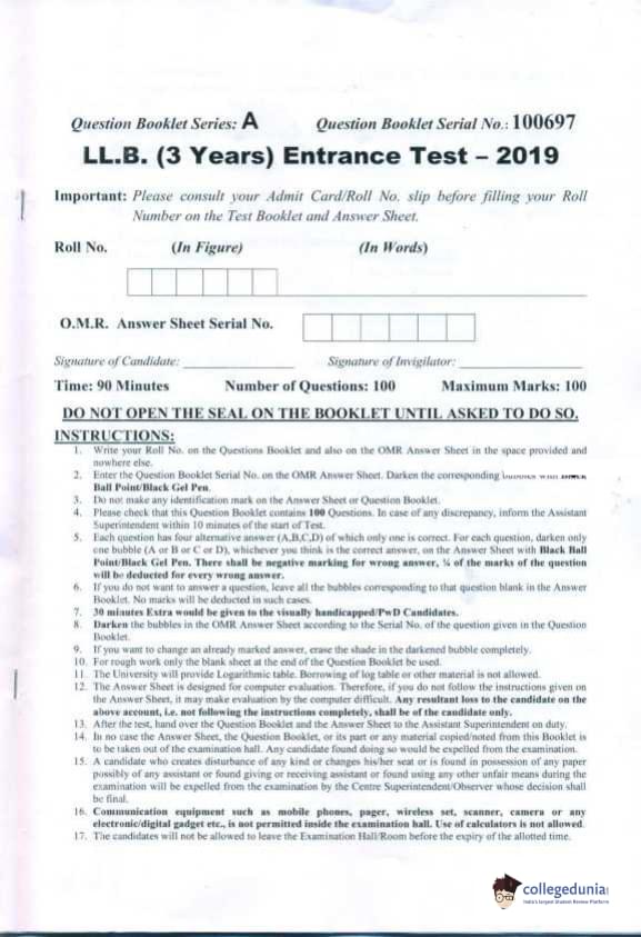 | PU LLB 2019 Question Paper PDF | PU LLB 2019 Answer Key PDF |
