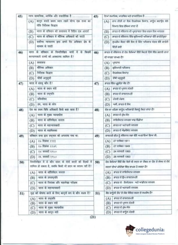| PU LLB 2021 Question Paper PDF | PU LLB 2021 Answer Key PDF |