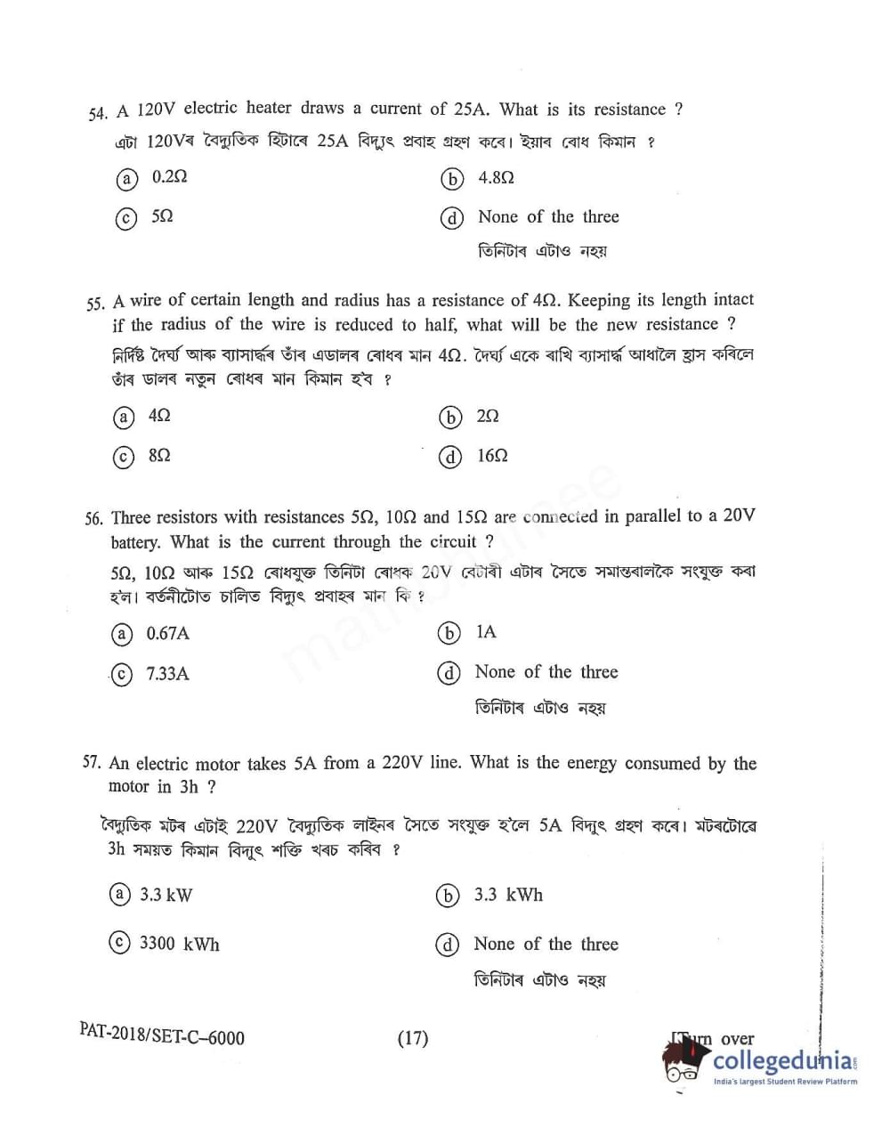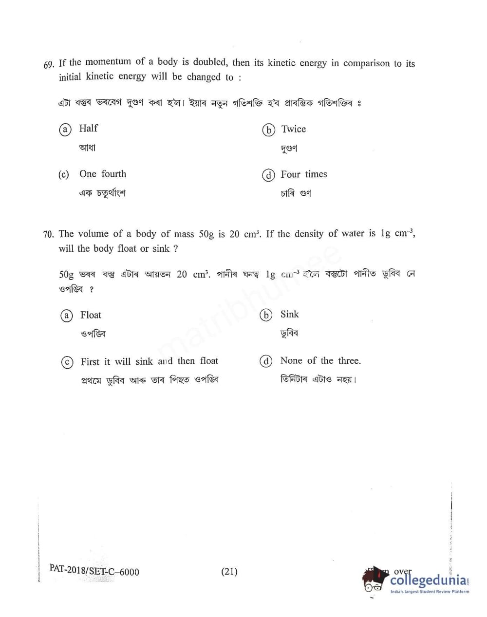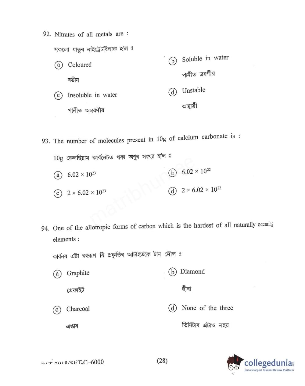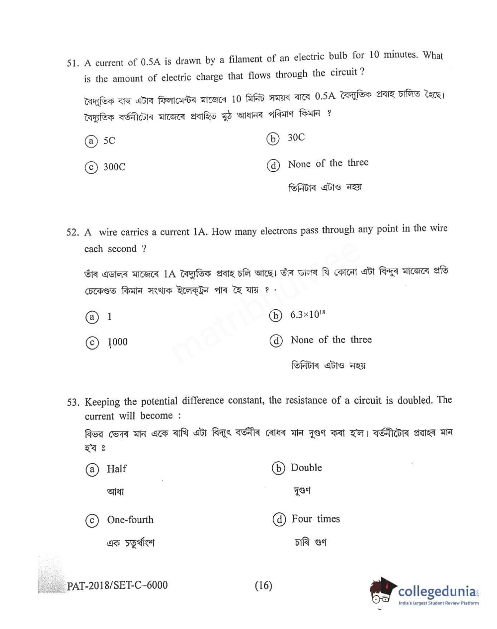 Assam PAT 2018 Question paper with answer key pdf conducted on May 20, 2018 for Set C is available for download. The exam was successfully organized by Directorate of Technical Education, Assam. The question paper comprised a total of 100 questions.