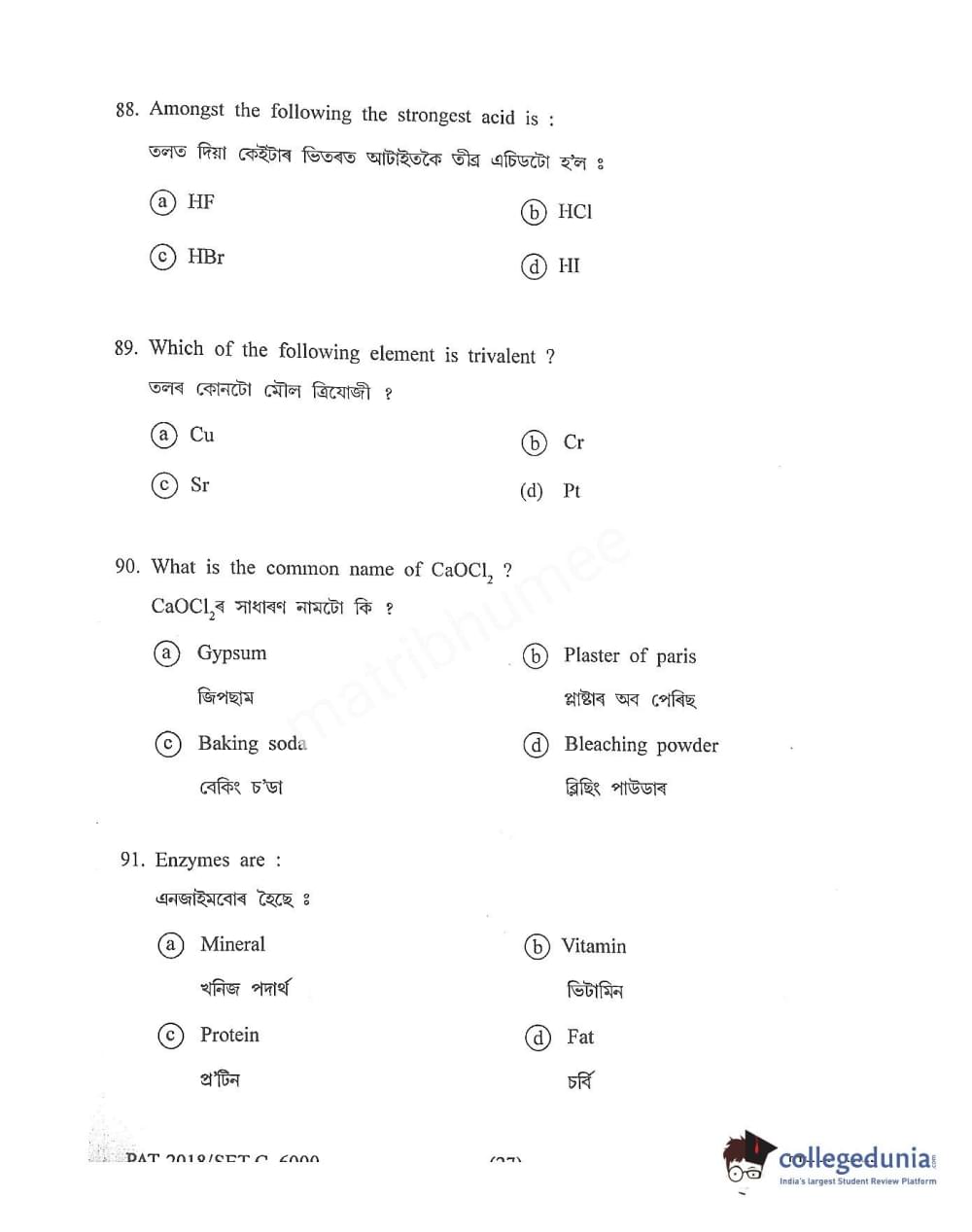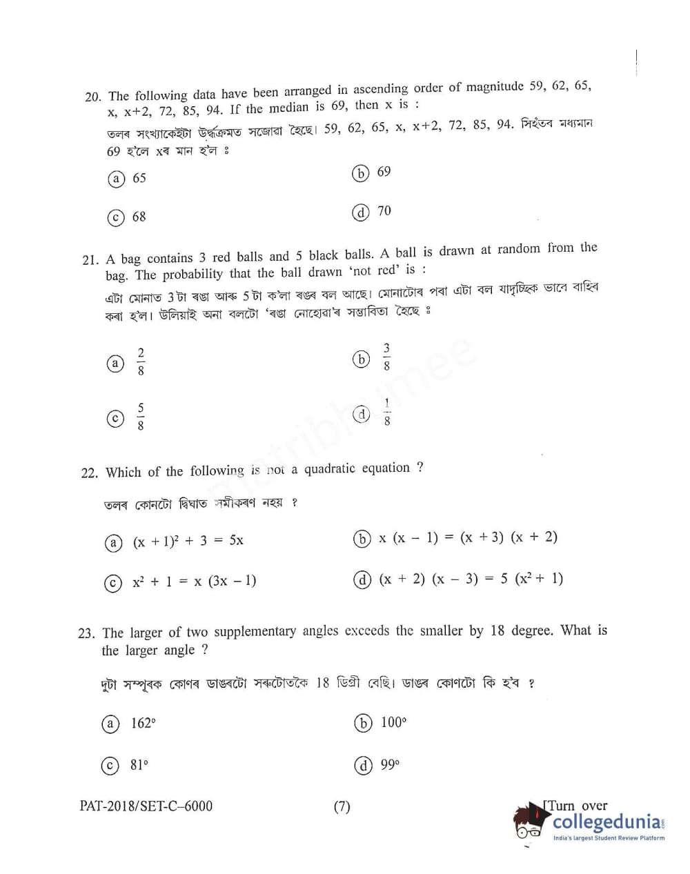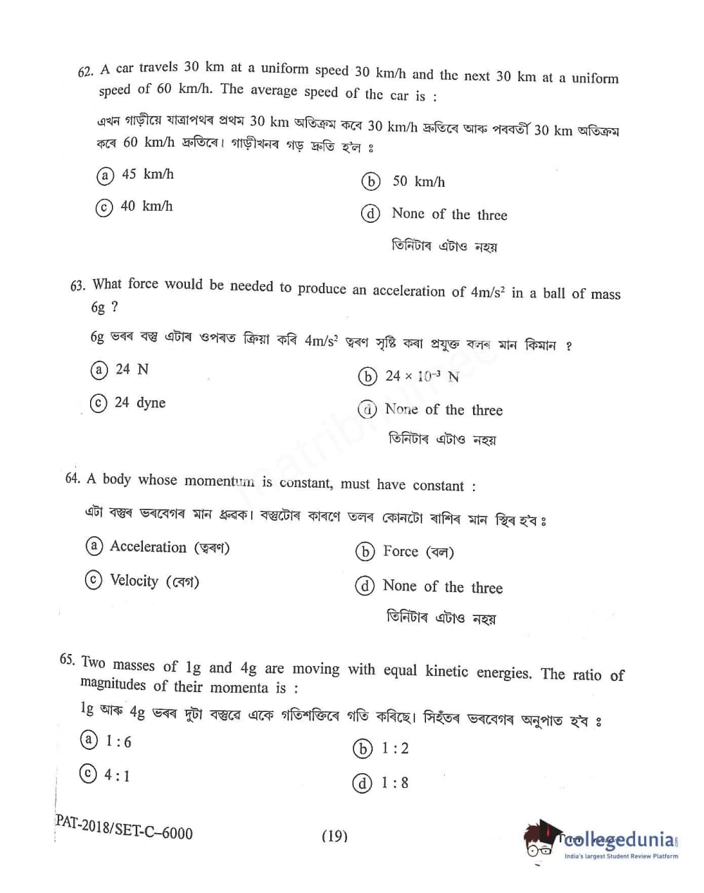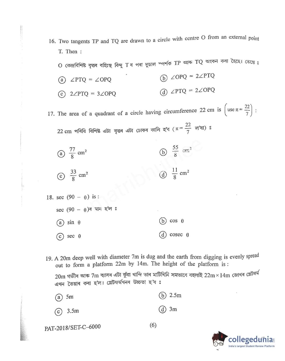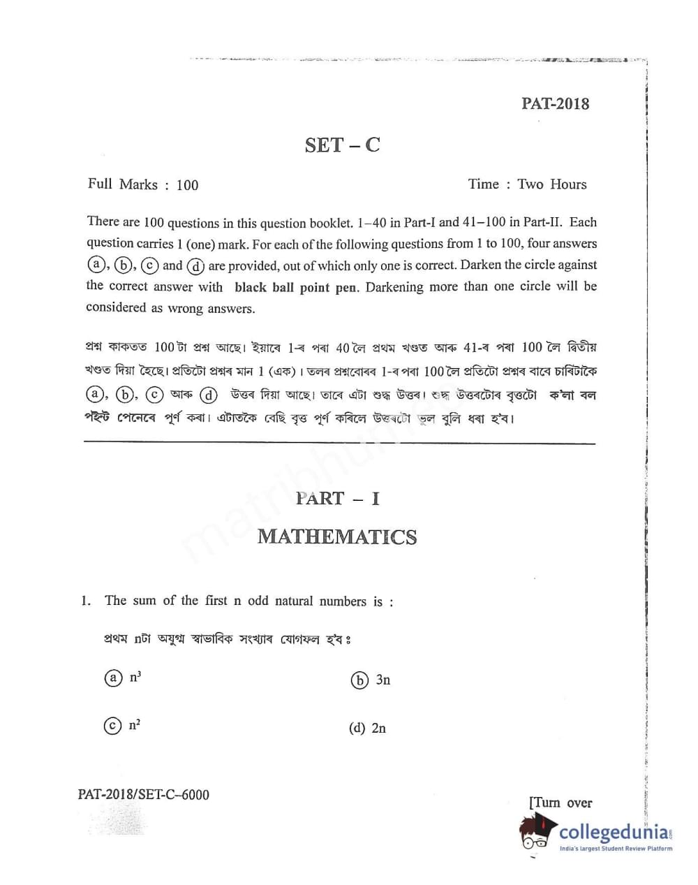 Assam PAT 2018 Question Paper with Answer Key PDFs