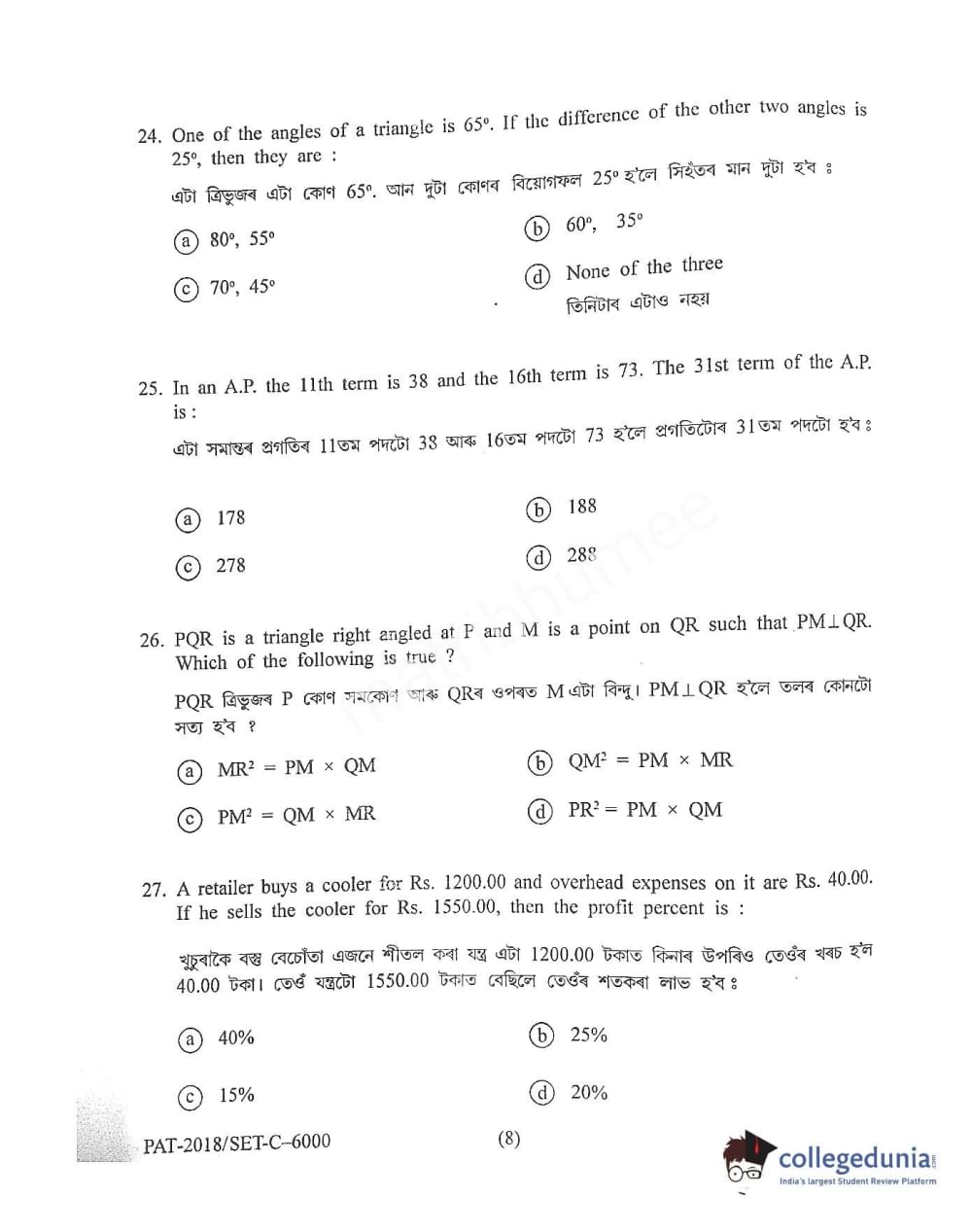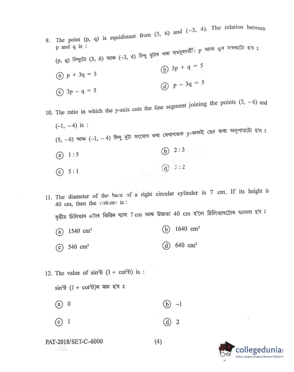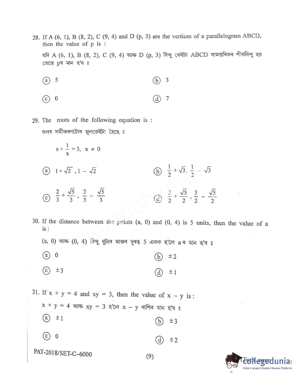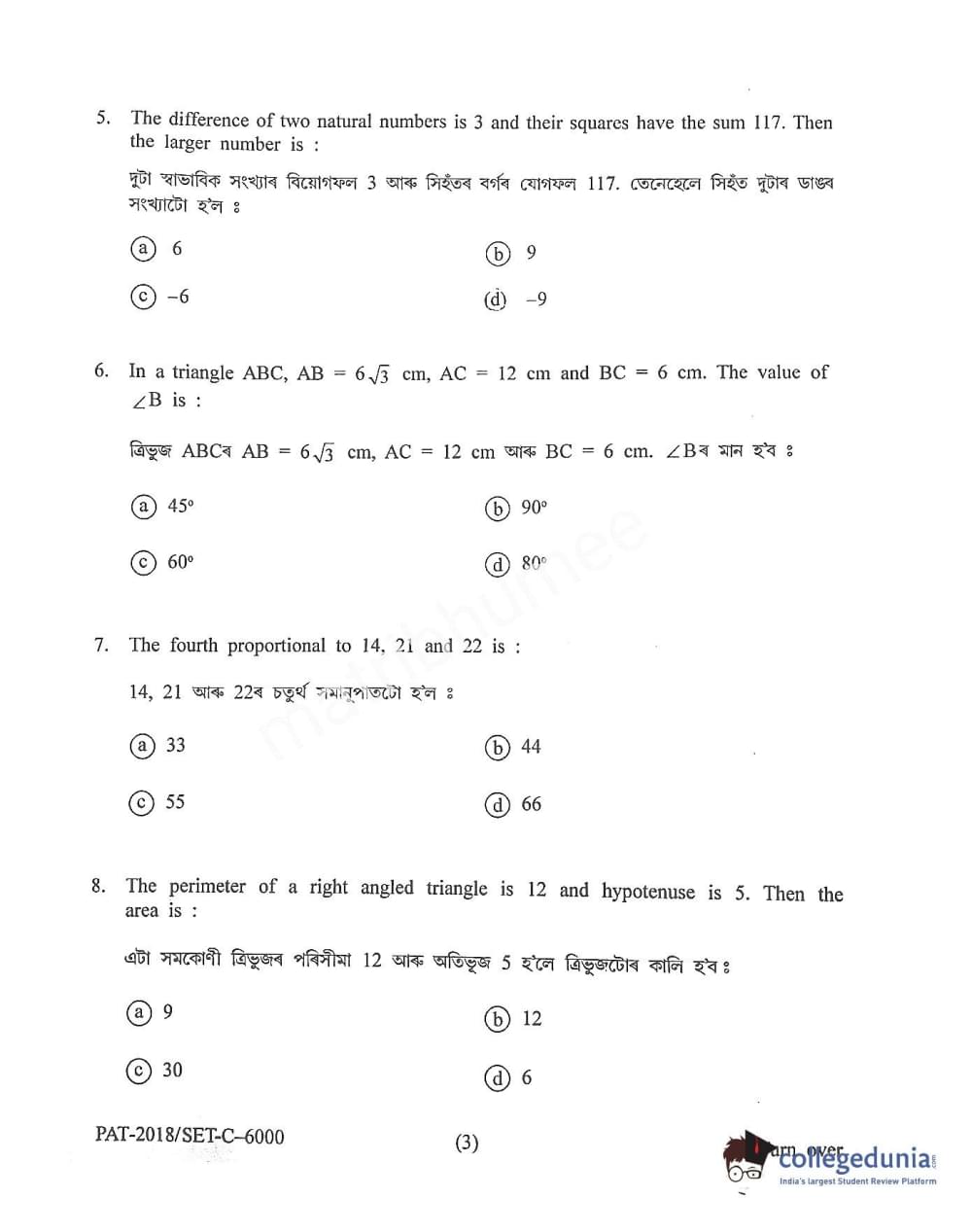 Assam PAT 2018 Question Paper with Answer Key PDFs