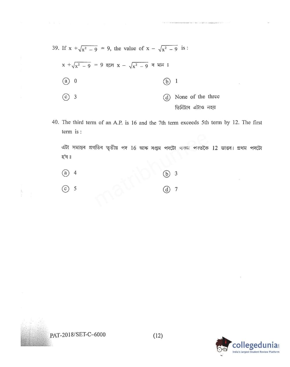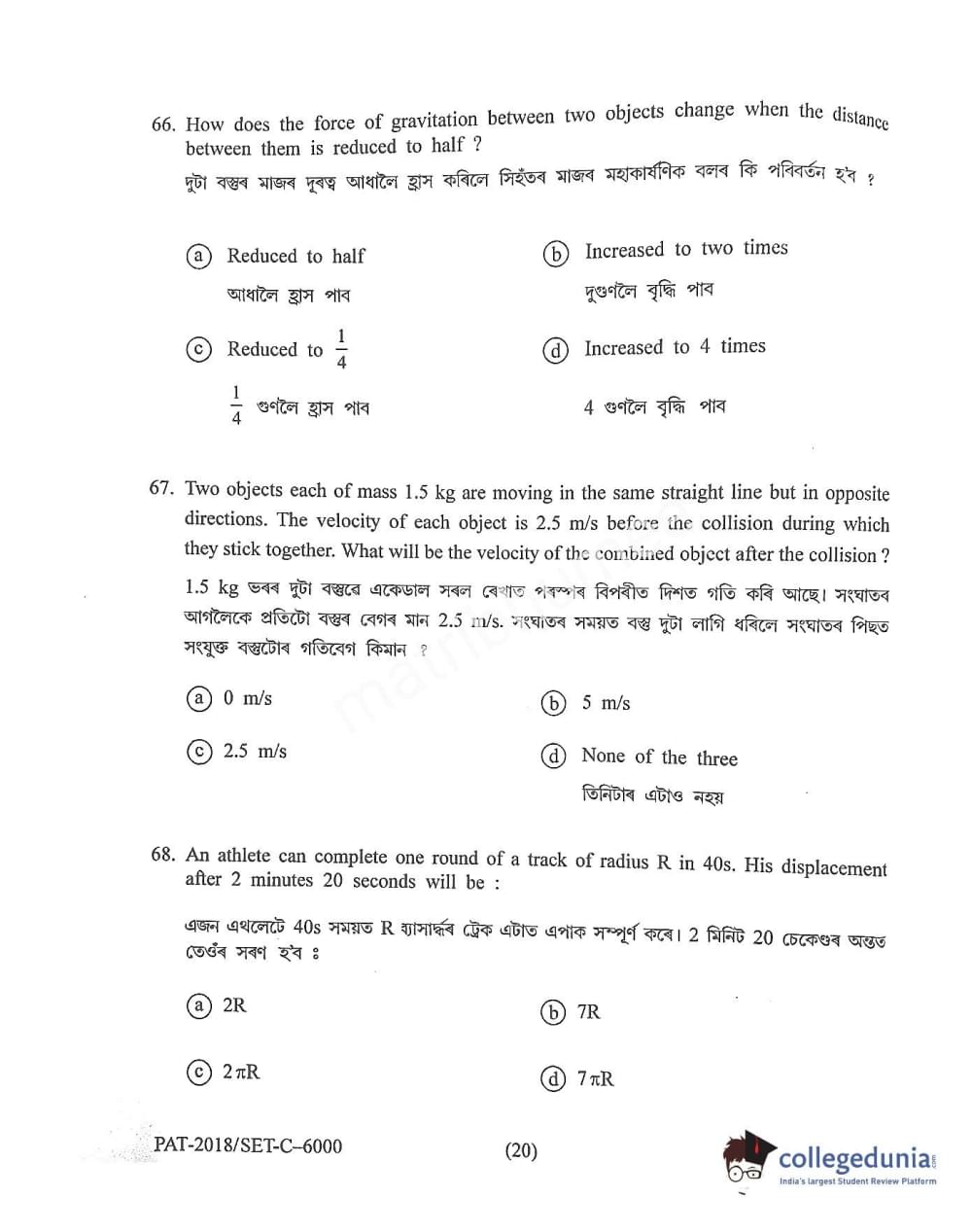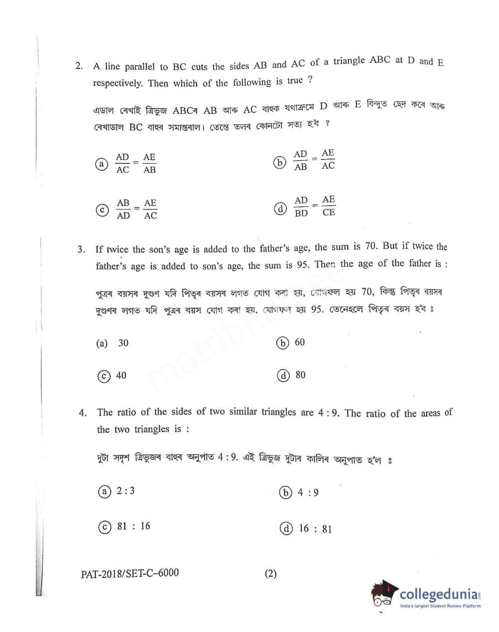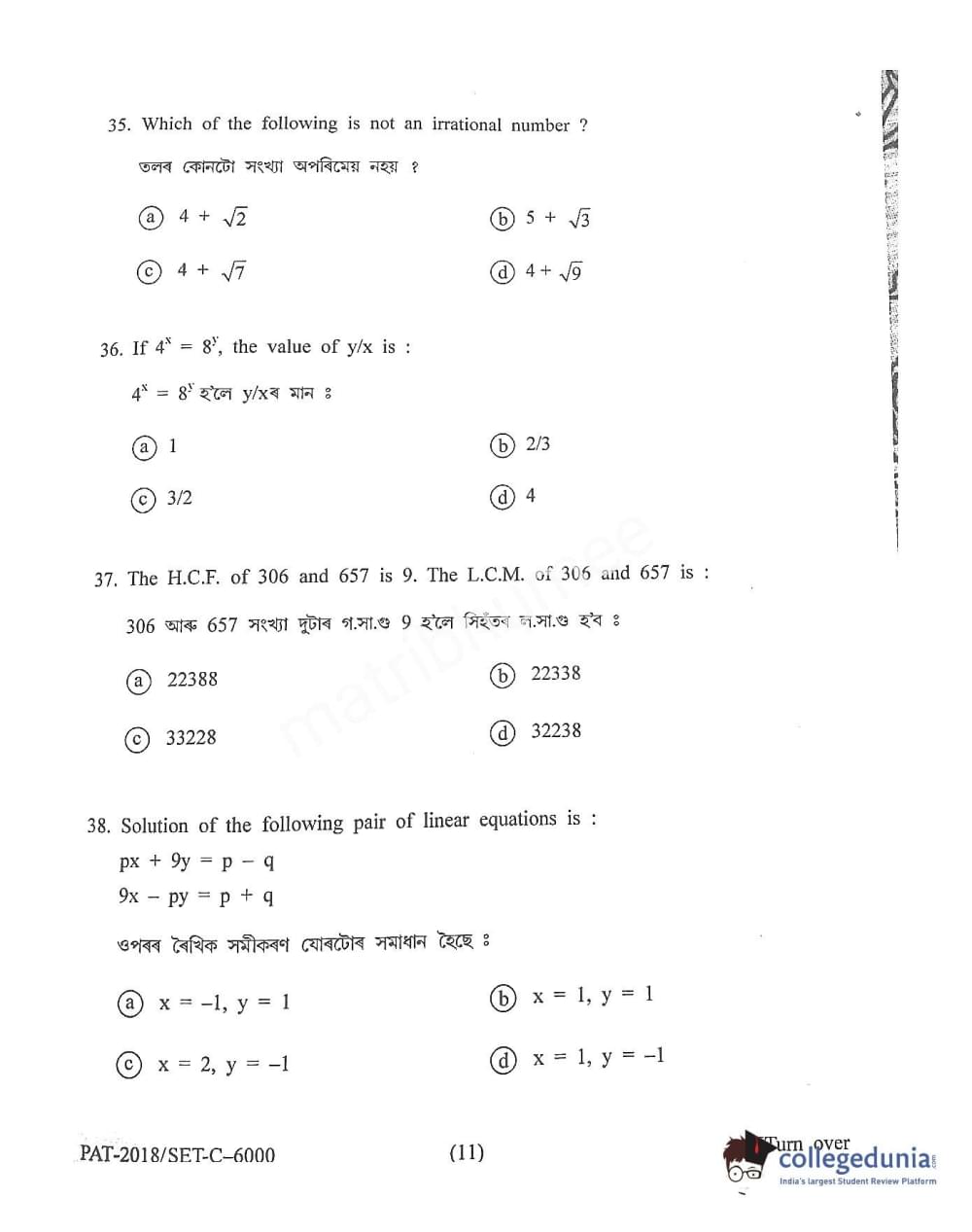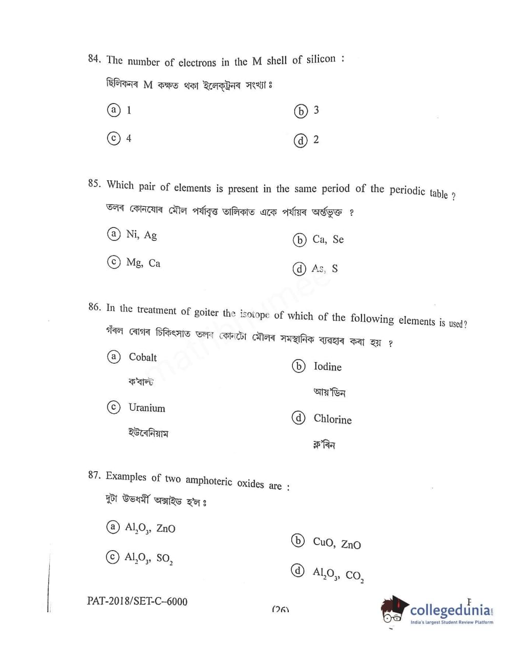 Assam PAT 2018 Question Paper with Answer Key PDFs