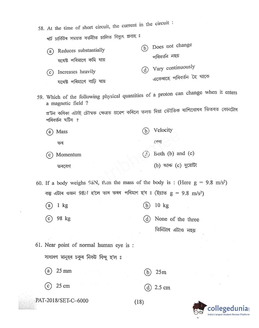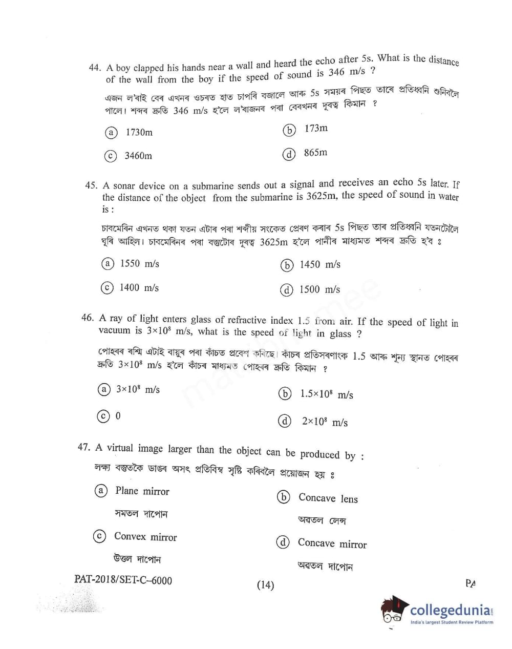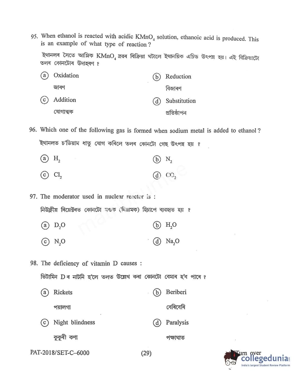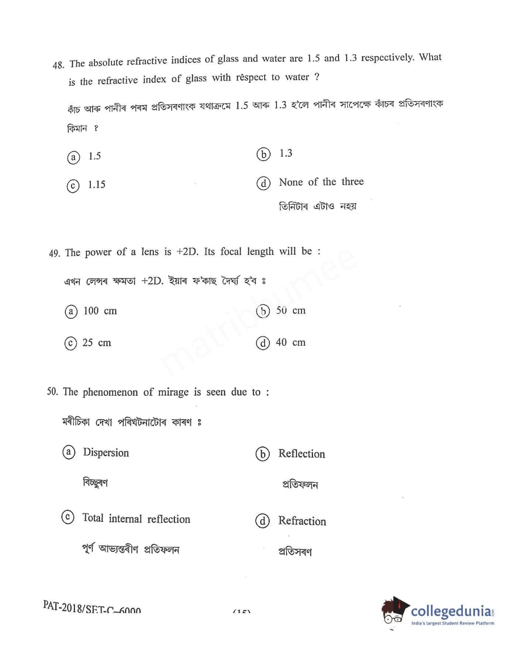 Assam PAT 2018 Question Paper with Answer Key PDFs