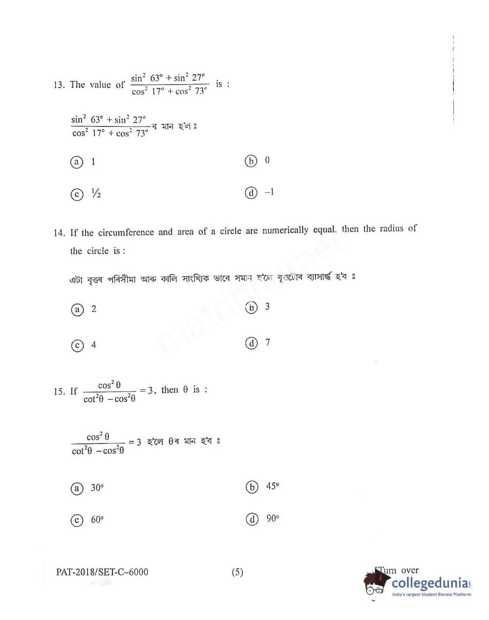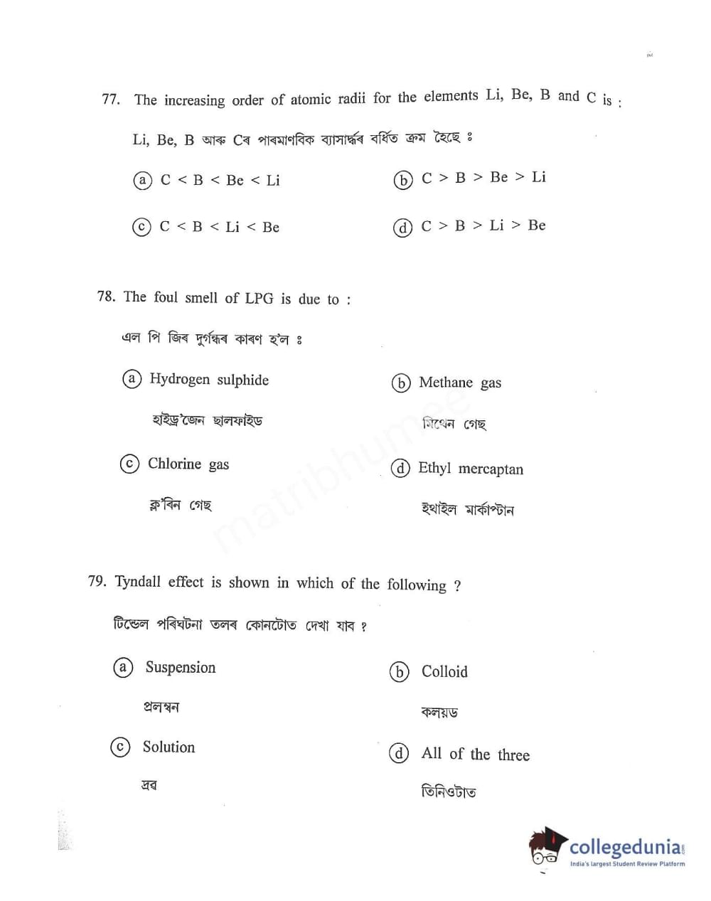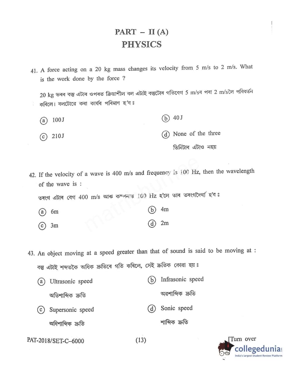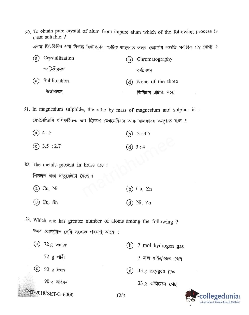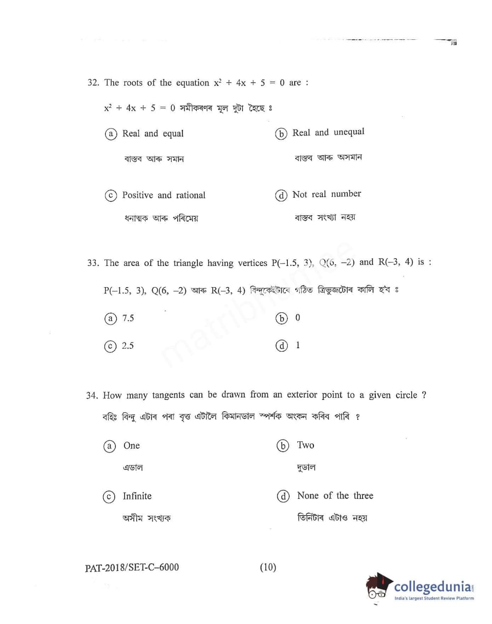 Assam PAT 2018 Question Paper with Answer Key PDFs