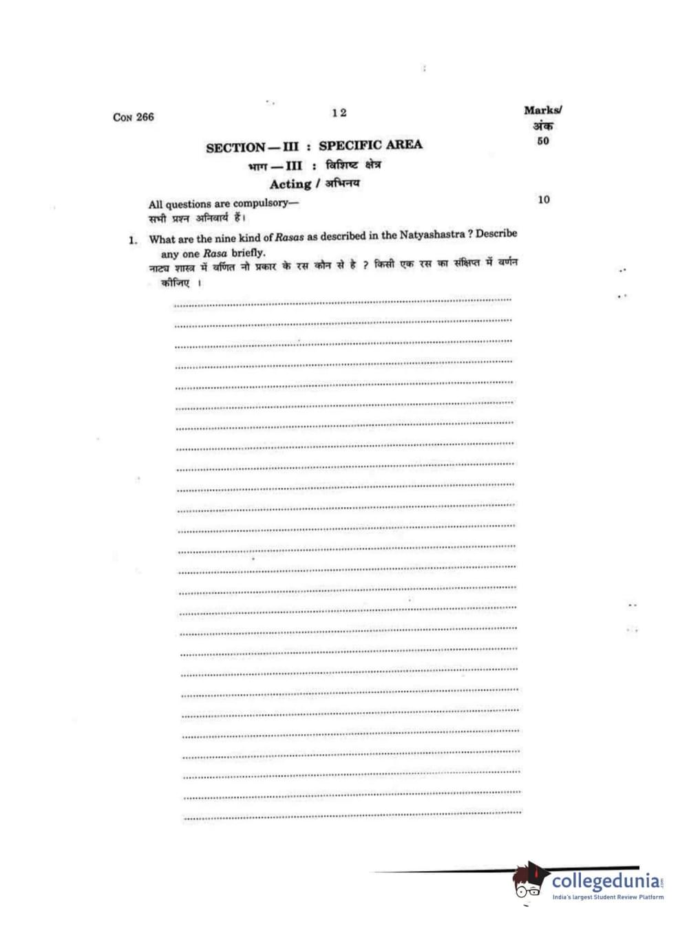 FTII Entrance Exam 2015 PG Diploma in Acting Question Paper with Answer Key PDFs