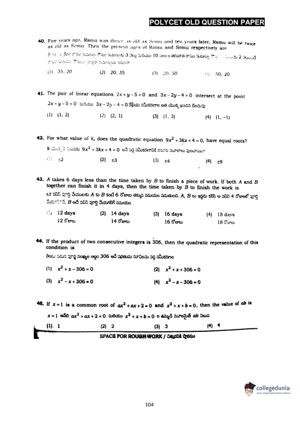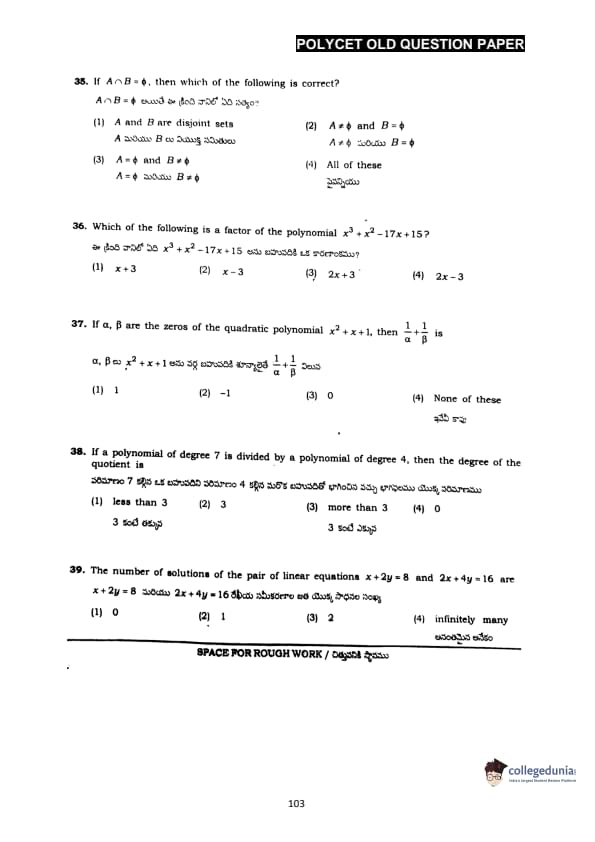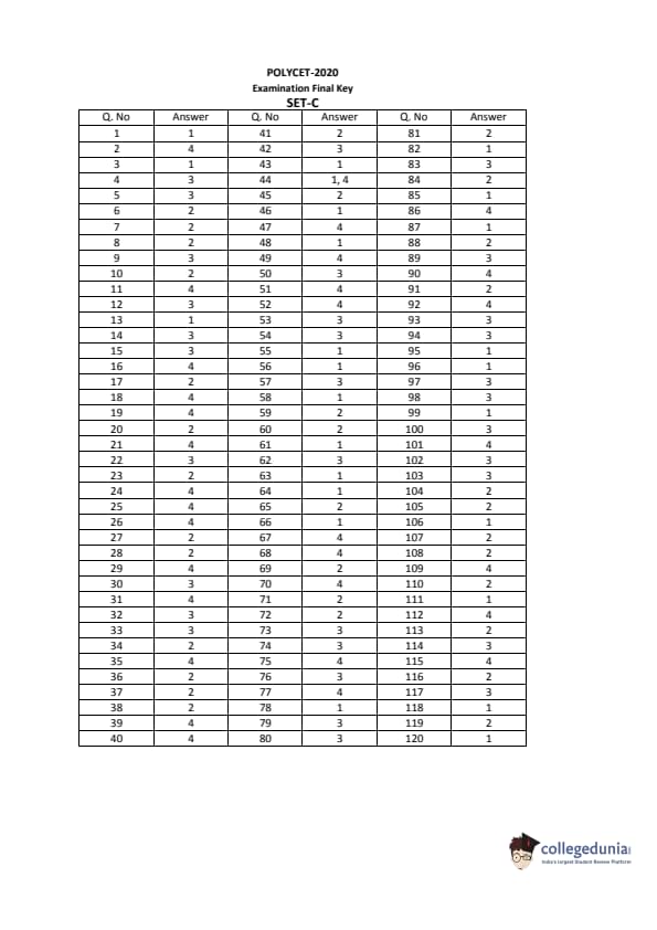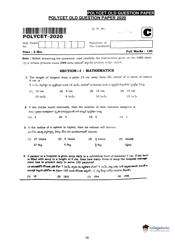 AP POLYCET 2020 Question paper with answer key pdf is available for download. The exam was successfully organized by State Board of Technical Education & Training (SBTET), Andhra Pradesh. The question paper comprised a total of 120 questions.