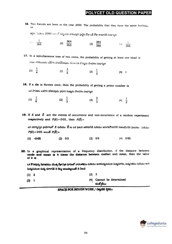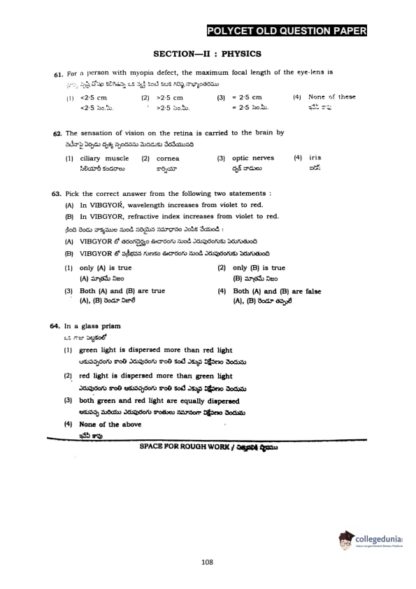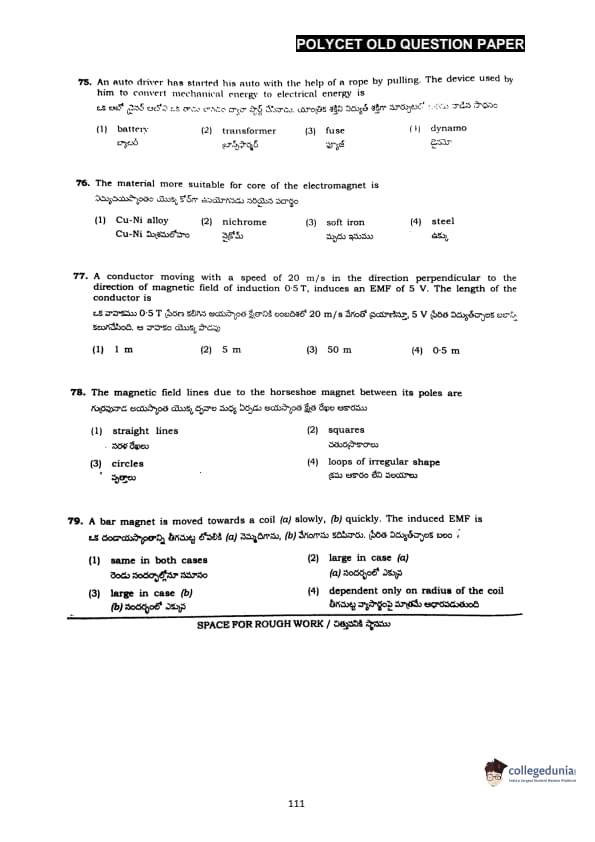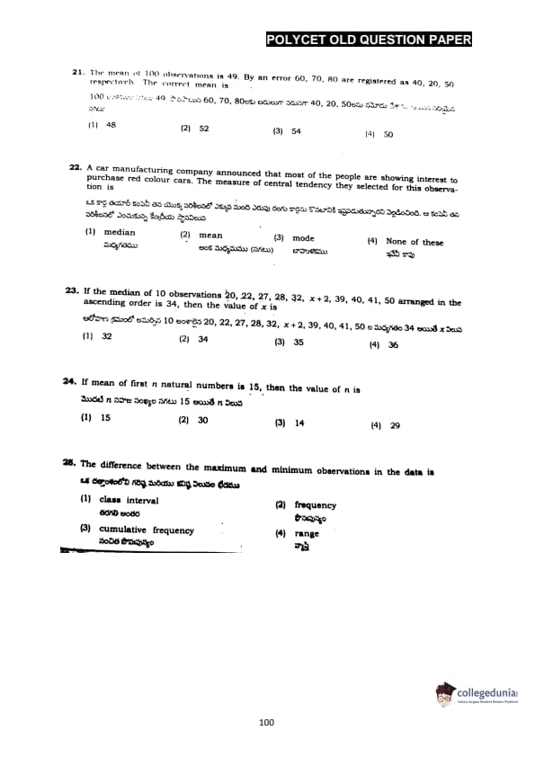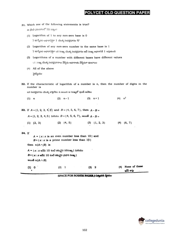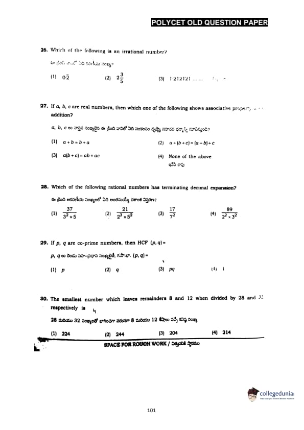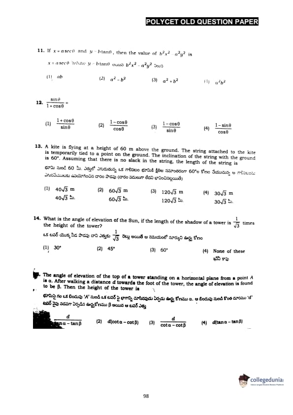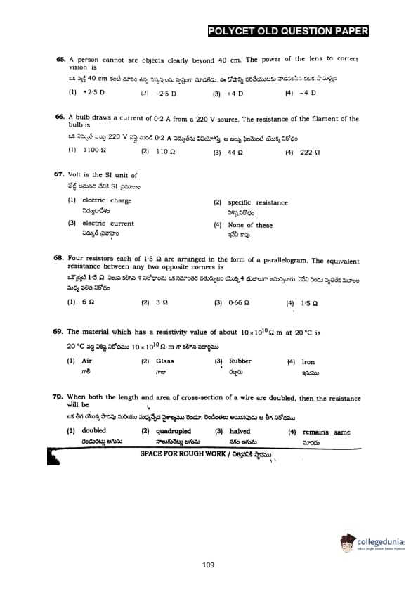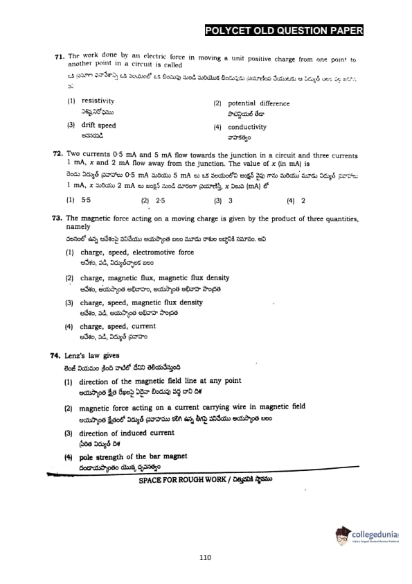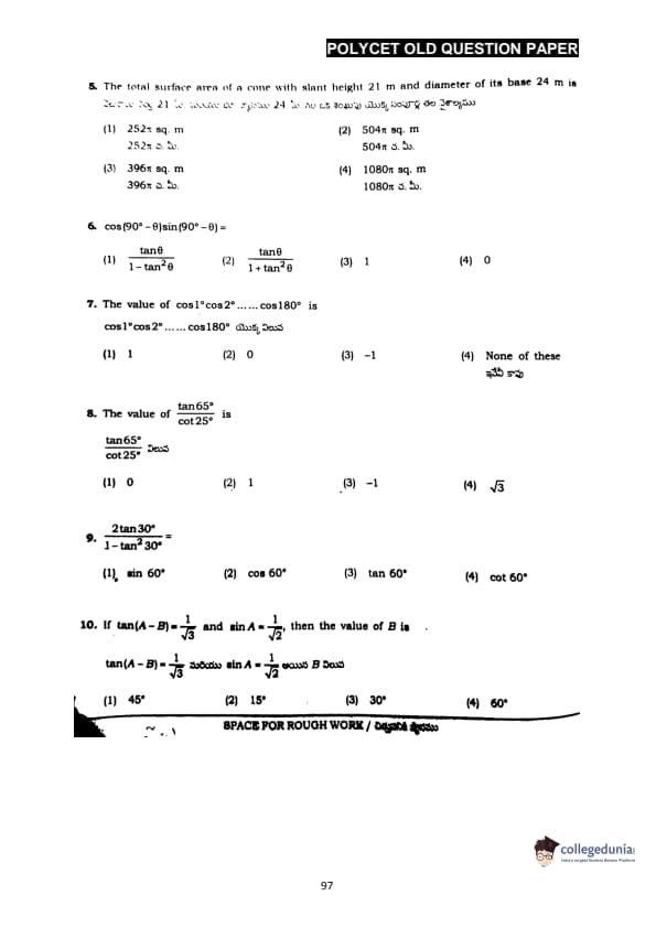 AP POLYCET 2020 Question Paper with Answer Key PDF