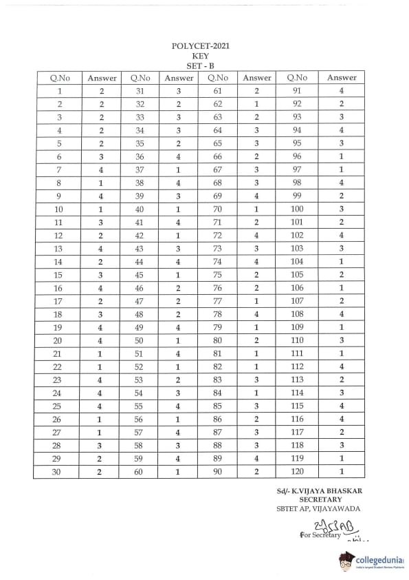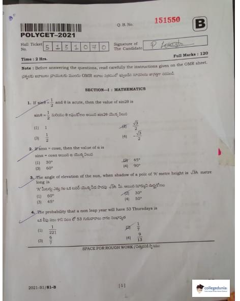 AP POLYCET 2021 Set B Question paper with answer key pdf conducted on September 1 is available for download. The exam was successfully organized by State Board of Technical Education & Training (SBTET), Andhra Pradesh. The question paper comprised a total of 120 questions.