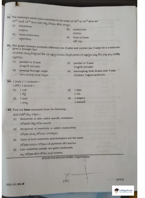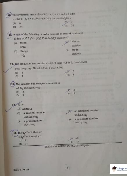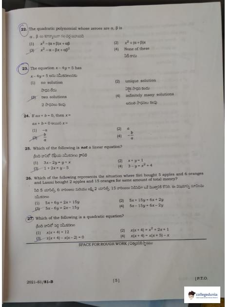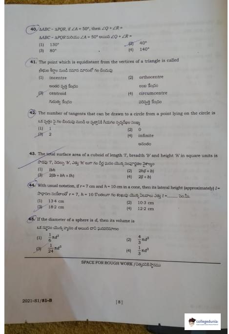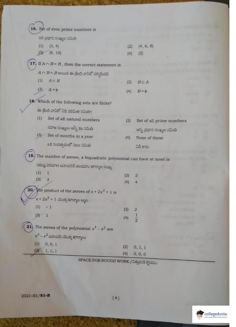 AP POLYCET 2021 Set B Question Paper with Answer Key PDFs