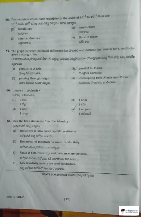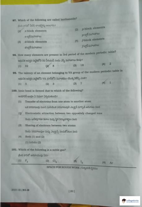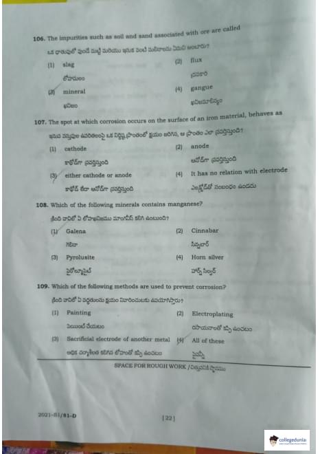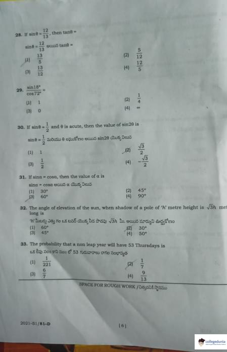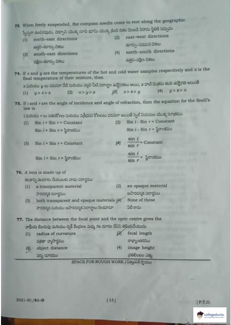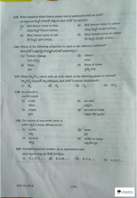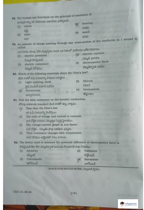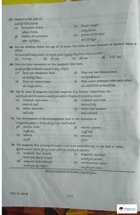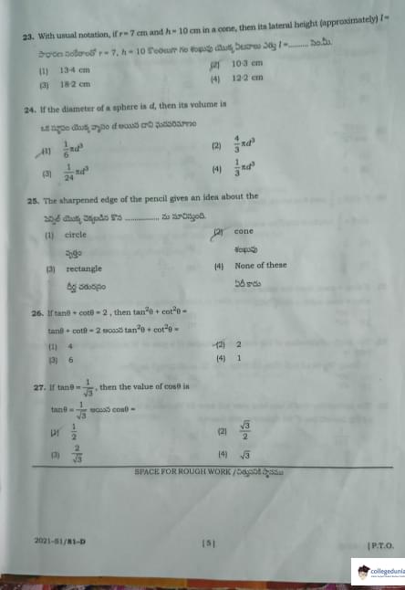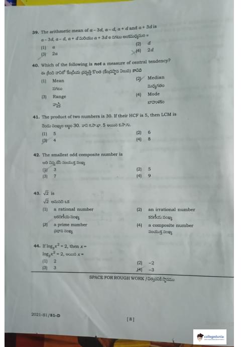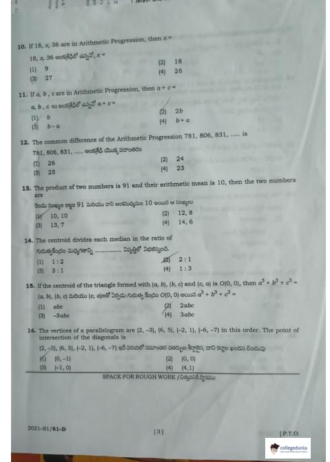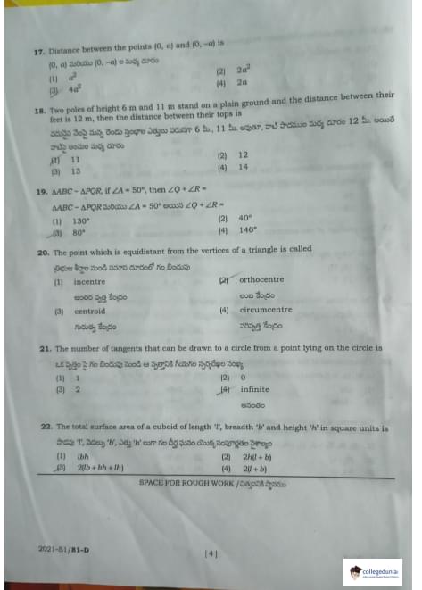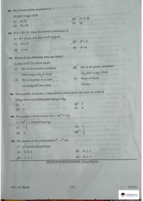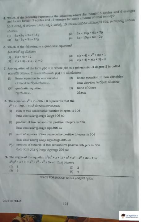 AP POLYCET 2021 Set D Question Paper with Answer Key PDFs