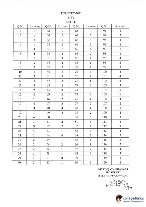| AP POLYCET 2021 Set D Question Paper PDF | AP POLYCET 2021 Set D Answer Key PDF |