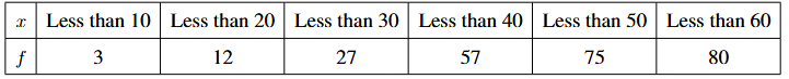 For the given data with 50 observations, 'the less than ogive' and 'the more than ogive' intersect at the point (15:5, 20). The median of the data is