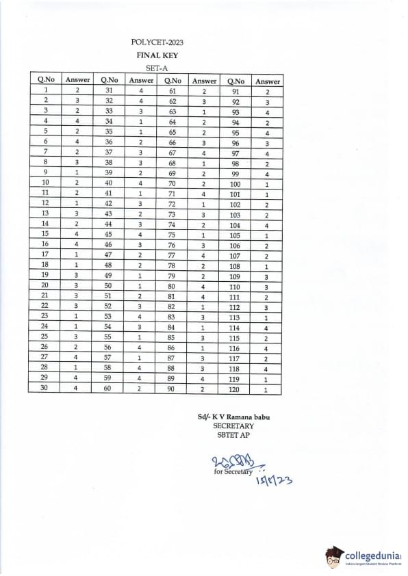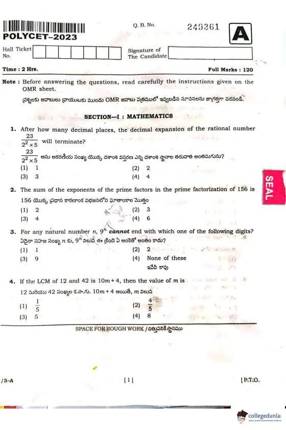 AP POLYCET 2023 Question Paper with Answer Key PDF Set A