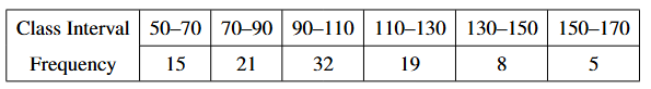 The upper limit of the median class of the following frequency distribution is