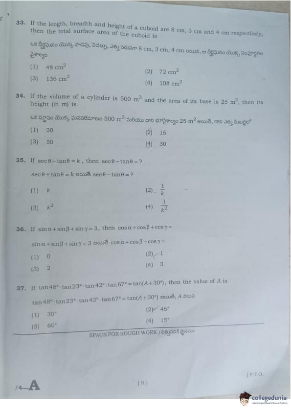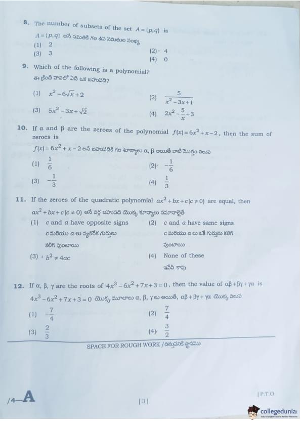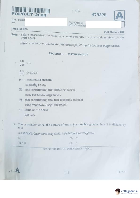 AP POLYCET 2024 Question Paper with Answer Key PDF (Set A)