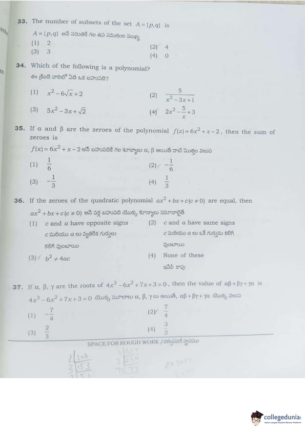 | AP POLYCET 2024 Question Paper with Answer Key | Check Solution |