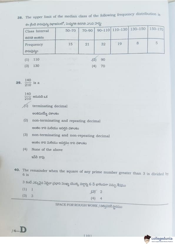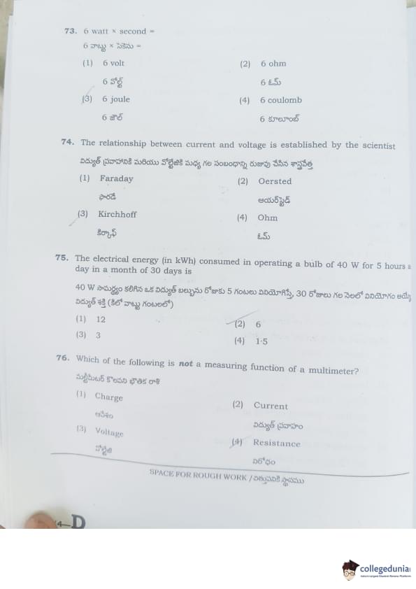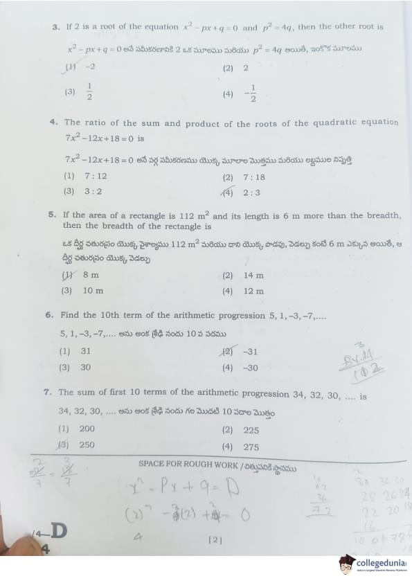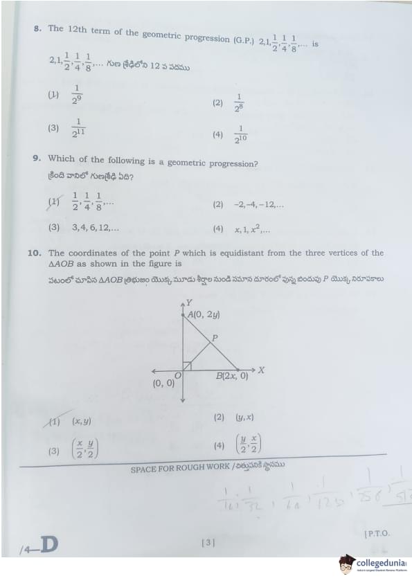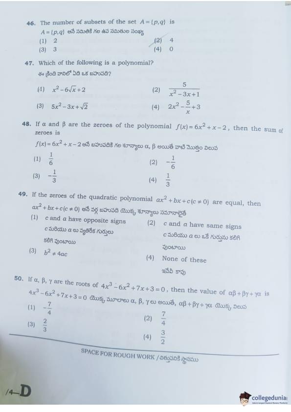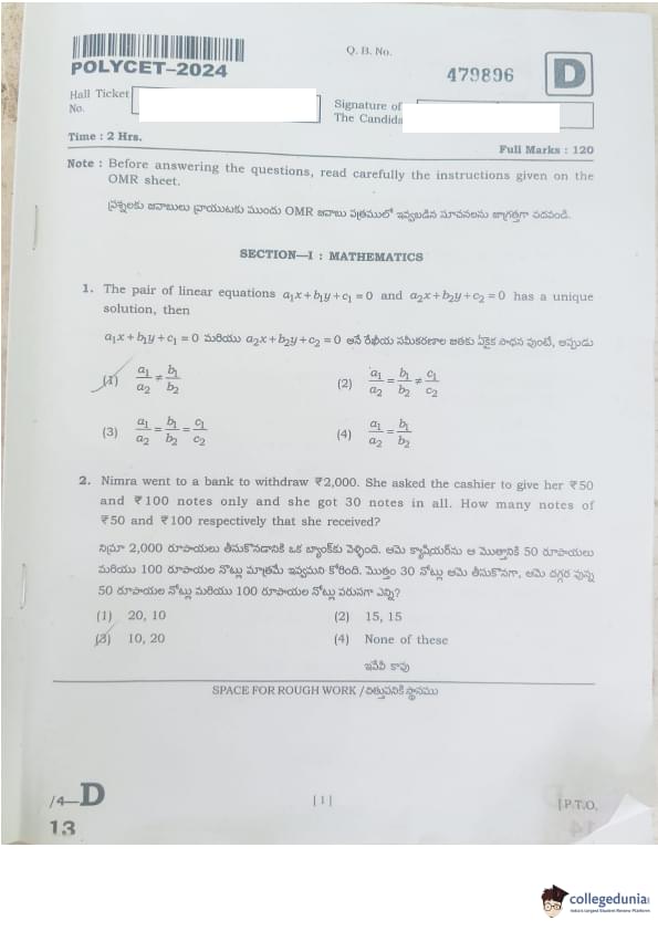 AP POLYCET 2024 Question Paper with Answer Key PDF (Set D)