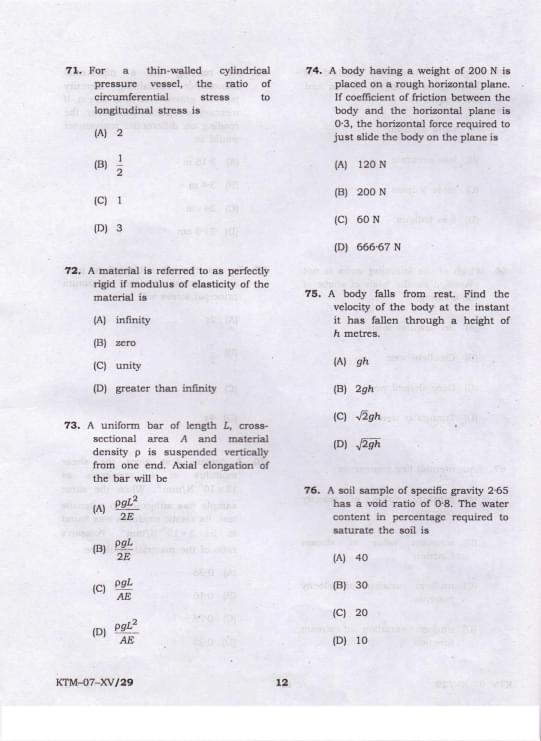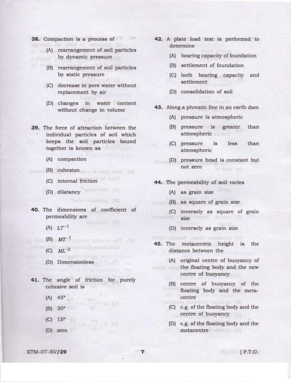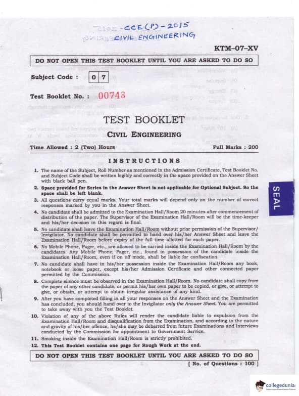 MZUEEE 2015 Civil Engineering Question paper with answer key pdf is available for download. The exam was successfully organized by Mizoram University. The question paper comprised a total of 100 questions.