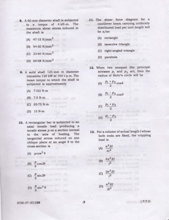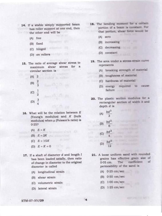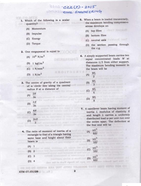 MZUEEE 2015 Civil Engineering Question Paper with Answer Key PDFs
