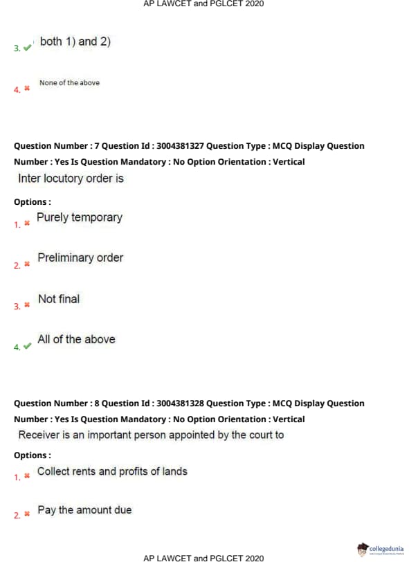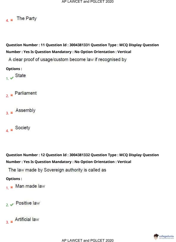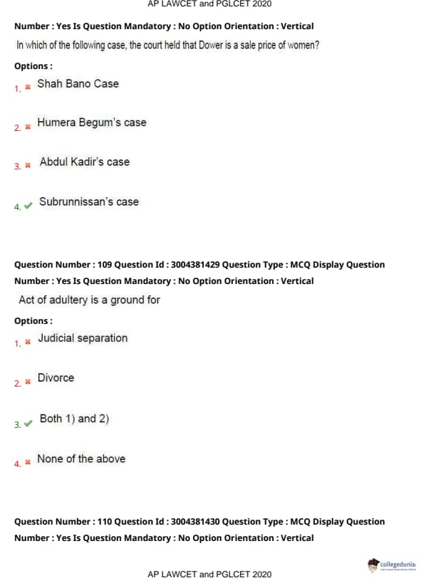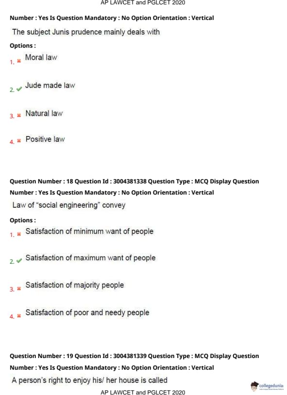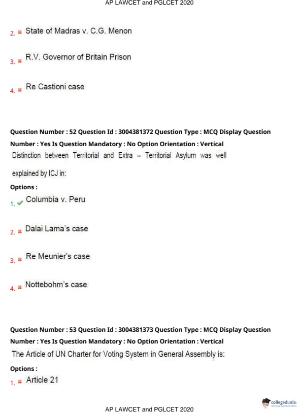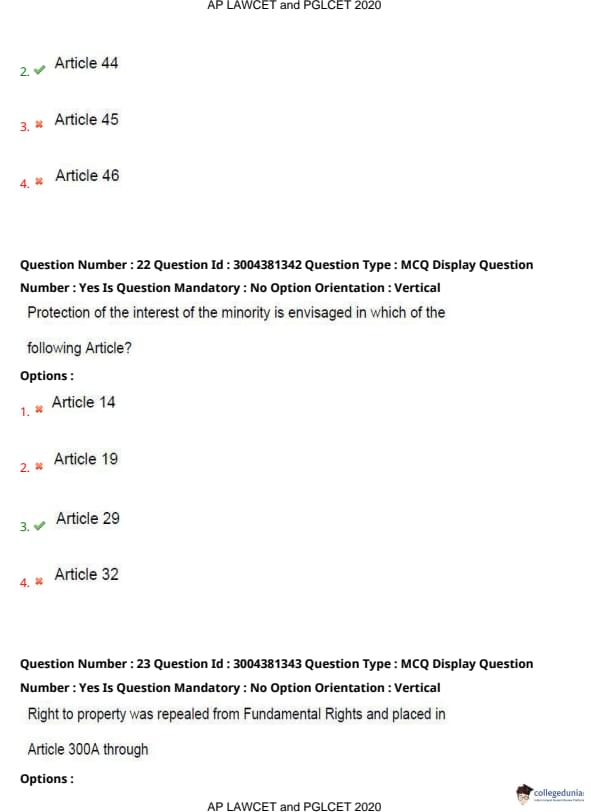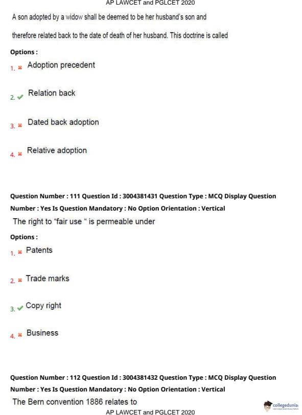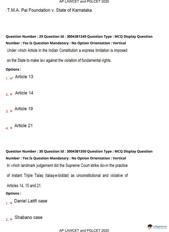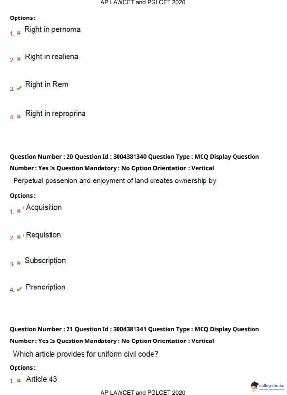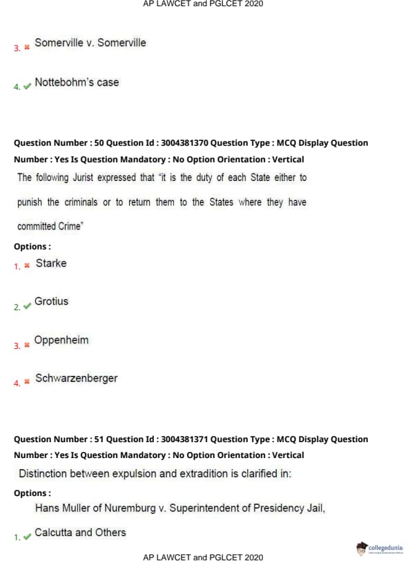 AP PGLCET 2020 LLM PG 2 Years Question Paper with Answer Key PDFs Shift 2